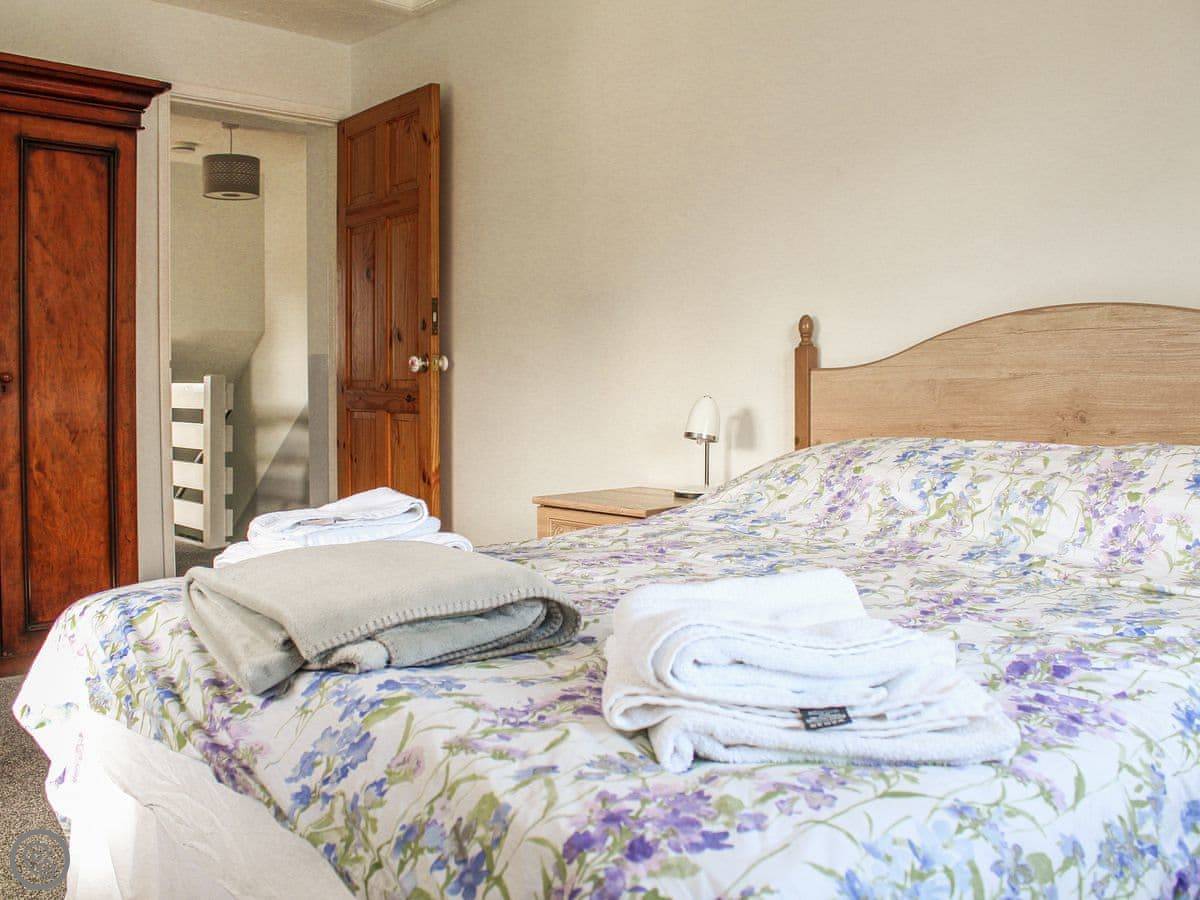 Sleeping 10 people in 5 bedrooms on the first floor including two kingsize with one having an additional single bed and 2 standard doubles, plus a single room. There’s a bright and modern family bathroom too. On the ground floor you’ll find two living rooms divided by French doors, both with Smart TVs and one with a cosy wood burner. There’s a separate dining room with Patio doors leading out to the garden and a fitted kitchen. There’s also a handy downstairs shower room with WC. Parking is on the road just outside and there’s a free village car park just around the corner.