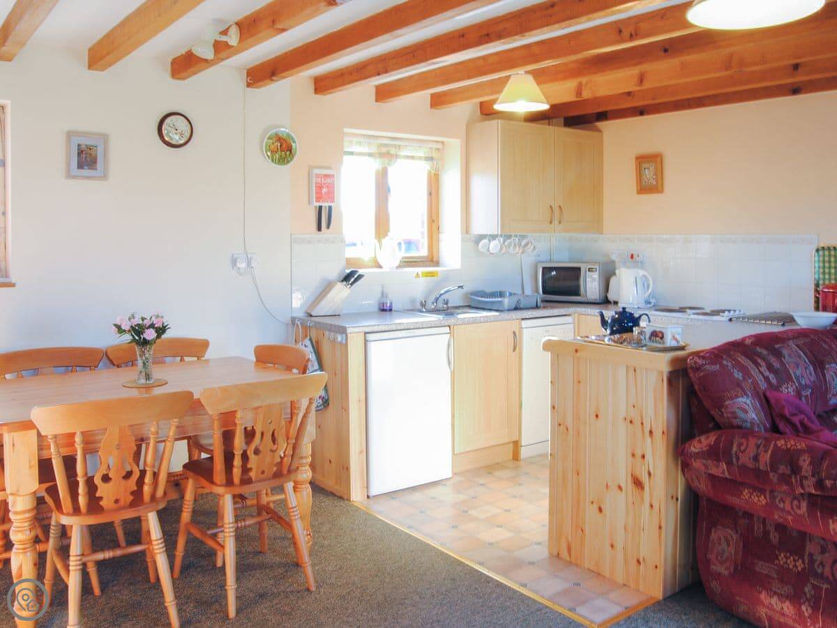 In the cottage, there's a washing machine, a dishwasher, WiFi, and TV. Bedding is included. We can provide a cot and highchair if you need them. There's parking right outside. You can bring two dogs.