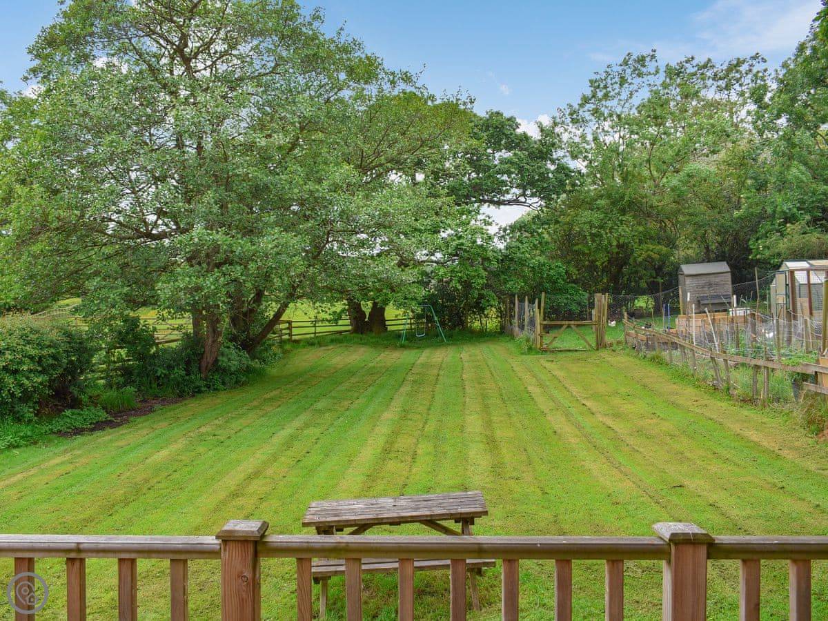 You're on a working farm. There are chickens about, so you'll see them in the garden sometimes. The decking area has a table and chairs and there's a lawn. There's a BBQ you can use.