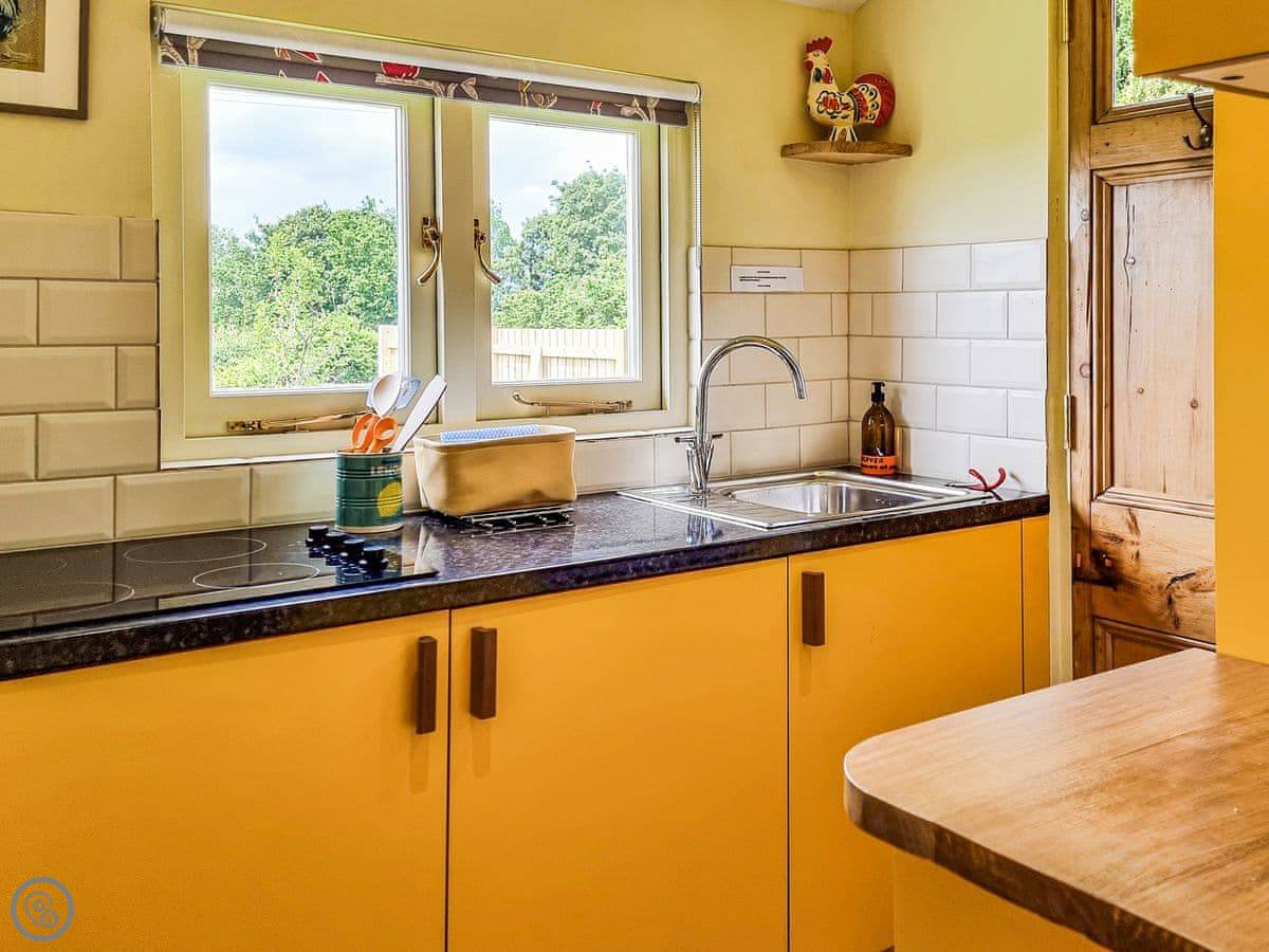 Welcome to Walnut Lodge, a wonderful hand-crafted lodge finished in 2022, full of character and modern features with exceptional views over Glastonbury Tor. Step through the gate where Walnut Lodge is waiting for you tucked away behind the trees, enter into the fabulous kitchen which is very well equipped with an electric hob and oven, microwave and fridge with icebox compartment, the kitchen is open plan to the rest of the lodge and leads through in to the seating area with comfortable chairs that are perfectly placed to enjoy the view over the garden and beyond from the French doors.
