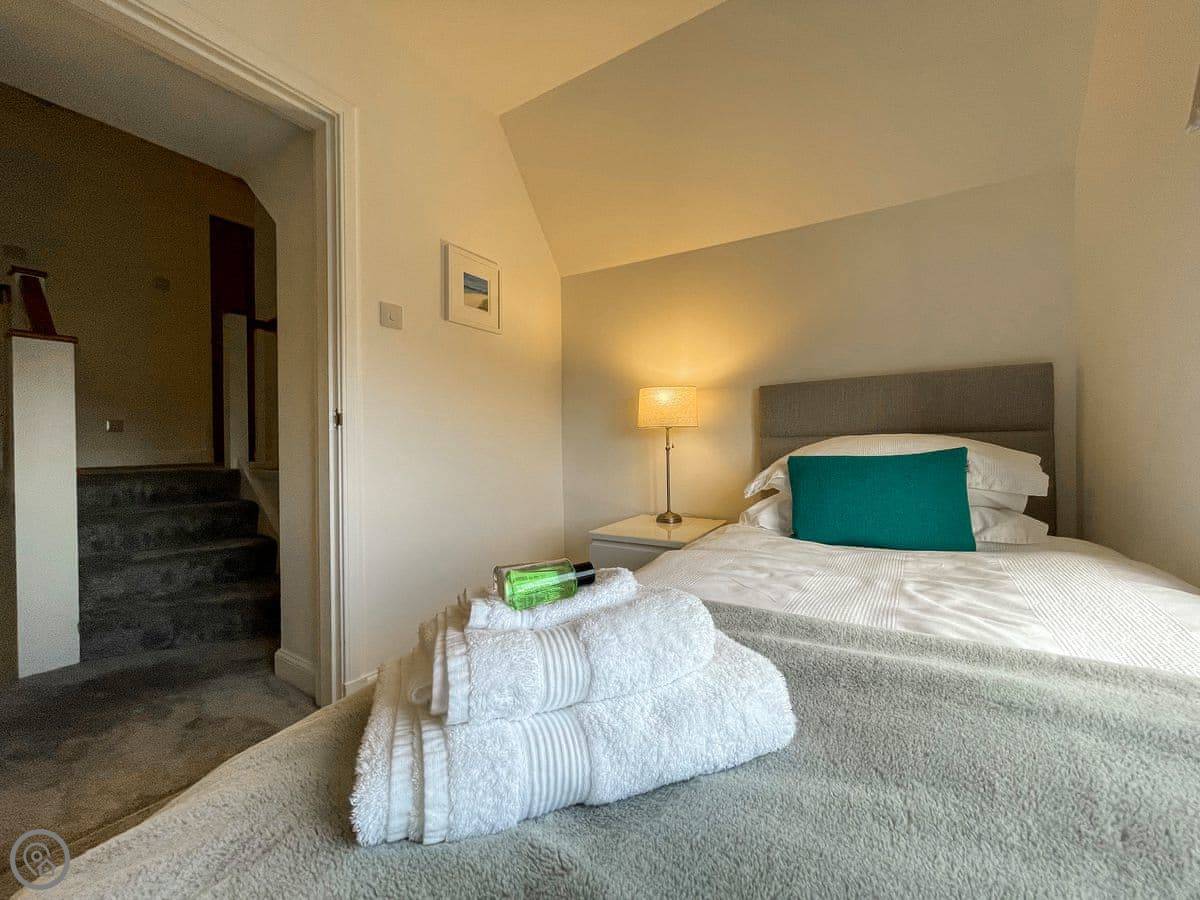One thing to note: there's a single bedroom on the staircase landing between floors. It's fine, it's a proper room, but it's on the stairs. The other two doubles are upstairs with a shower room.