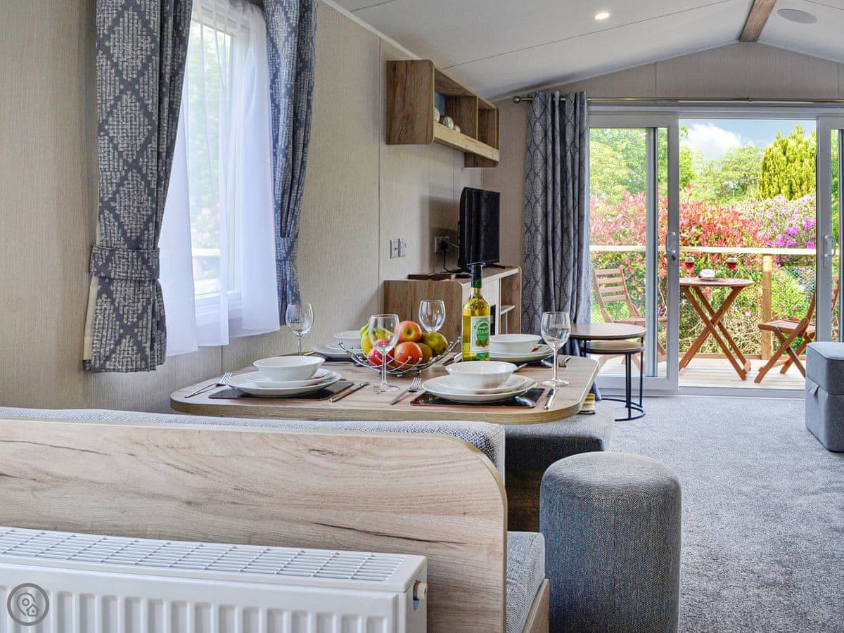 The spot could not be more perfect to enjoy the peace and tranquillity of this delightful site and the Crow’s Next will certainly not disappoint. The open plan living/dining/kitchen with its patio doors opening onto the balcony is tastefully decorated and the theme continues in the three bedrooms which are comfortable, one boasts an en-suite toilet and washbasin.
