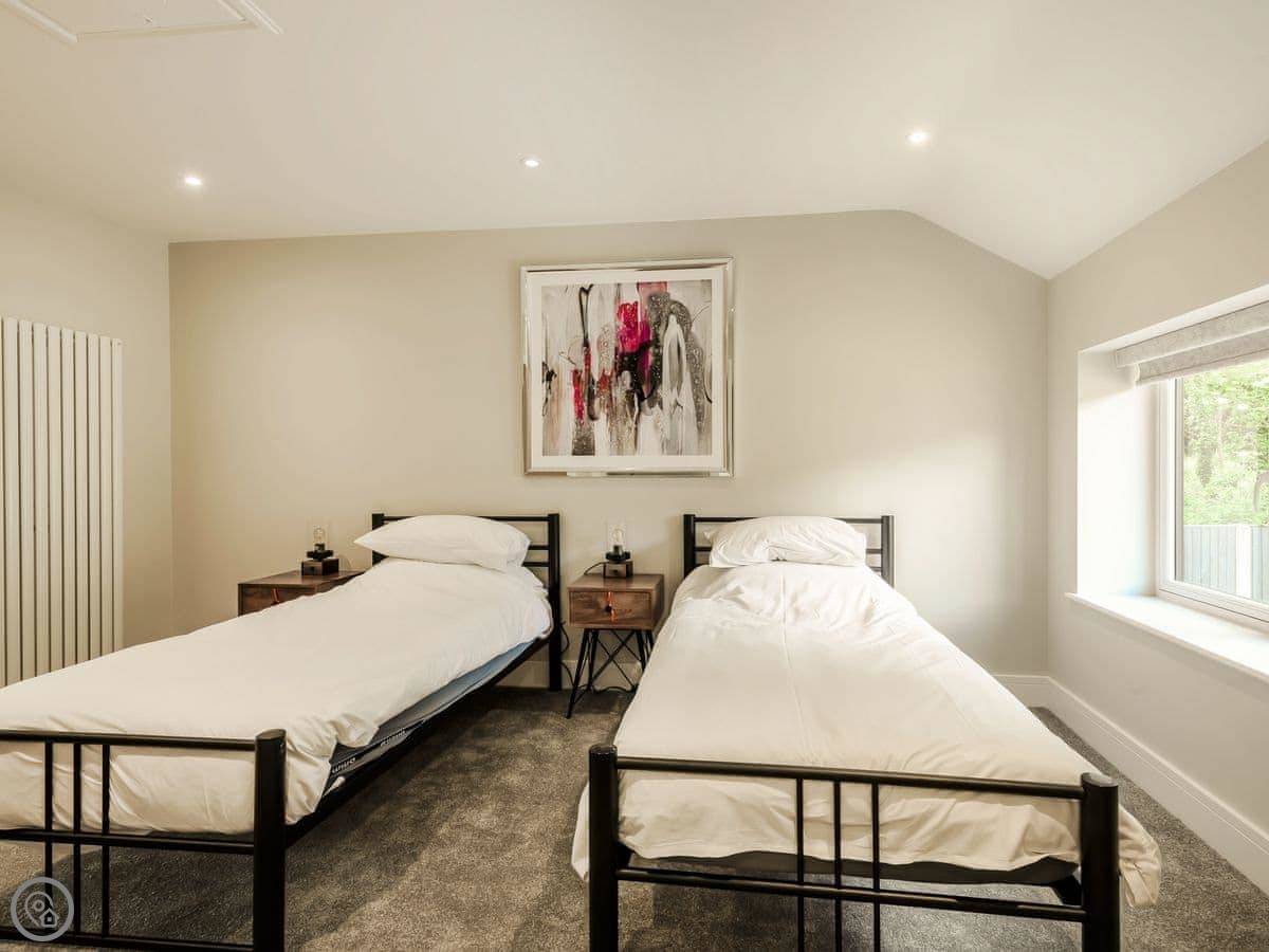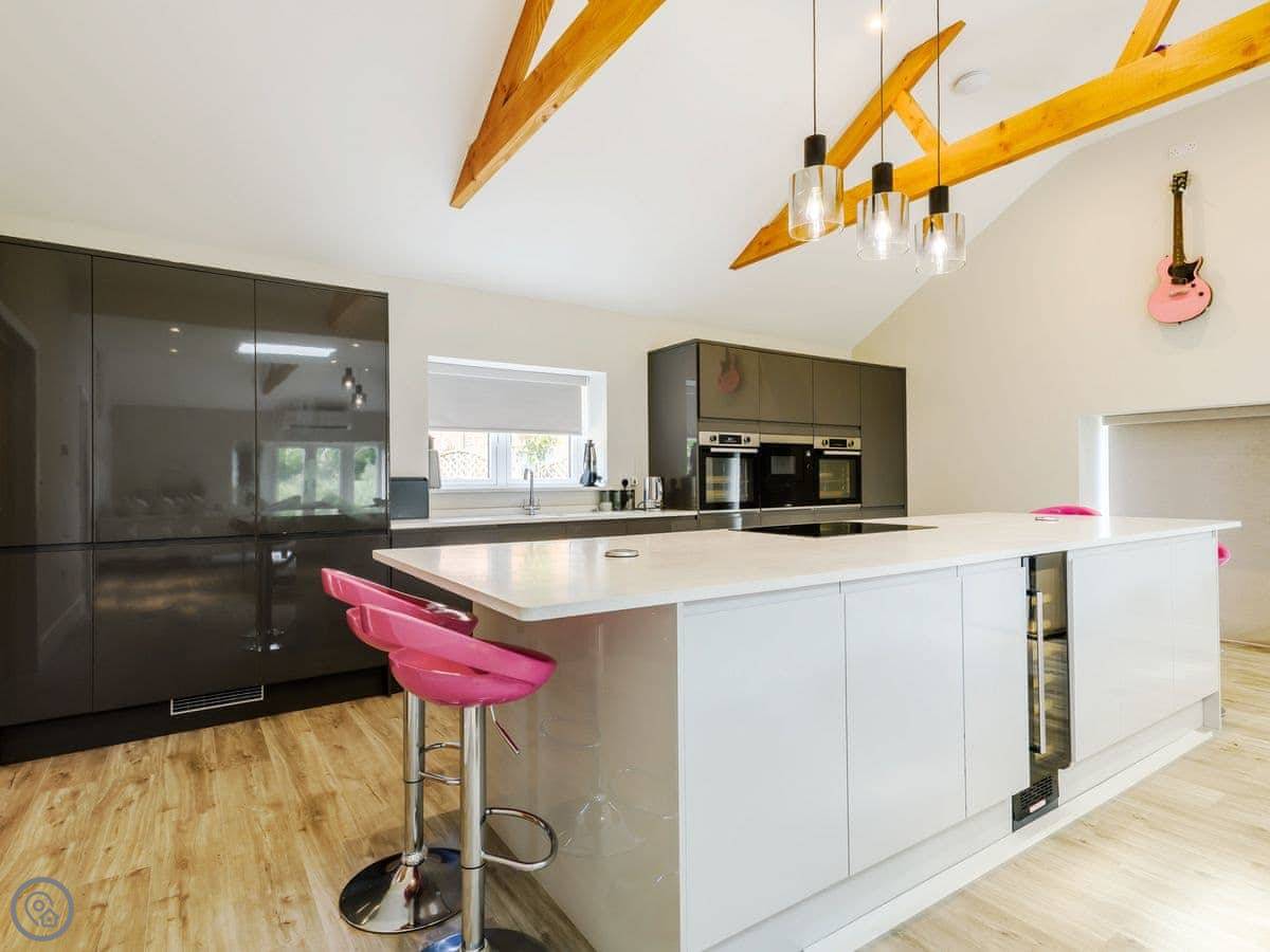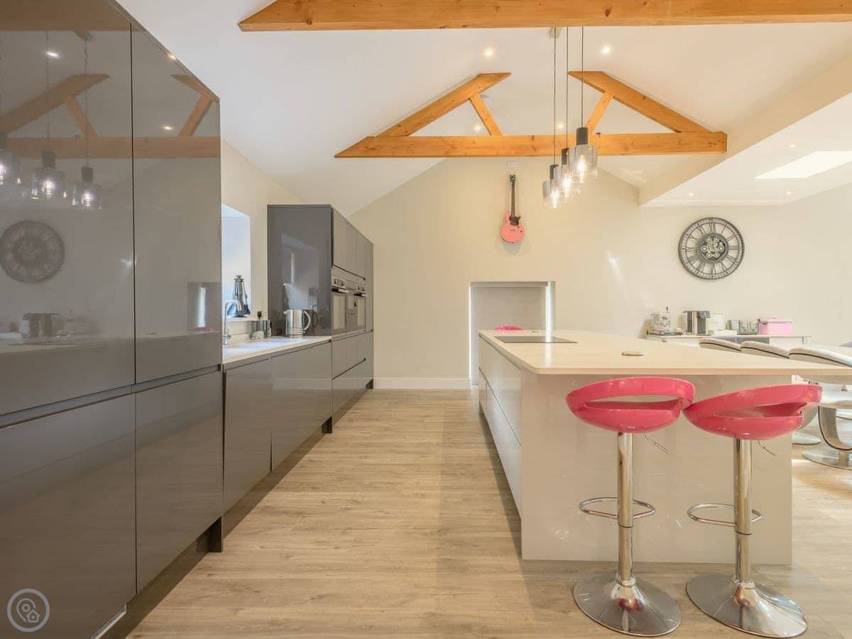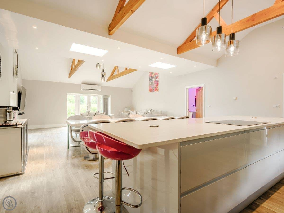 The main thing is the space. It's open plan downstairs, good for a big group. There's a games room as well. Outside, there's an enclosed garden and a patio area with a hot tub.
