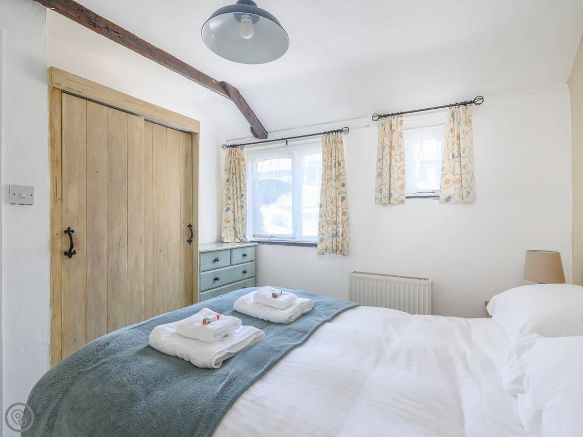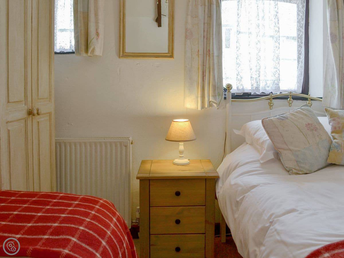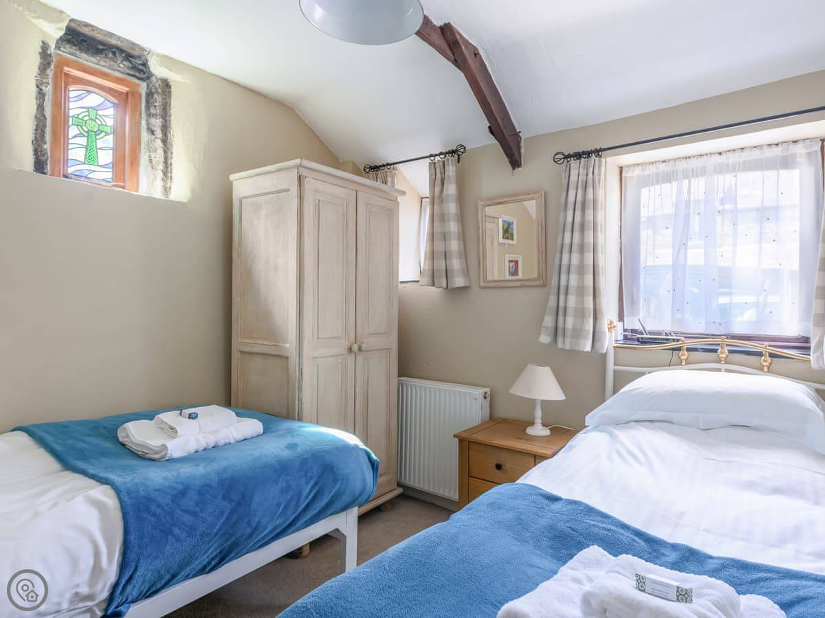 It sleeps four. Two bedrooms, one bathroom. It's got a 4 Star rating. There are slate floors and exposed beams. It's not huge, but it's comfortable and clean.