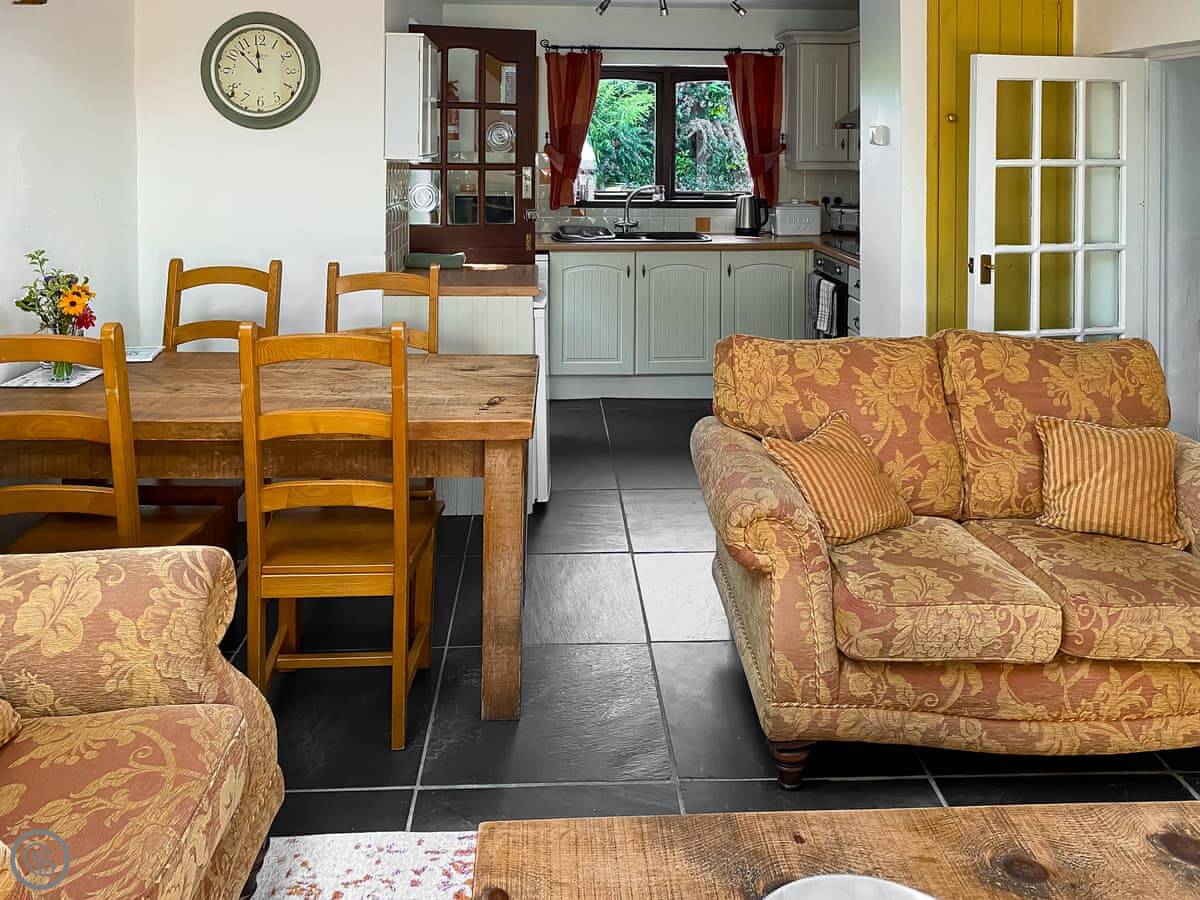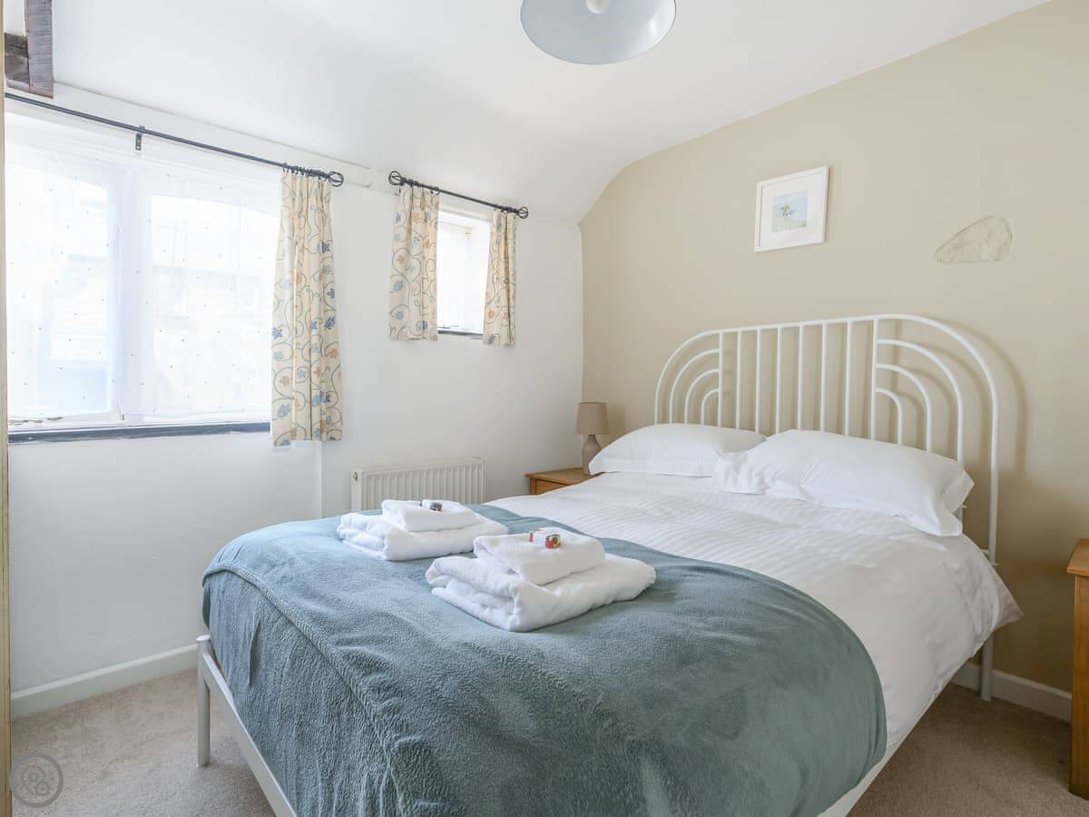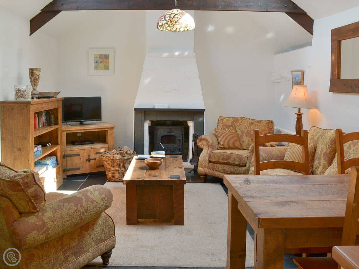 It sleeps four. Two bedrooms, one bathroom. It's got a 4 Star rating. There are slate floors and exposed beams. It's not huge, but it's comfortable and clean.