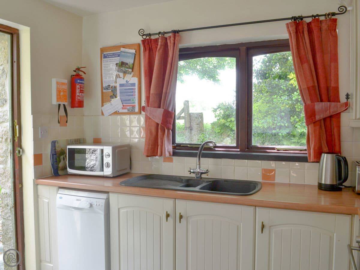 Cross Cottage is one of three barns we've converted here, along with our house. They're all about two hundred years old, made of granite, and set around a courtyard at the end of a private lane. The place is detached and you get a view over the fields.
