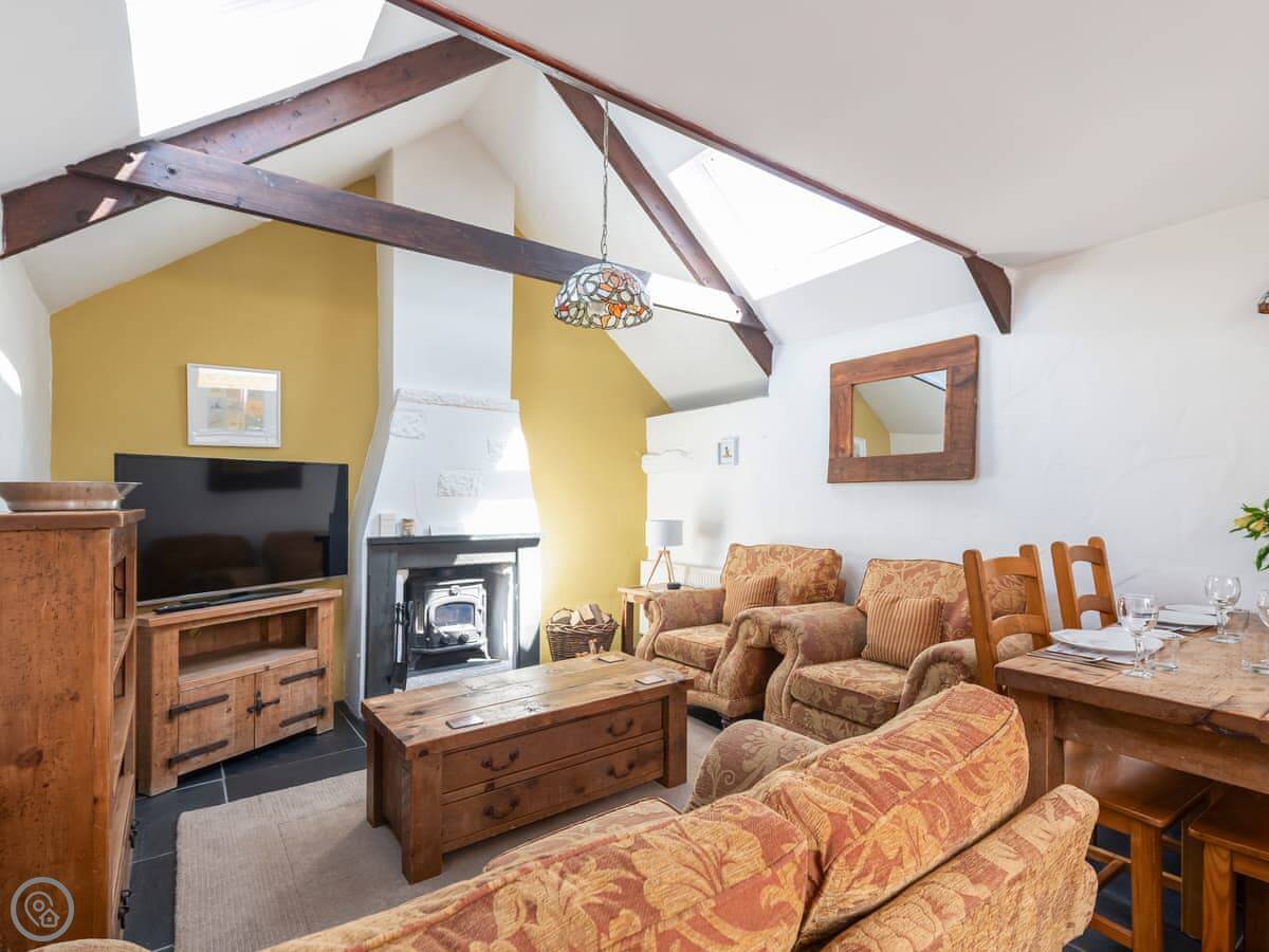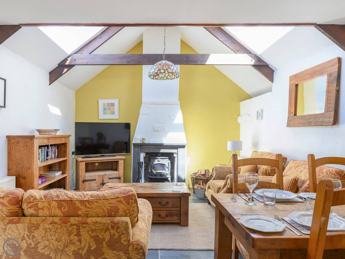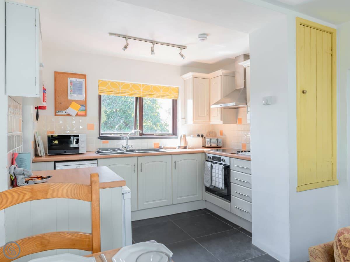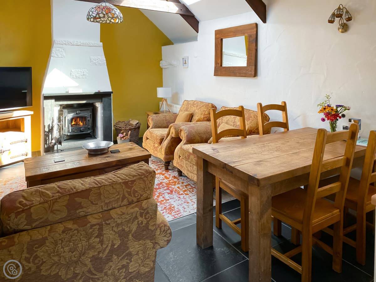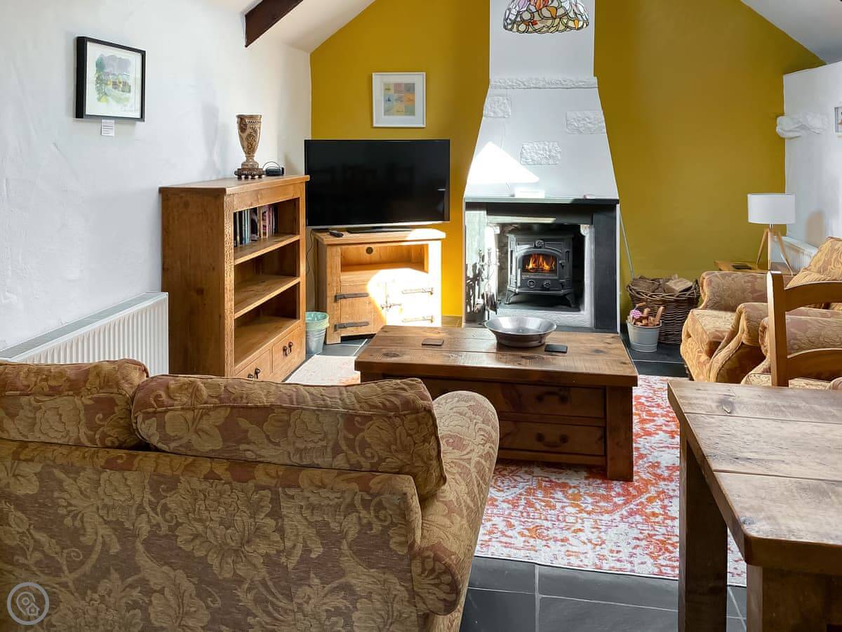 Facilities: there's a woodburning stove, a dishwasher, a washing machine, wifi, and a TV. Bedding and towels are included. We've got a cot and a highchair if you need them. Parking is on site, and there's an electric vehicle charger. We allow dogs, up to three.