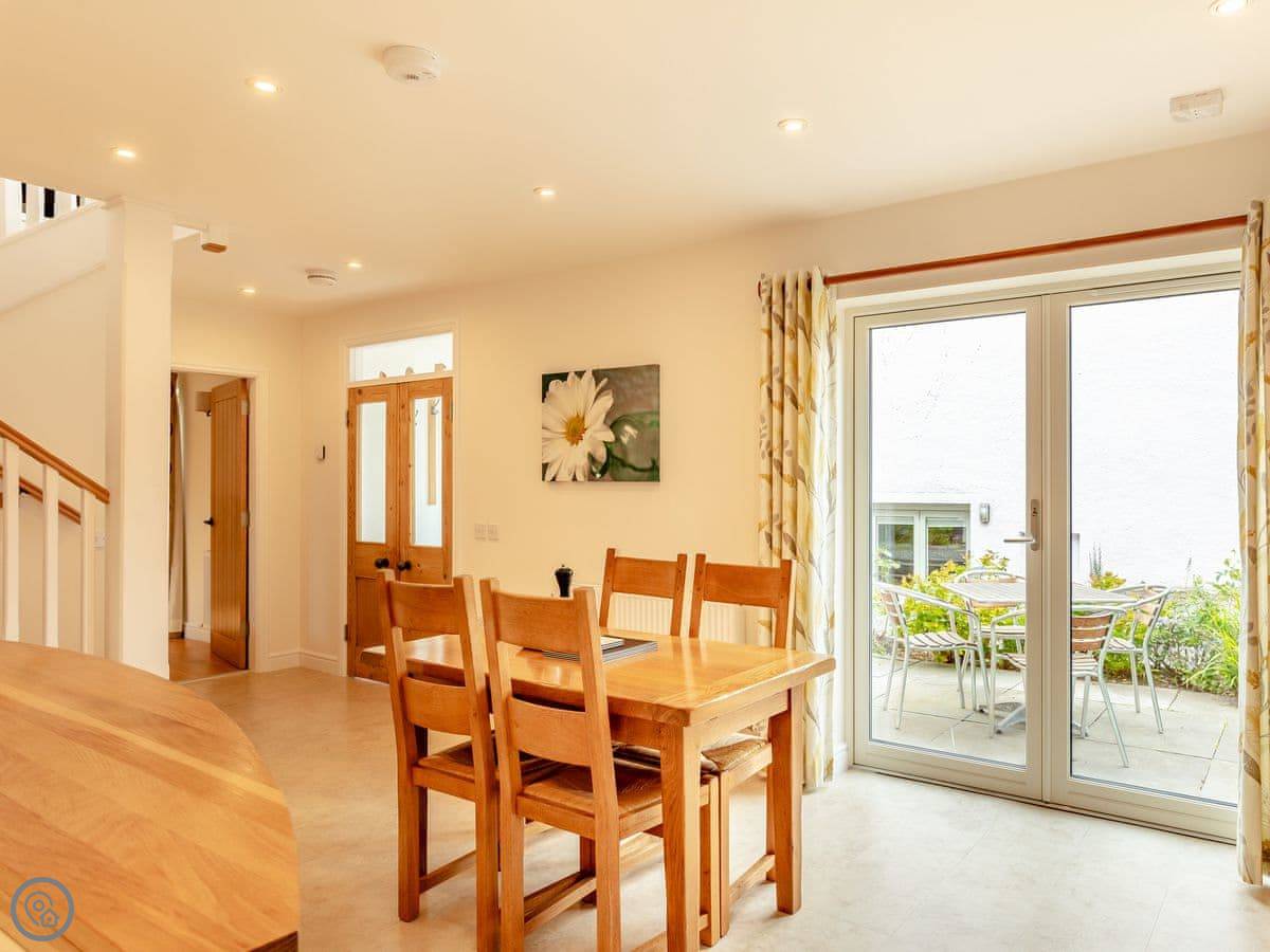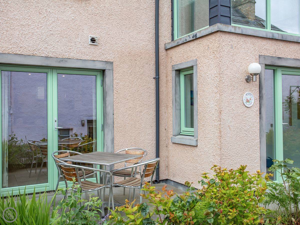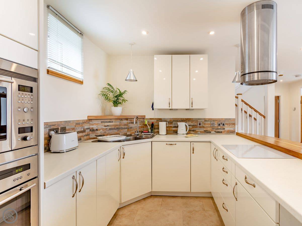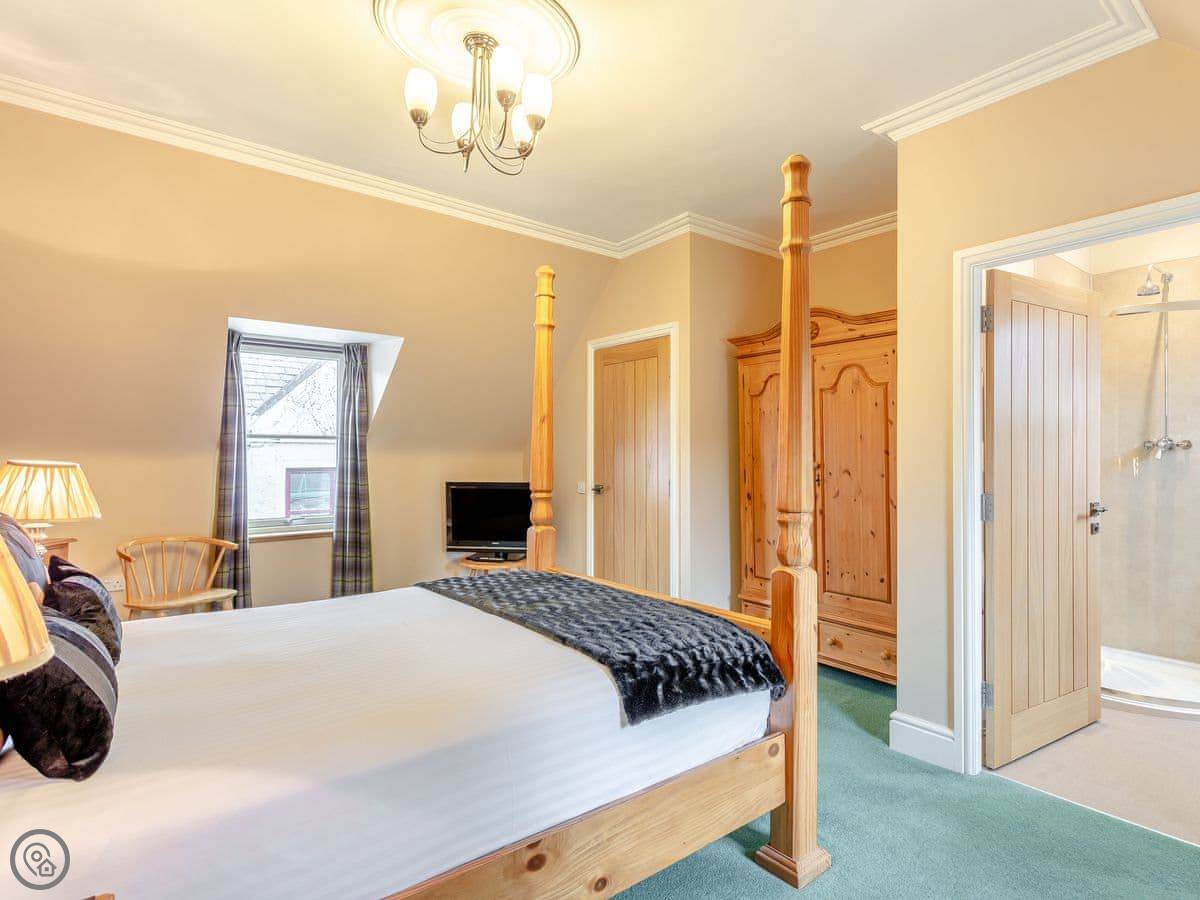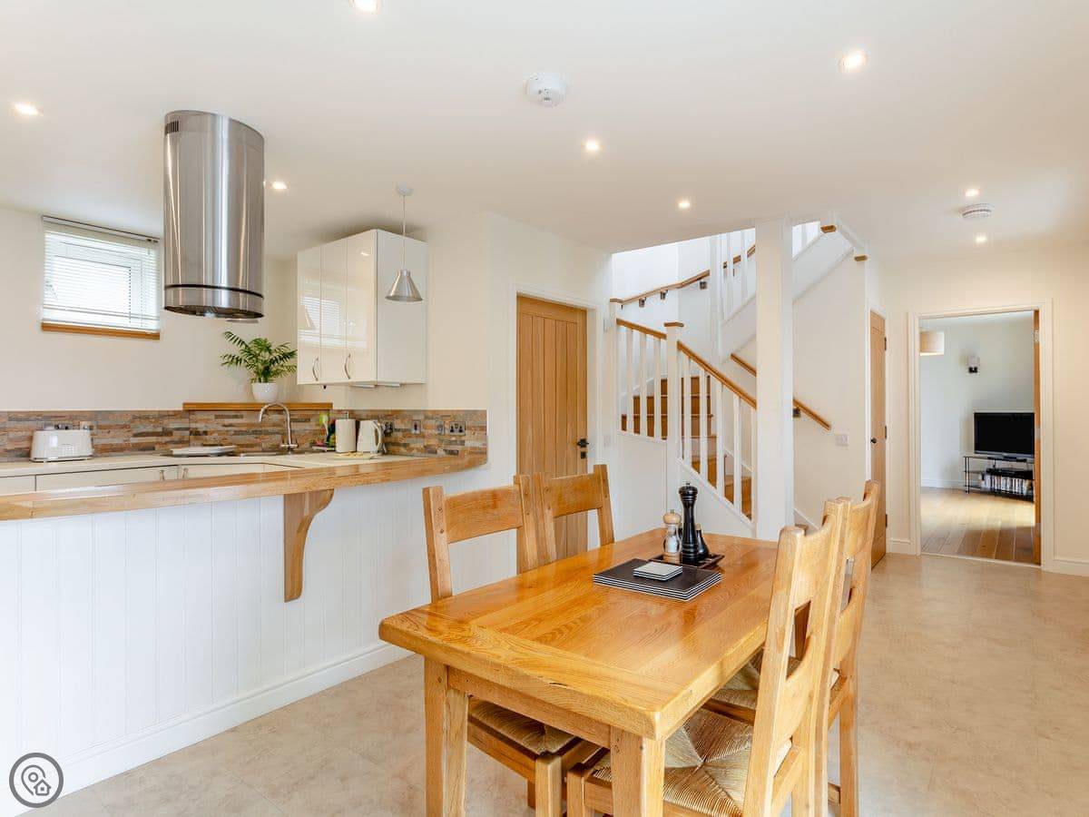 It sleeps four. Two bedrooms, both with their own shower rooms. There's also a bathroom downstairs with a bath. It's got a 5 Star rating, which means it's well-finished and has everything you'd need. The stairs are a standard flight.