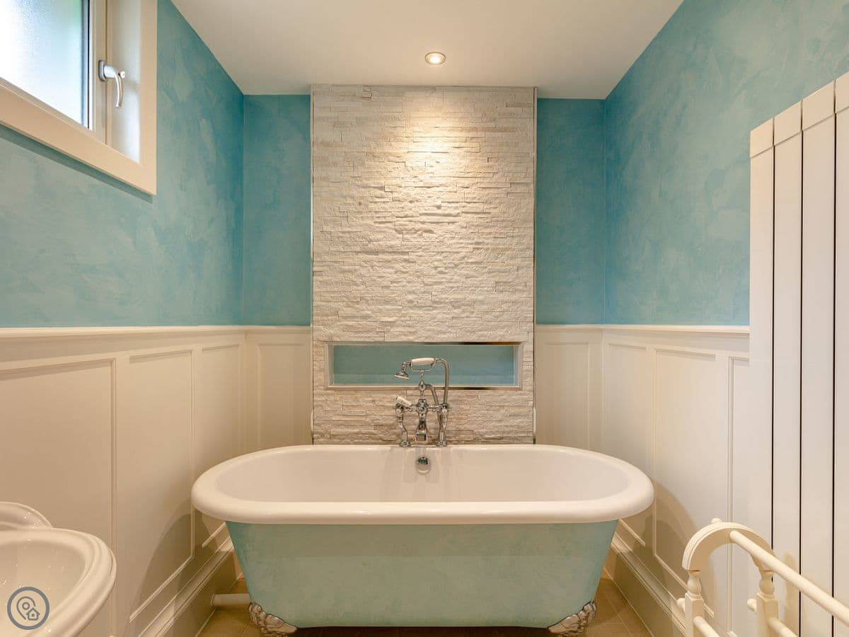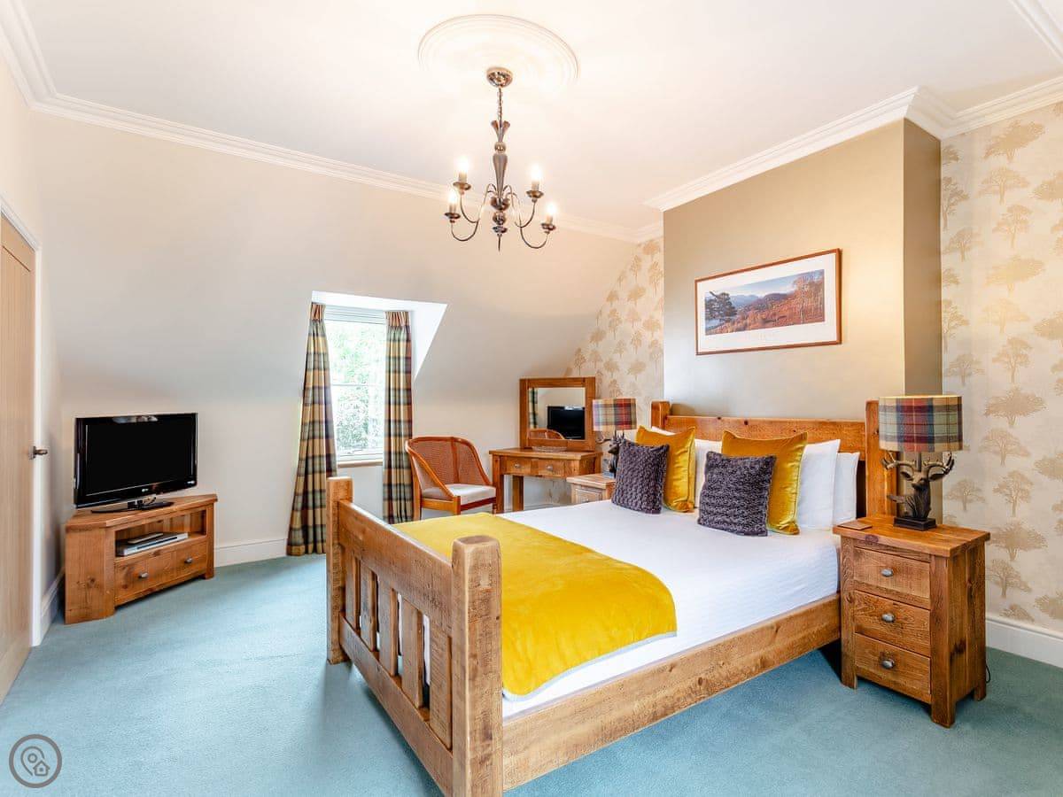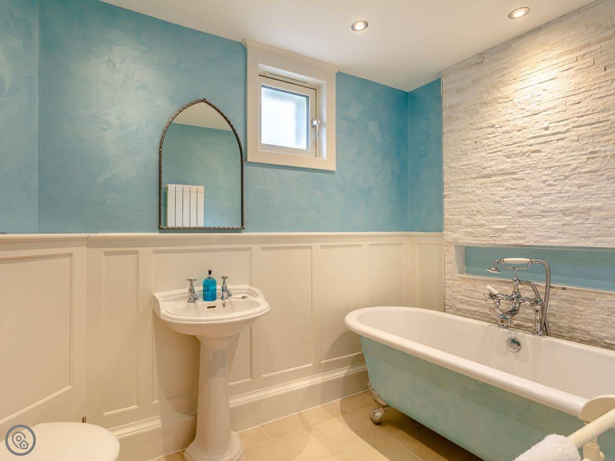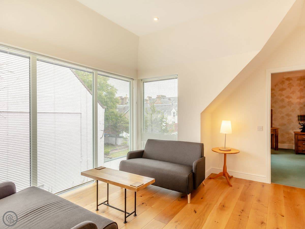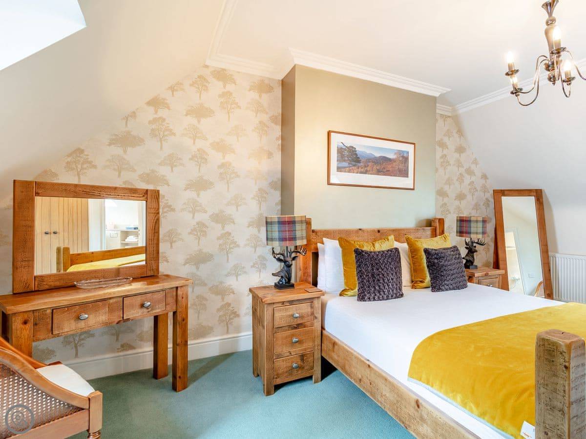 It sleeps four. Two bedrooms, both with their own shower rooms. There's also a bathroom downstairs with a bath. It's got a 5 Star rating, which means it's well-finished and has everything you'd need. The stairs are a standard flight.