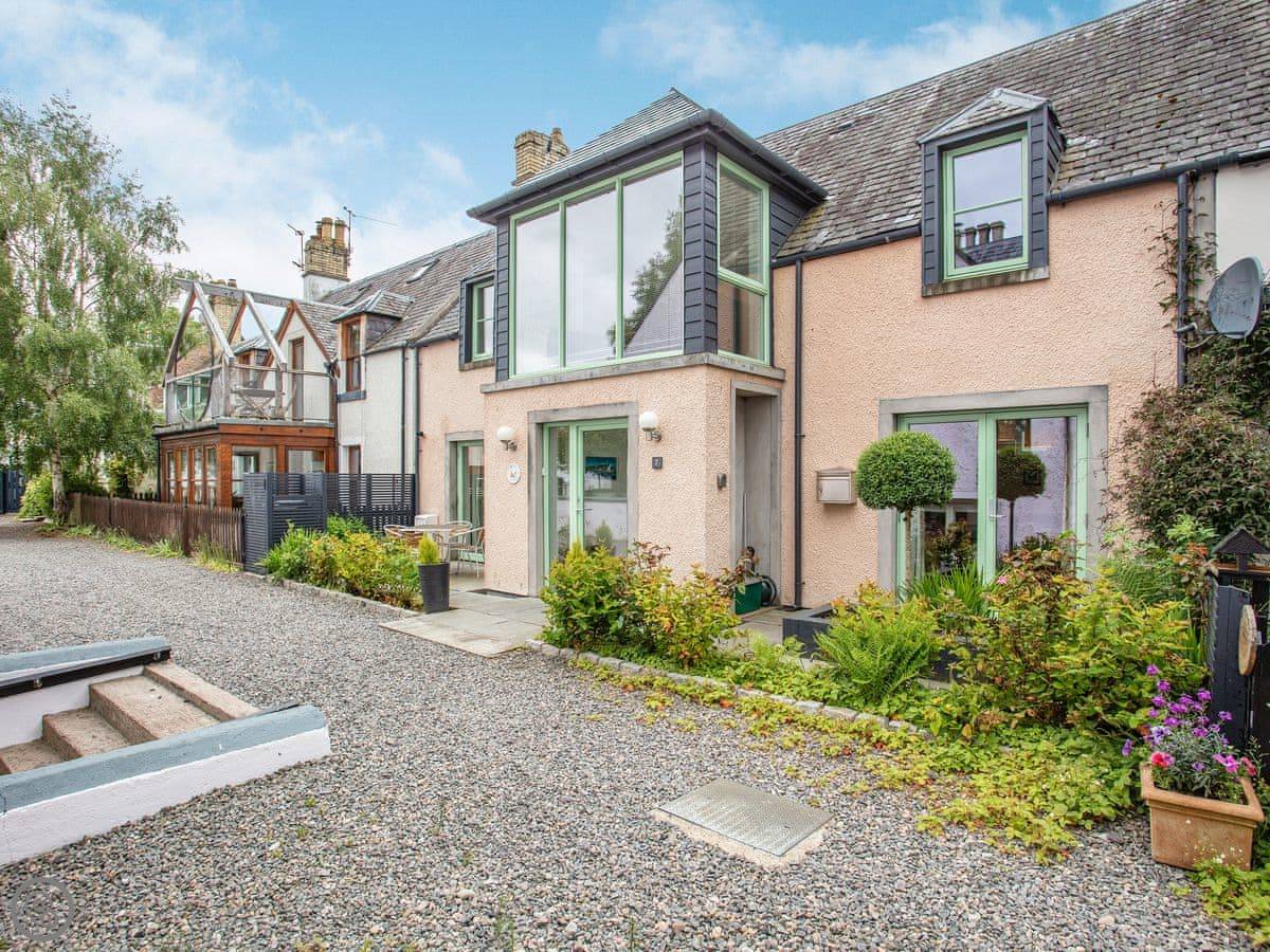 Rose Cottage is in Inverness, right by the River Ness. It's one of a few cottages around a shared courtyard. You get the whole cottage to yourselves. It's a modern place, built to look old. The front door opens straight onto the street.