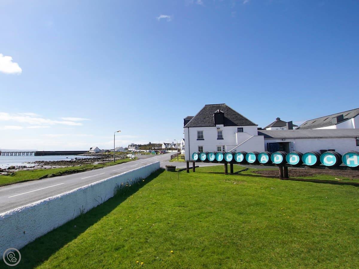 You can walk along the coast to Port Charlotte. It takes about forty minutes. Port Charlotte has a few more shops, a hotel, and the Museum of Islay Life. Port Ellen and Bowmore are both about a ten to fifteen minute drive. Bowmore has a swimming pool and more shops.