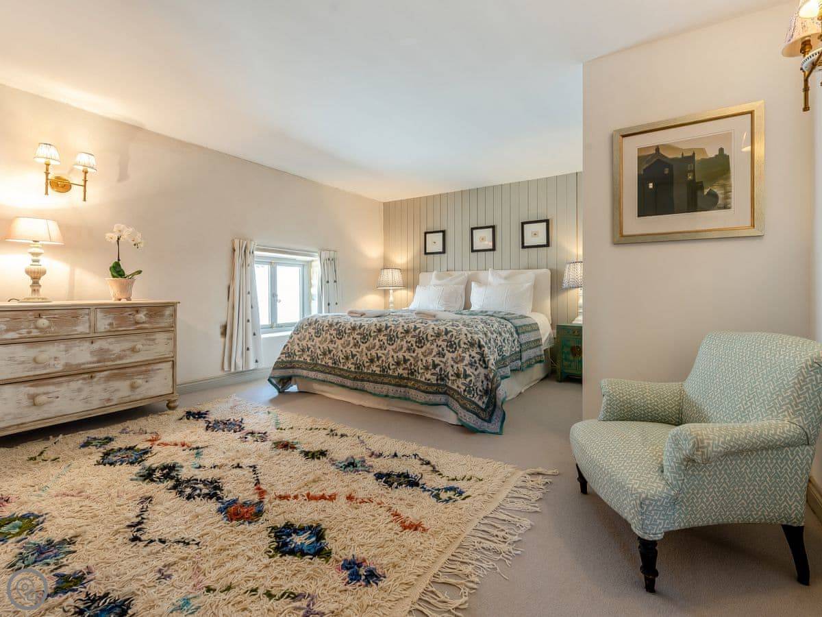 It's got a 4 Star rating, so it's comfortable and well-equipped. Everything like bedding and towels is included. There's a cot if you need one. The parking is right there. The entrance and ground floor are level, so it's accessible for wheelchairs, but do check with us about specific needs as the mezzanine bedroom is upstairs.