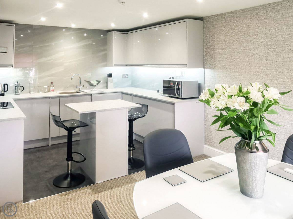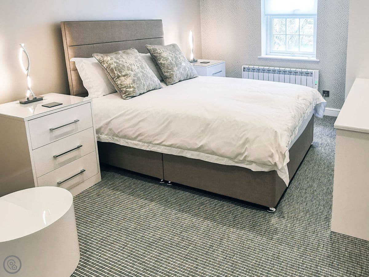 Apartment Eight is in Barton Manor, just outside Bognor Regis. It's a modern apartment in a converted stable block. The building is set back from the road so it's quiet. You can hear the birds.