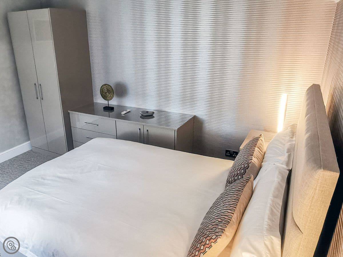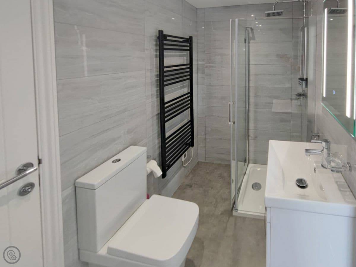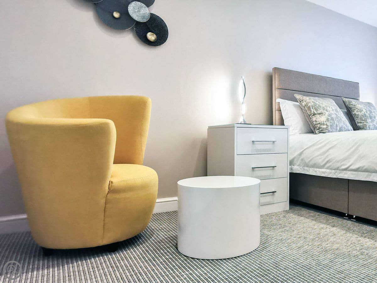 It sleeps four in two bedrooms. Both have their own bathrooms. It's got a 5 Star rating, which means it's very well finished. The sofas in the lounge are electric, so you can adjust them. The kitchen is separate.