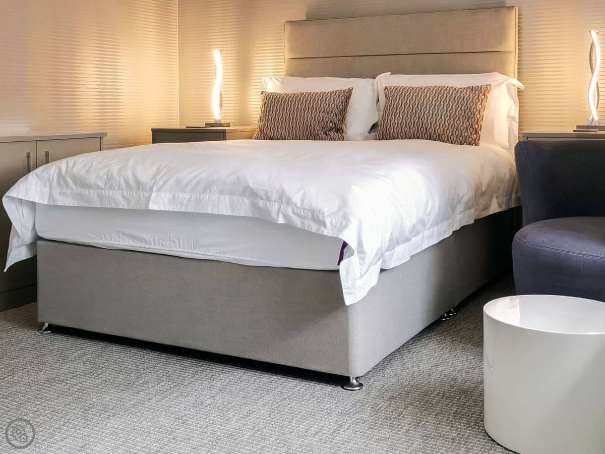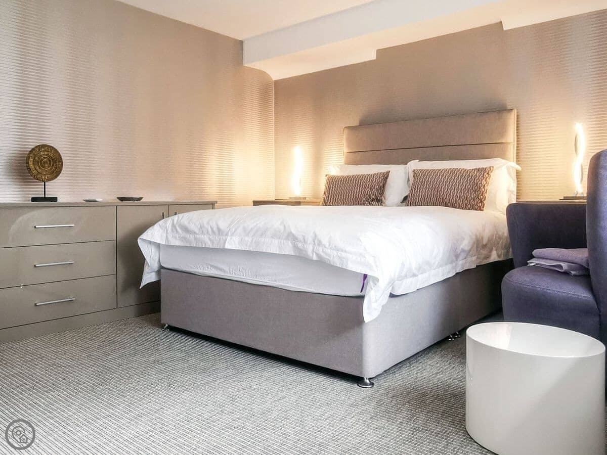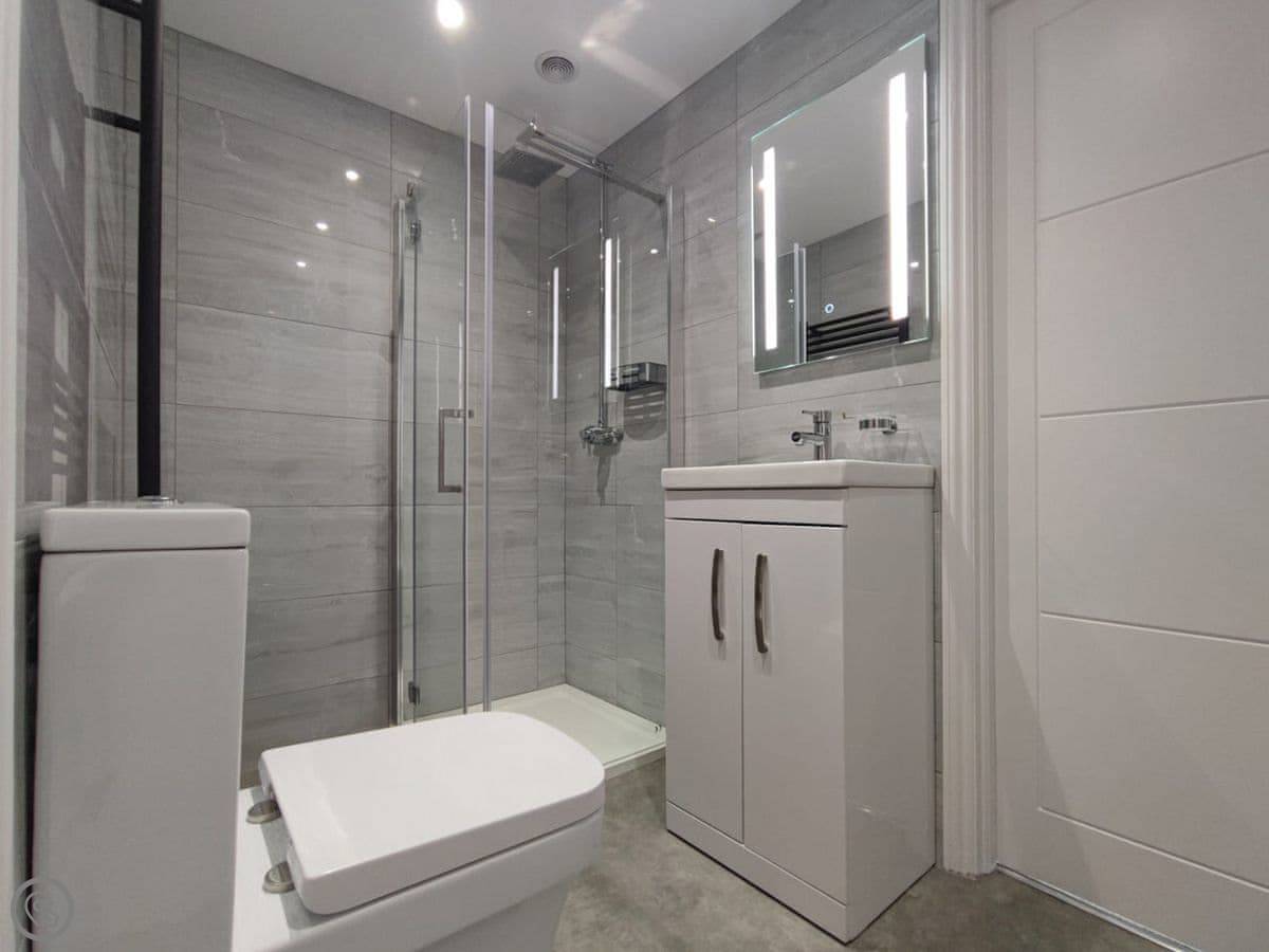 It sleeps four in two bedrooms. Both have their own bathrooms. It's got a 5 Star rating, which means it's very well finished. The sofas in the lounge are electric, so you can adjust them. The kitchen is separate.