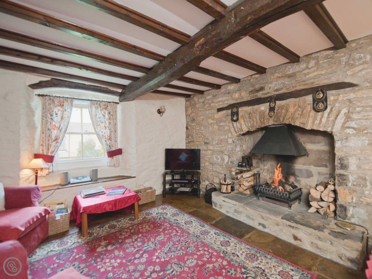 This former cart store has been converted into a quaint Dale’s stone cottage set just off the village green in Bellerby. With its streams and mill race running through Bellerby it’s a picturesque setting at the edge of Wensleydale. Entering the front door into the living/dining room with exposed stonework, flagstone flooring, beams and a large inglenook fireplace, the cottage offers an abundance of character and charm. The two settees set around the open fire offer a cosy feel while watching the Smart TV in Holly Cottage.