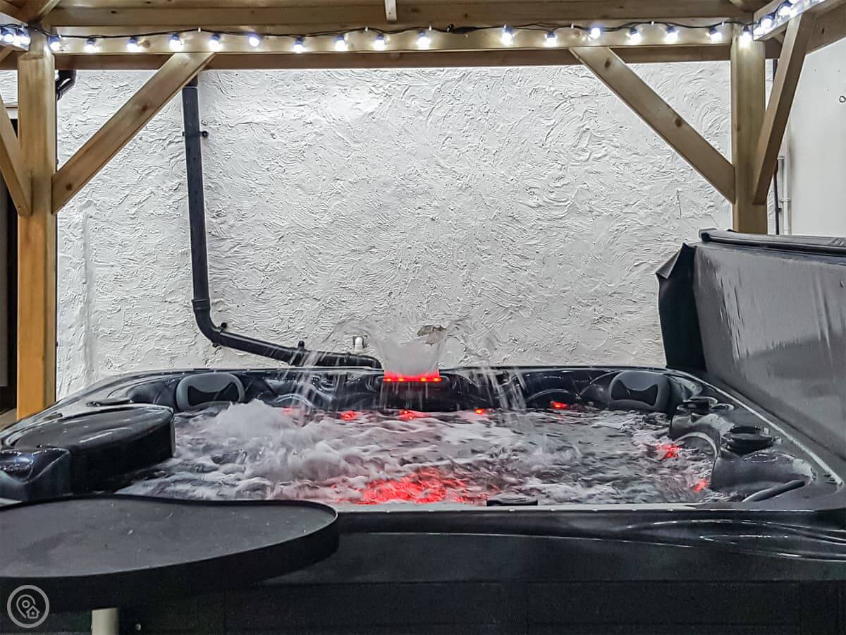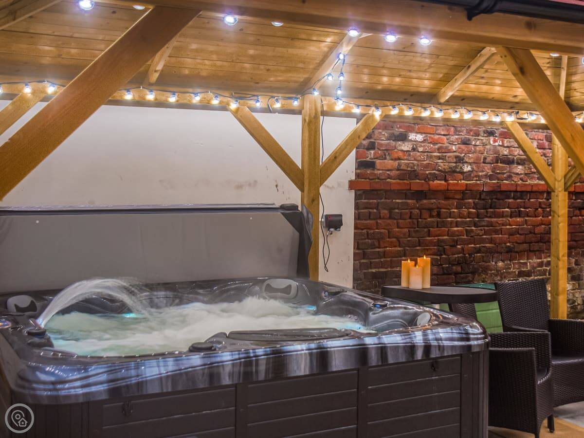 Outside, there's a paved, enclosed garden with a hot tub under a gazebo. There's outdoor furniture and off-road parking for three cars. Reversing onto the drive gives you more room to get out.