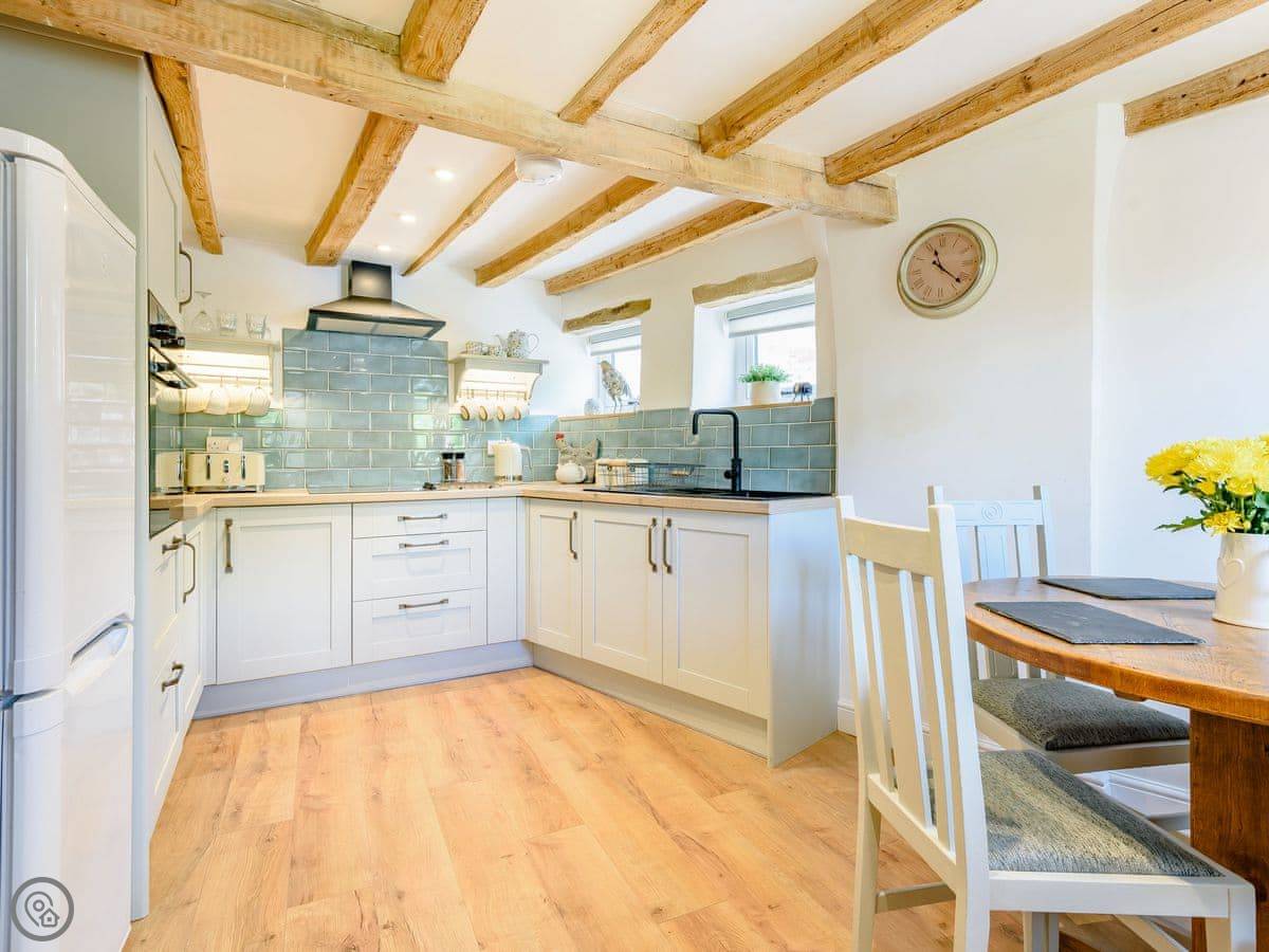 This charming cottage offers luxury accommodation for four guests and your four-legged friend with an extremely warm welcome. Set in the heart of the Derbyshire village of Fritchley surrounded by beautiful countryside, a short drive from Crich in one direction and Belper in the other, both popular Derbyshire market towns to explore whilst having a luxurious break in Robin Cottage. Robin Cottage has been transformed into a stylish holiday home, designed as a peaceful retreat for families and friends. You will enter a beautiful garden room which lets the light flood through; a perfect place to relax and watch the fabulous bird life in the garden. There is an open-plan dining and well-equipped kitchen area, with separate utility room and downstairs cloakroom. You will find a comfortable sitting room with snuggly sofas and a wood burning stove. Wind up the narrow staircase and you will discover high ceilings with exposed trusses which give a spacious feel to the beautifully designed interior. There are two bedrooms and a wonderful bathroom. Outside is a landscaped cottage garden with dry stone walls and even your very own bubbling stream to enjoy at the bottom of the garden. After a busy day, this is the perfect retreat to sit and listen to the stream and have a glass of something cold!