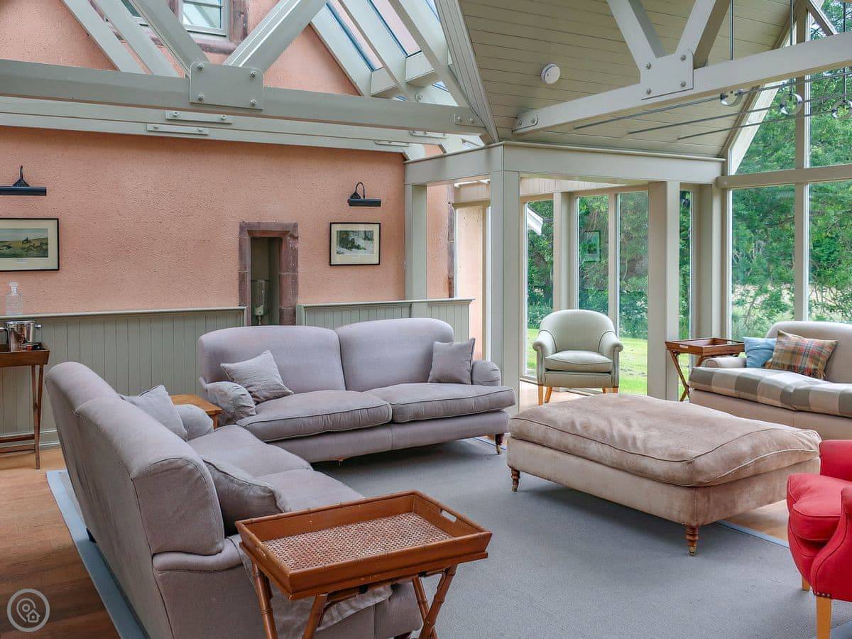 At the heart of the lodge is the bright and spacious living area, a glass conservatory with uninterrupted views towards the river, and comfortable seating for relaxing and entertaining. The spacious kitchen and dining area comfortably seats up to 10 for dinner, providing an atmospheric setting for dinner parties. The kitchen itself is fully equipped with utensils, tableware and modern appliances including a dishwasher, fridge/freezer and Rangemaster oven, however our talented cooks may be available by separate arrangement to cook evening meals as required. The lodge comfortably sleeps up to ten people, with two en-suite twin bedrooms on the ground floor, two en-suite double bedrooms on the first floor and an additional double bedroom in the attic with access to its own separate shower room.