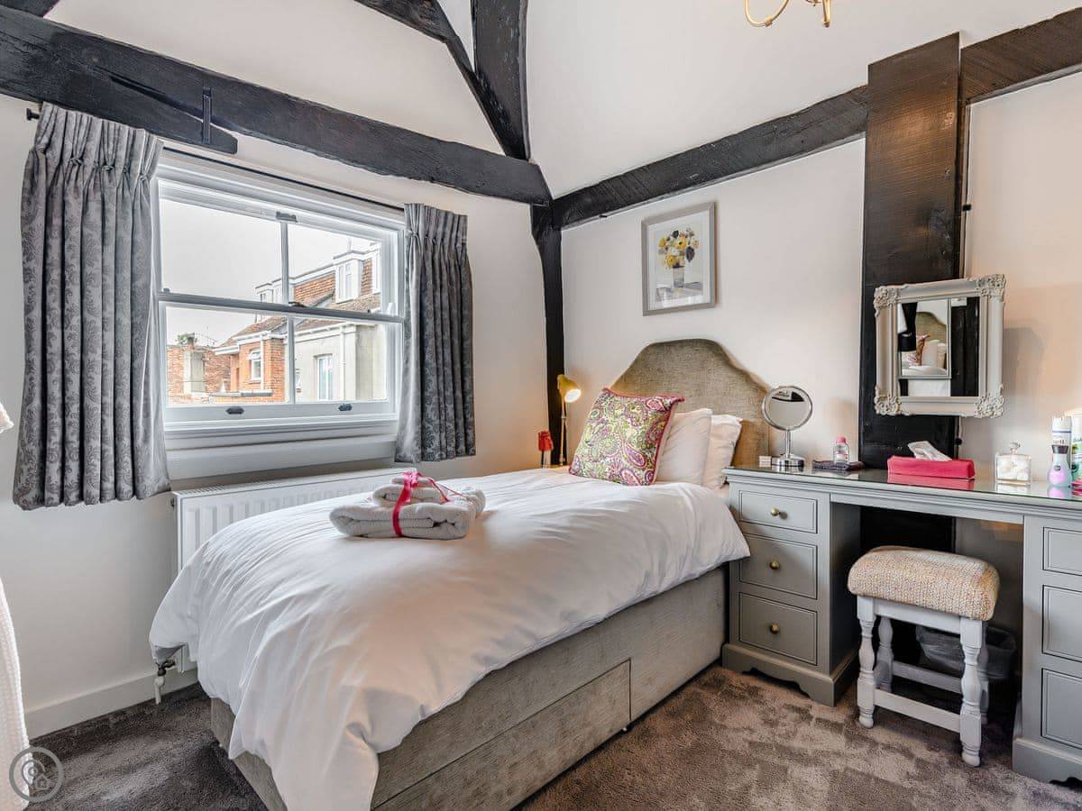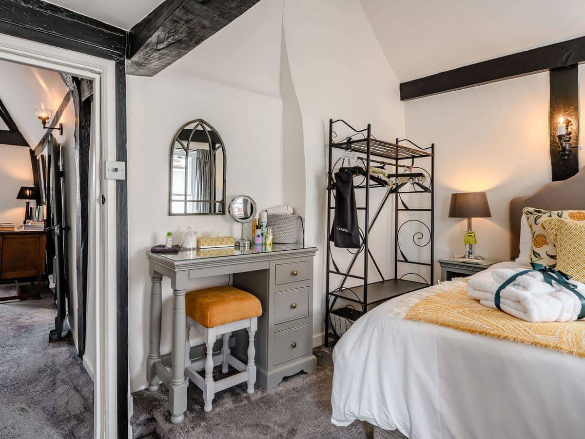 With so much to see and experience within Salisbury itself, you may not venture far, but a few places of interest that are well worth a day trip include the Neolithic stone circle of Stonehenge, a day trip to the beautiful city of Bath with its Thermae Spa and impressive architecture or for a more adrenaline fuelled day out, head to Thruxton motor circuit and take the wheel of a supercar! Whatever your reasons for choosing Purlins, we are certain this charming home will have you longing to return. A brief bit of history Purlins, which is over two floors, forms part of 56 High Street a Grade II* listed property in the heart of the medieval city of Salisbury. It was one of the first buildings to be built outside of the walled area around the cathedral called The Close. A timber framed building built in the 1400’s, later covered externally with mathematical tiles. It has modern conveniences alongside old features such as an inglenook fireplace, the exposed timber frame and many quirks that have stood the test of time and are long gone in modern building styles.