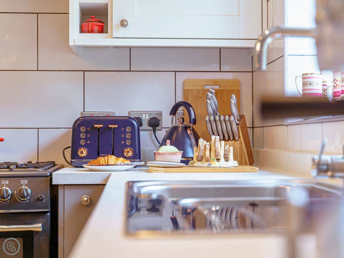 Facilities include a woodburning stove, dishwasher, washing machine, Wi-Fi, and TV. Bedding and towels are included. There's a cot and highchair. Parking is in the free public car park opposite the house.