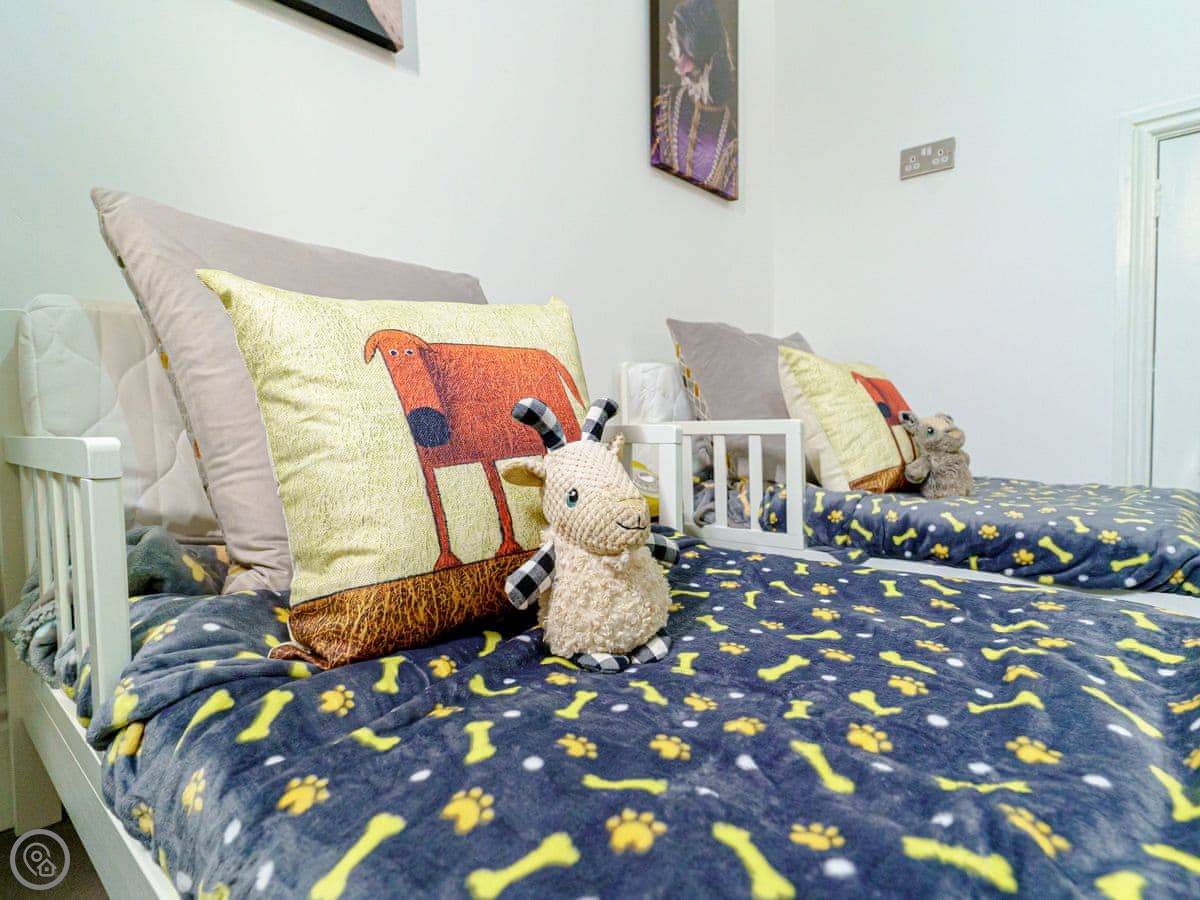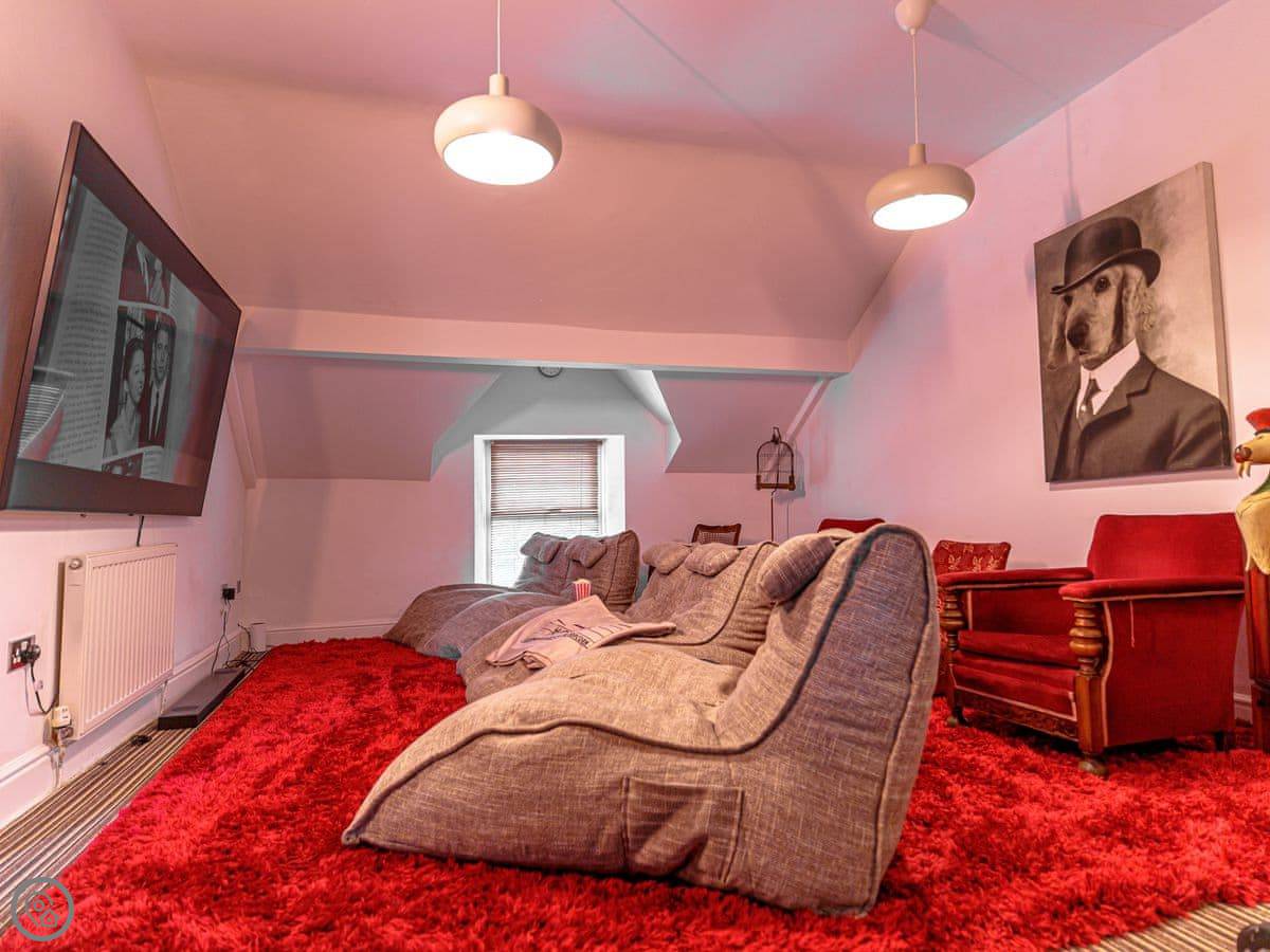 There's a games room. The garden is enclosed. You can take three dogs. The owners are very into dogs, so there's even a dedicated 'dog bedroom' with beds and things for them.