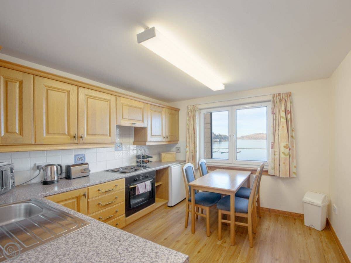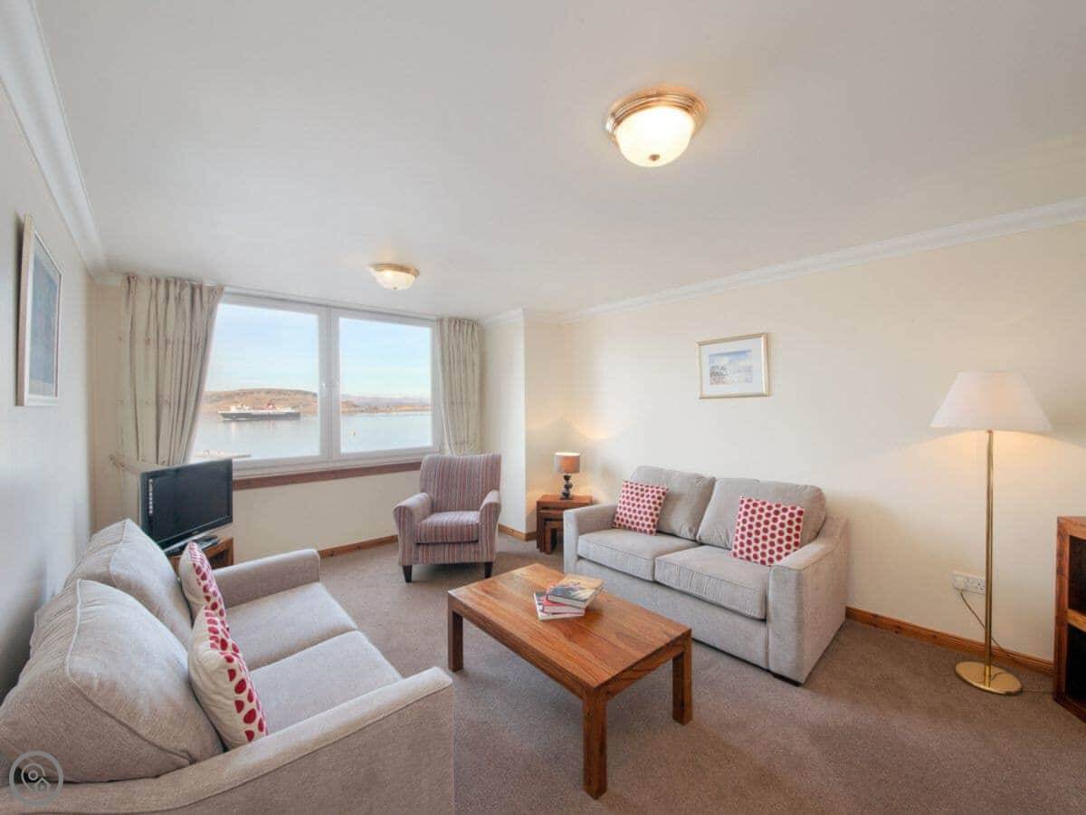 Esplanade Court is situated in a particularly superb location overlooking Oban Bay, on the lovely west coast of Scotland. The holiday apartments have qualified for the STB 4 Star rating. They are equipped and furnished to a good standard with each one having a panoramic view over the bay and out to the isles of Kerrera, Mull and Lismore. Oban is a lively west coast town with lots going on for the visitor. It is central for touring the west coast, or take a boat trip to the above islands and Iona which leave daily. There is a lovely sandy beach at Ganavan which is 1½ miles away. There are some very good restaurants in which to eat dinner in the evening, after maybe a days climbing, walking or enjoying some of the wonderful animal and plant life which the west highlands has to offer. Elevator to all floors.