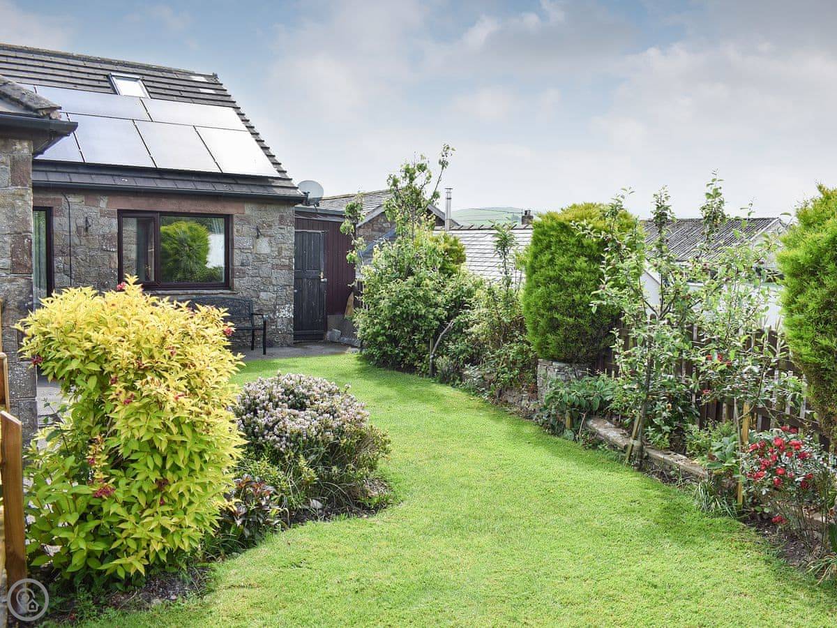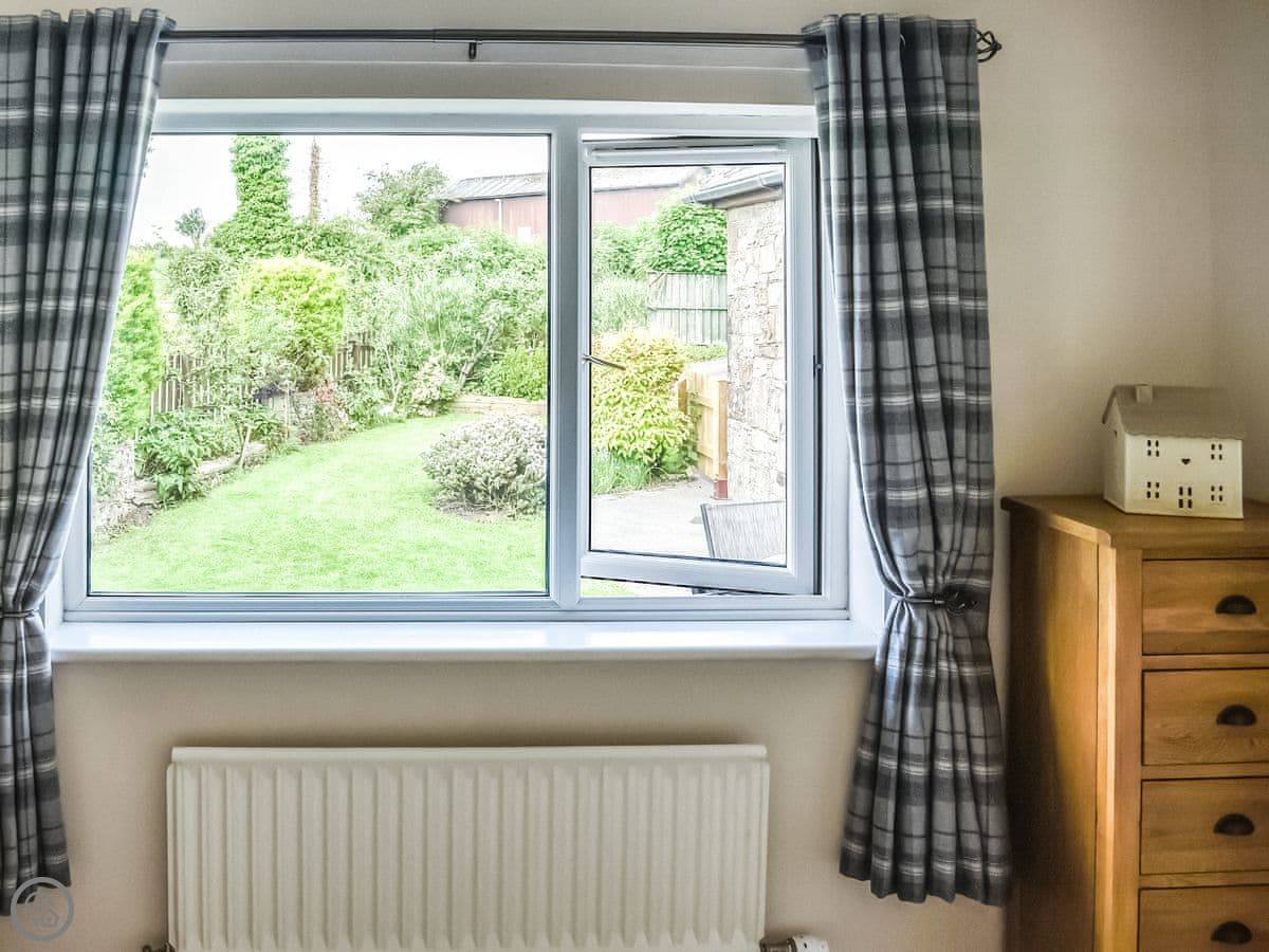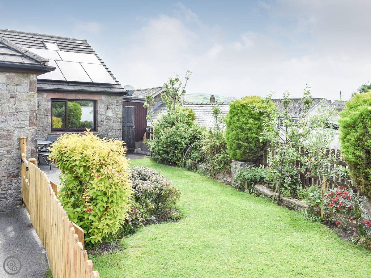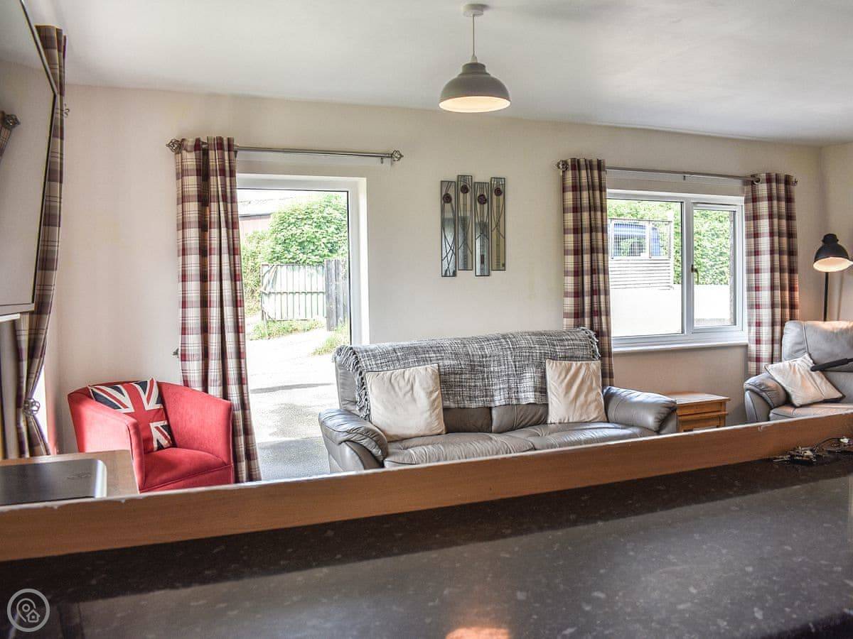 The living area is open plan with a wood burner, a TV, and a kitchen with a dishwasher. The garden is enclosed, which is good if you're bringing dogs. You can bring up to two.