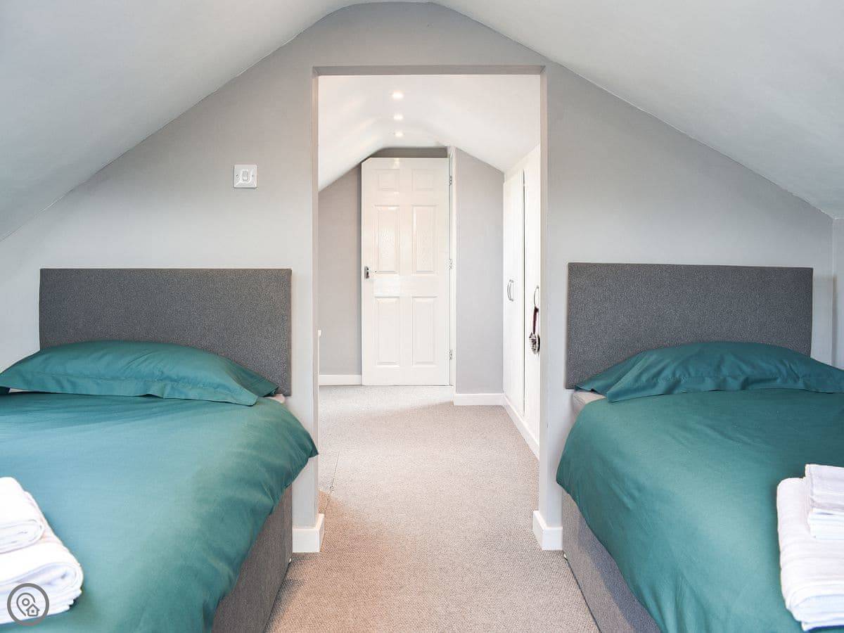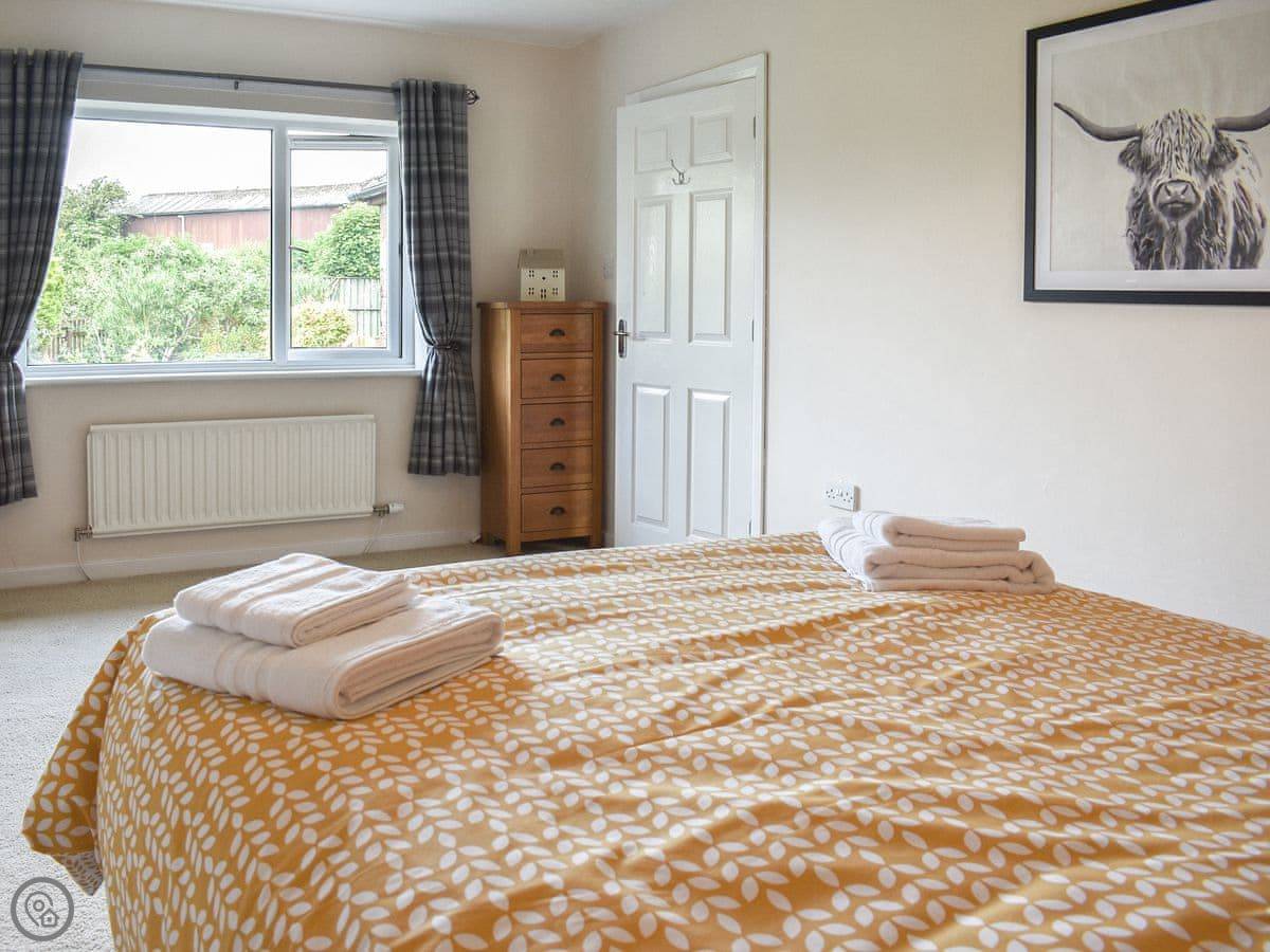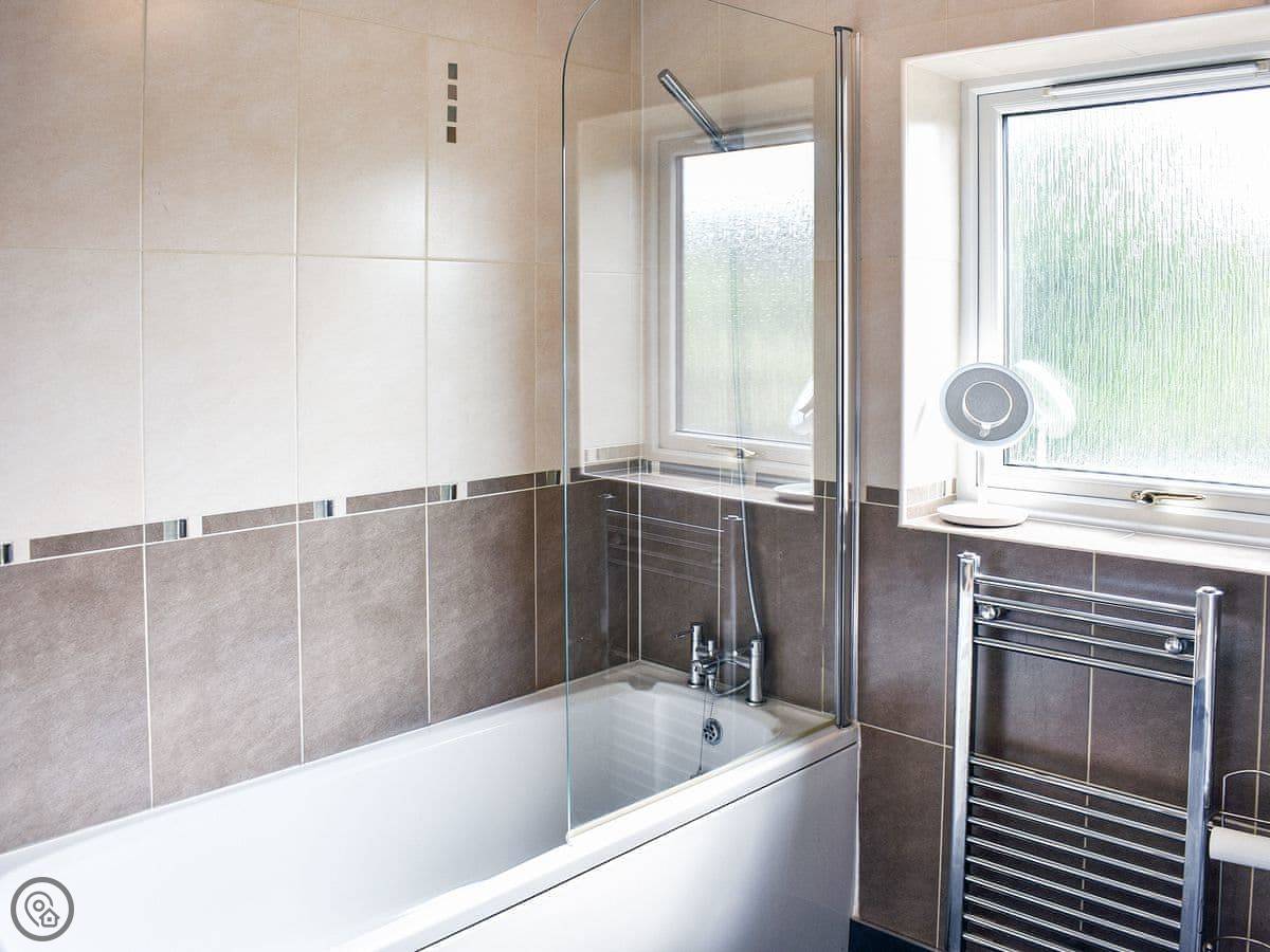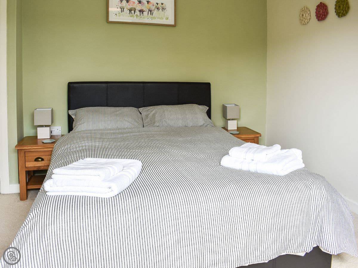 It sleeps six. There are three bedrooms and three bathrooms. Two of the bedrooms and two of the bathrooms are downstairs. The third bedroom is upstairs and has twin beds. It has a 4 Star rating. It's well looked after.
