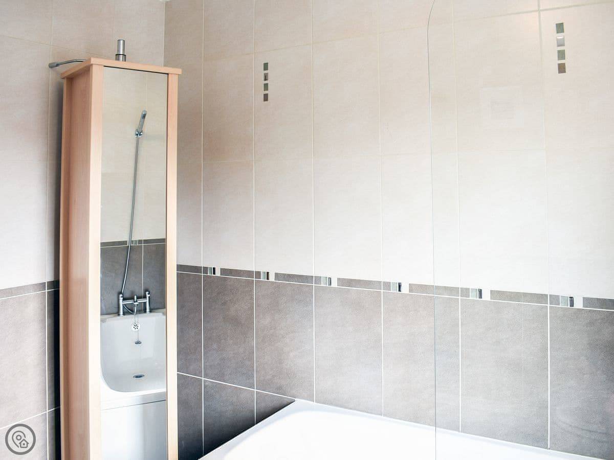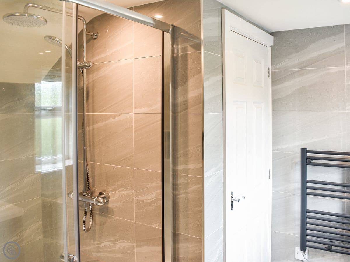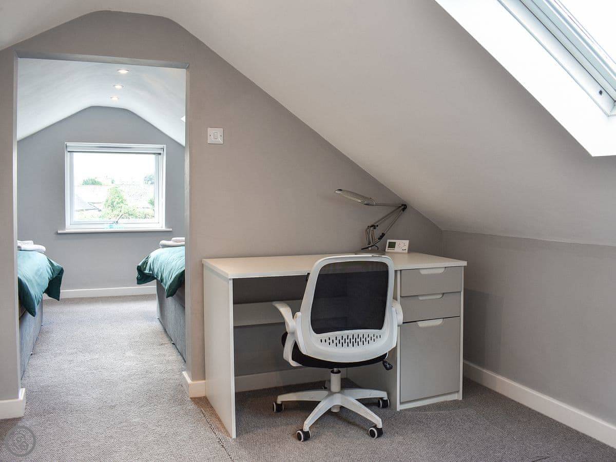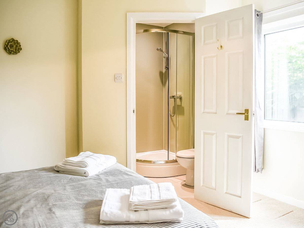 It sleeps six. There are three bedrooms and three bathrooms. Two of the bedrooms and two of the bathrooms are downstairs. The third bedroom is upstairs and has twin beds. It has a 4 Star rating. It's well looked after.