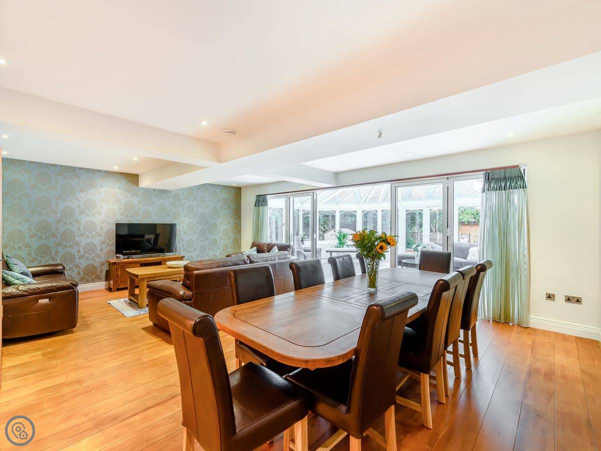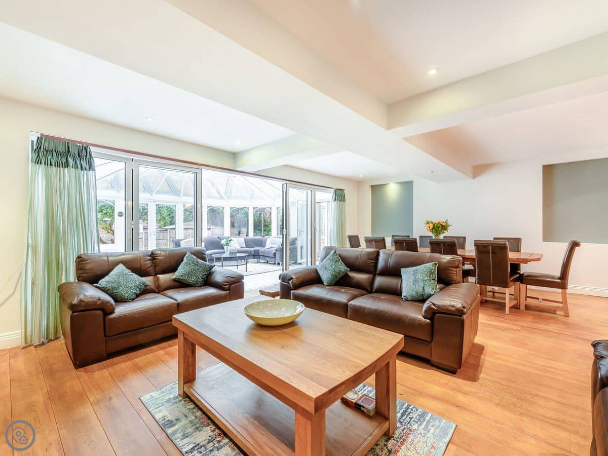 The accommodation provides sociable living space for catching up together with a large kitchen to rustle up a lovely meal, a great size living room with ten-seater dining table and sofa. There is the added benefit of a large conservatory complete with five-seater corner sofa, table and bench, which flows out to the patio and garden beyond. Both sides of the patio have walking access to the garden without steps. Four of the bedrooms benefit from their own en-suite with the fifth bedroom using the family bathroom on the first floor. All bedrooms have wardrobe space to store your holiday clothes.