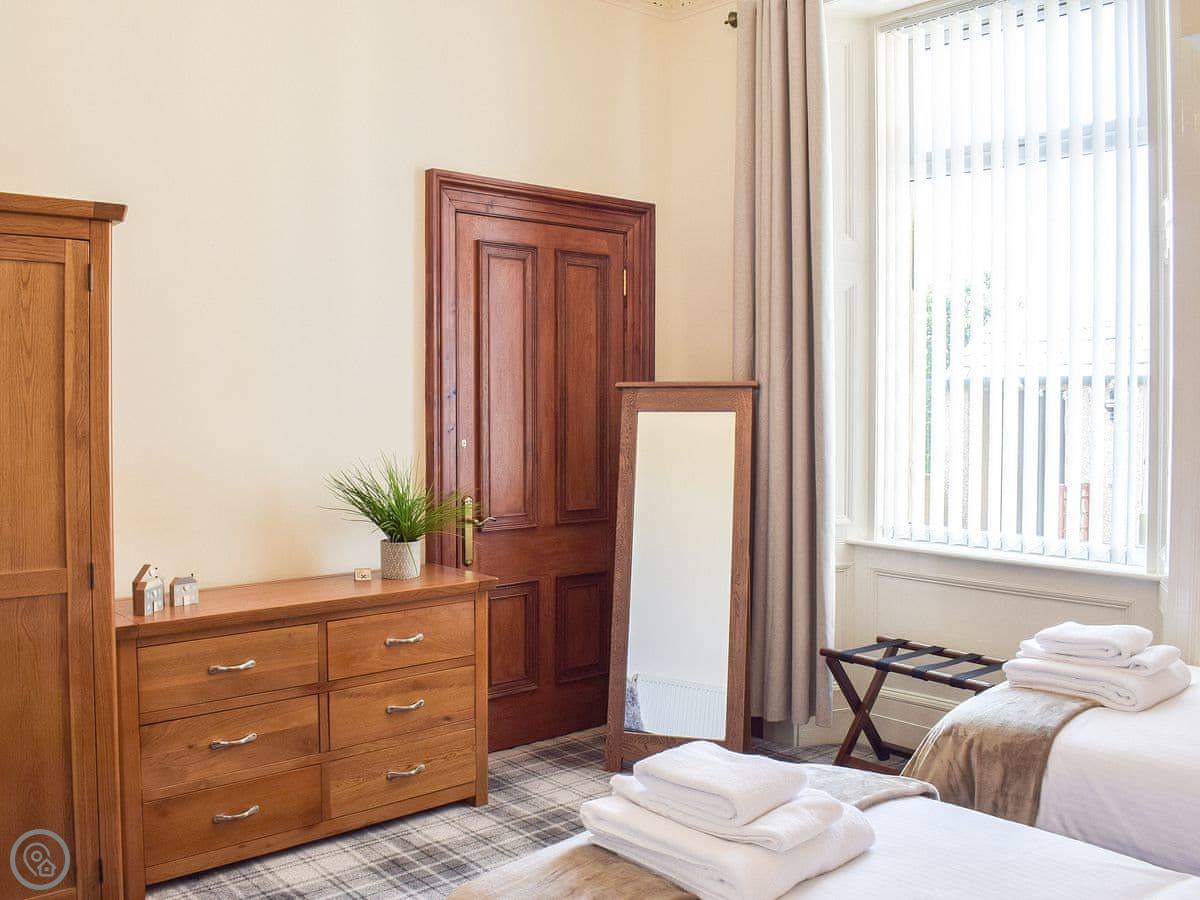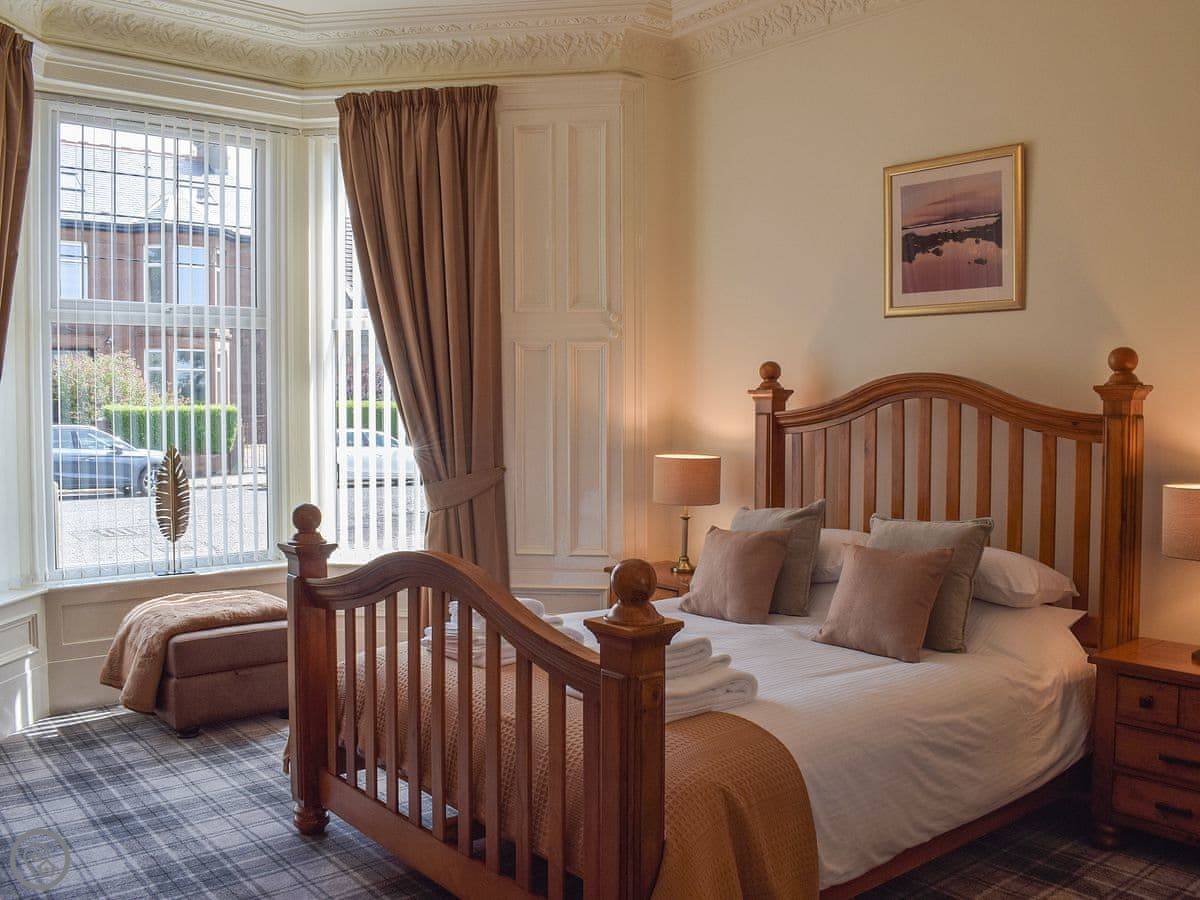 Sorbie Villa is in Ardrossan. It's the lower conversion of a Victorian villa, about 200 yards from the sandy beach. You get a decent bit of garden to yourselves, and there's a park right next to it that leads straight down to the sand. Good for dogs.