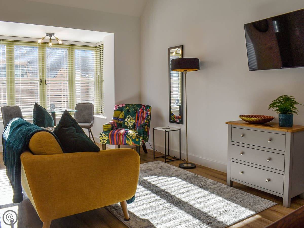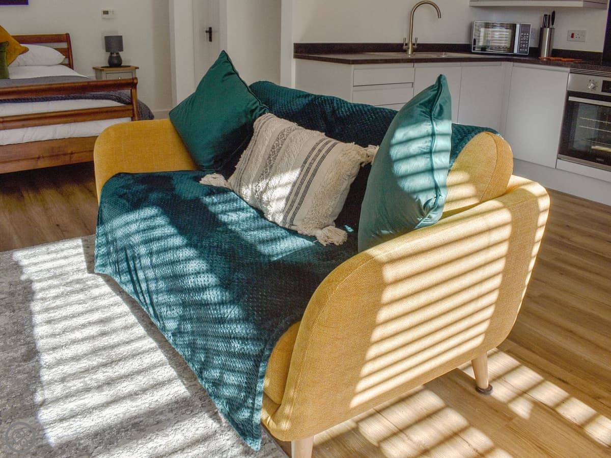 Ideal for couples the Old Coal Yard is a selection of ground floor studio apartments designed with exceptional quality by the owners who live on site. The high-rise ceilings create a wonderful light and spacious feeling with an open plan kitchen, dining, living and bedroom. All on the ground floor, the well-equipped kitchen has everything you could need to rustle up a sumptuous meal, there is a stylish comfy sofa in the living area and a king-size sleigh bed with a TV that can be viewed from both the sofa and the bed.