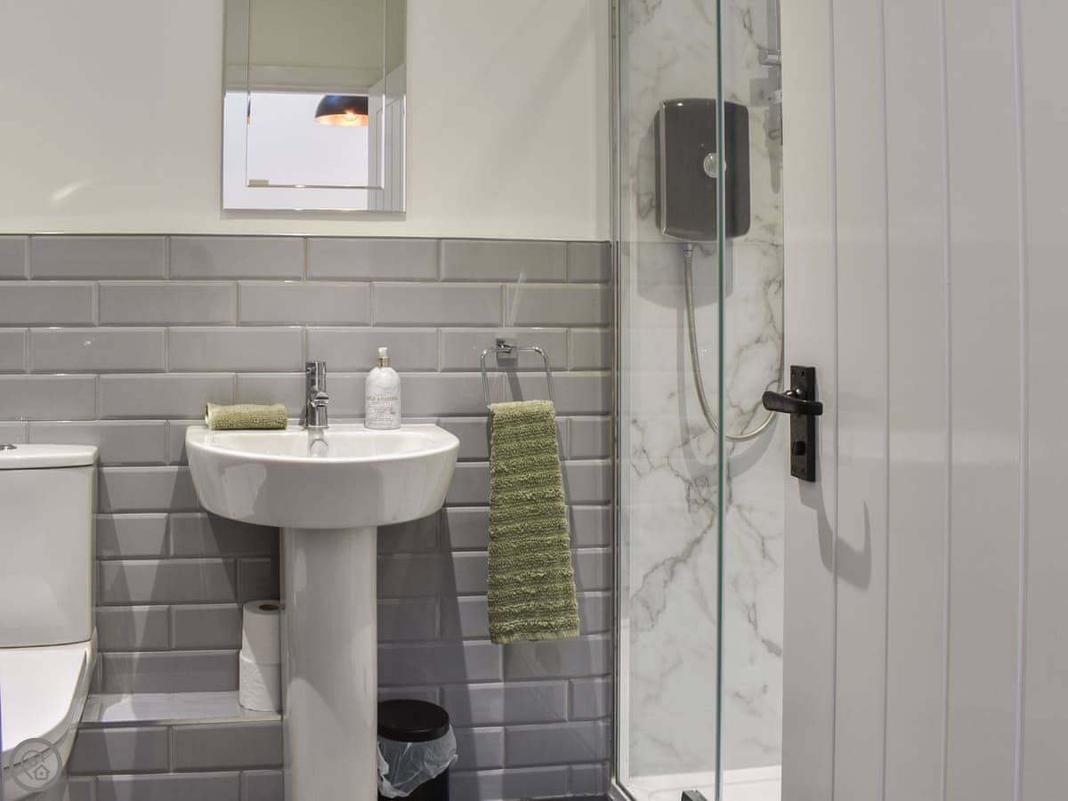 A modern bathroom with a large shower cubical leads off the bedroom area. On the edge of rolling countryside, the owners have created a few different outdoor seating areas for all guests to enjoy, Old Coal Pit is ideal for couples or friends wanting a getaway together but have their own separate accommodation.