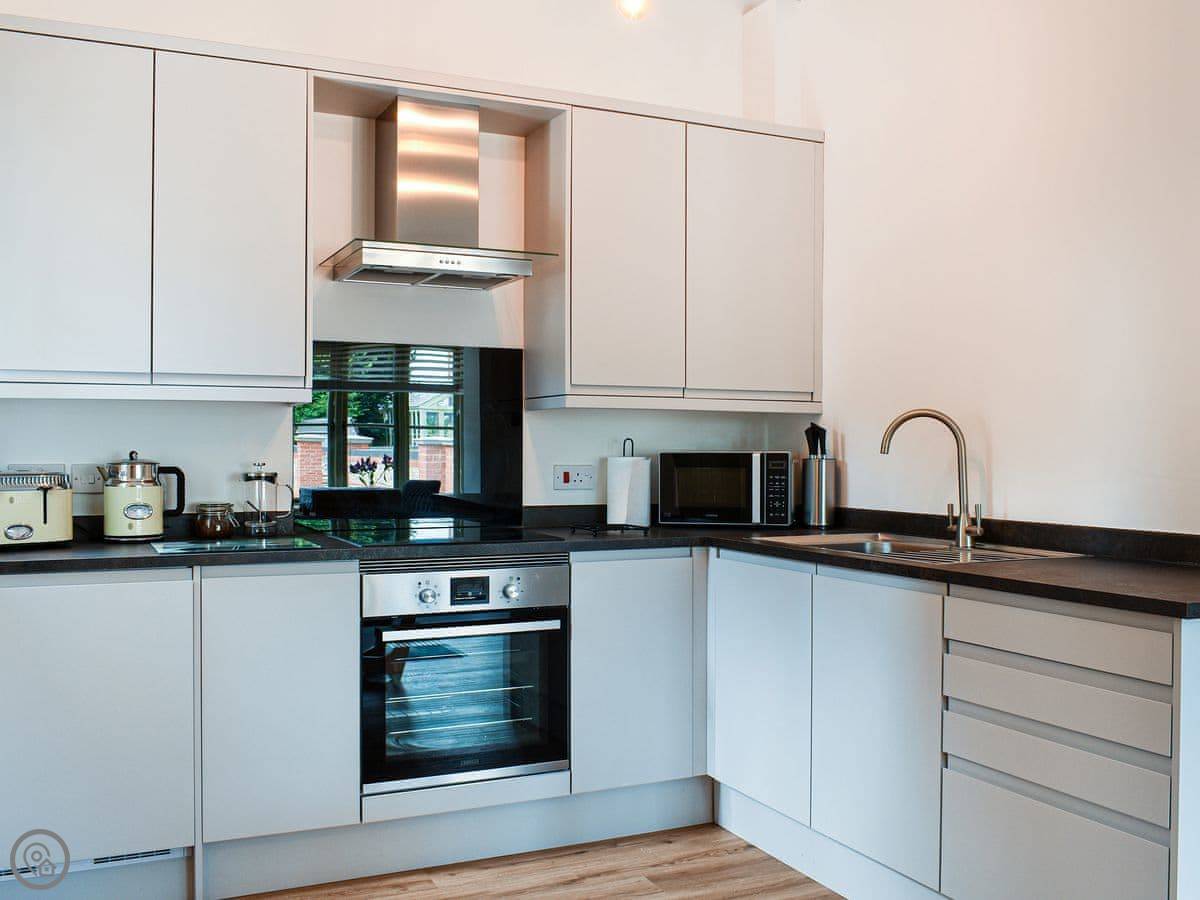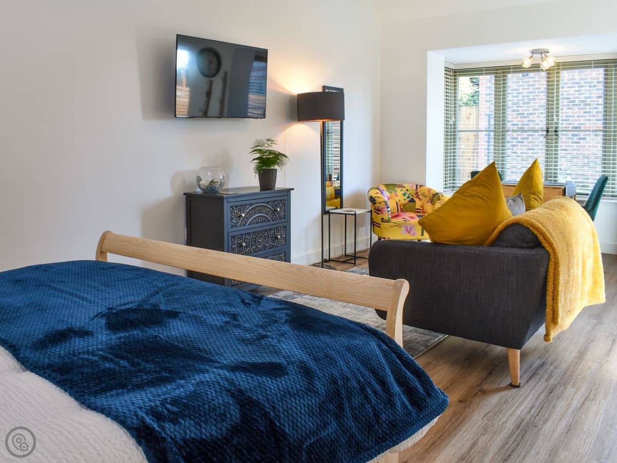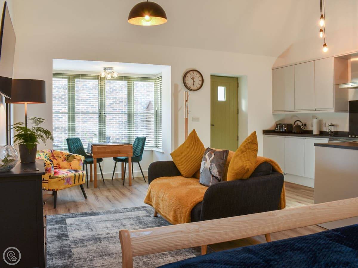 Ideal for couples the Old Coal Yard is a selection of ground floor studio apartments designed with exceptional quality by the owners who live on site. The high-rise ceilings create a wonderful light and spacious feeling with an open plan kitchen, dining, living and bedroom. All on the ground floor, the well-equipped kitchen has everything you could need to rustle up a sumptuous meal, there is a stylish comfy sofa in the living area and a king-size sleigh bed with a TV that can be viewed from both the sofa and the bed. A modern bathroom with a large shower cubical leads off the bedroom area.