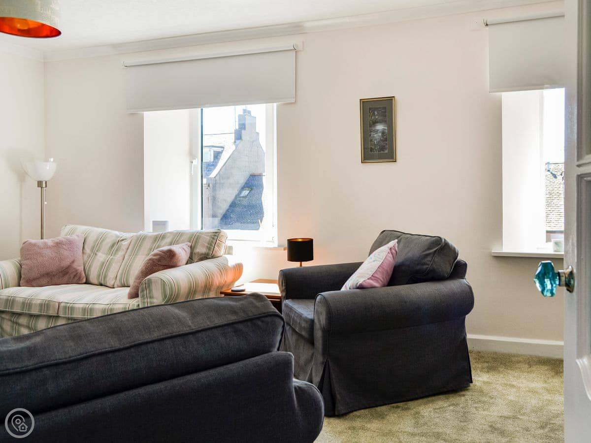 India Lane Cottage is a first floor flat on a quiet lane in Montrose. It's a two minute walk to the beach road. You can see the sea from the top windows, but it's not right on the sand.