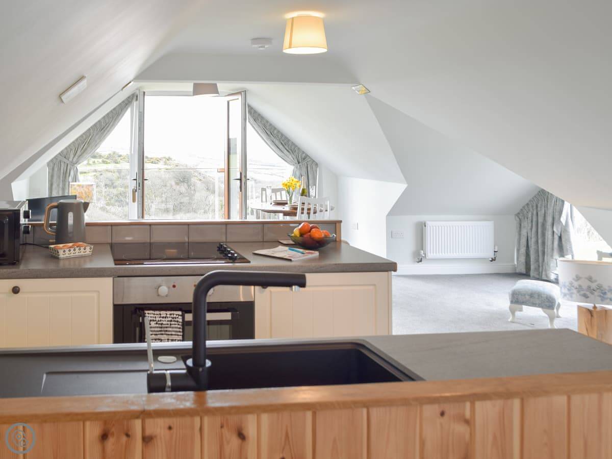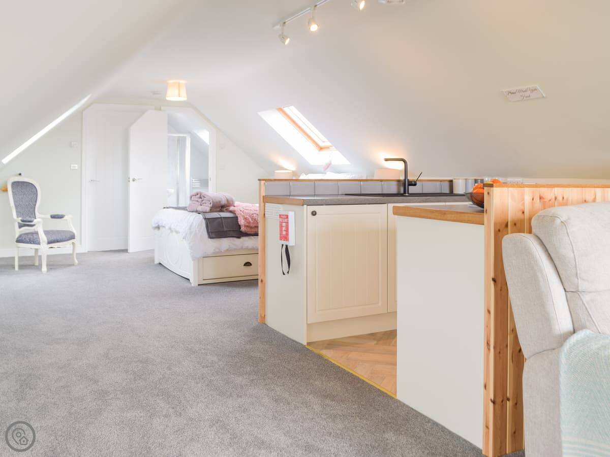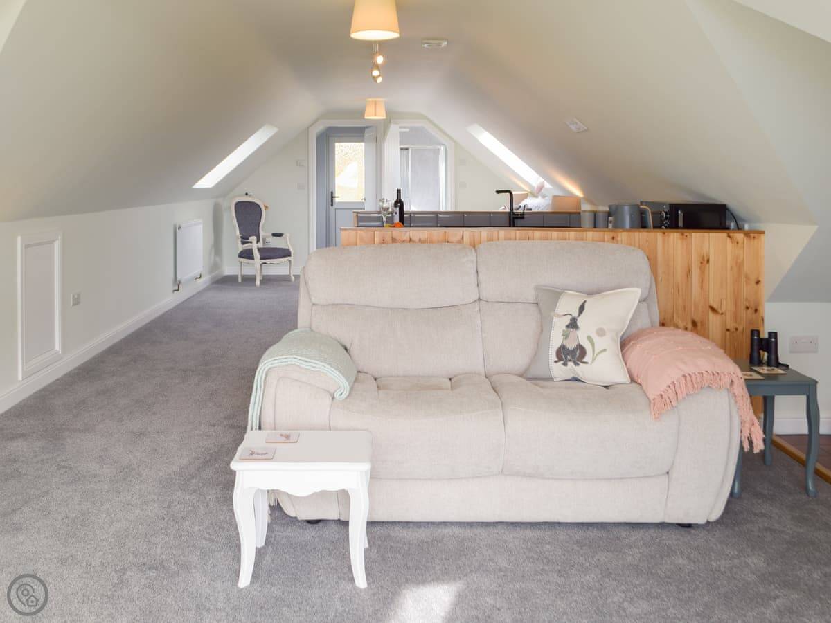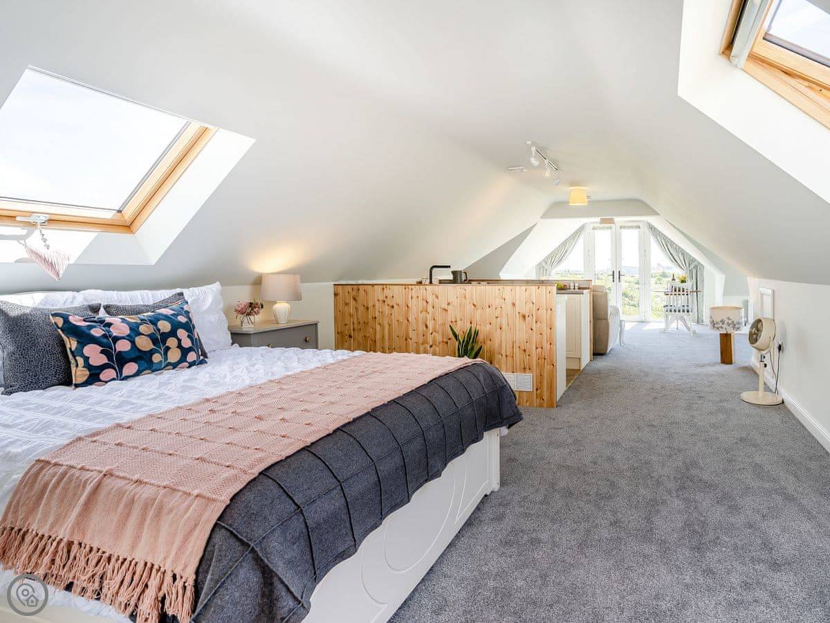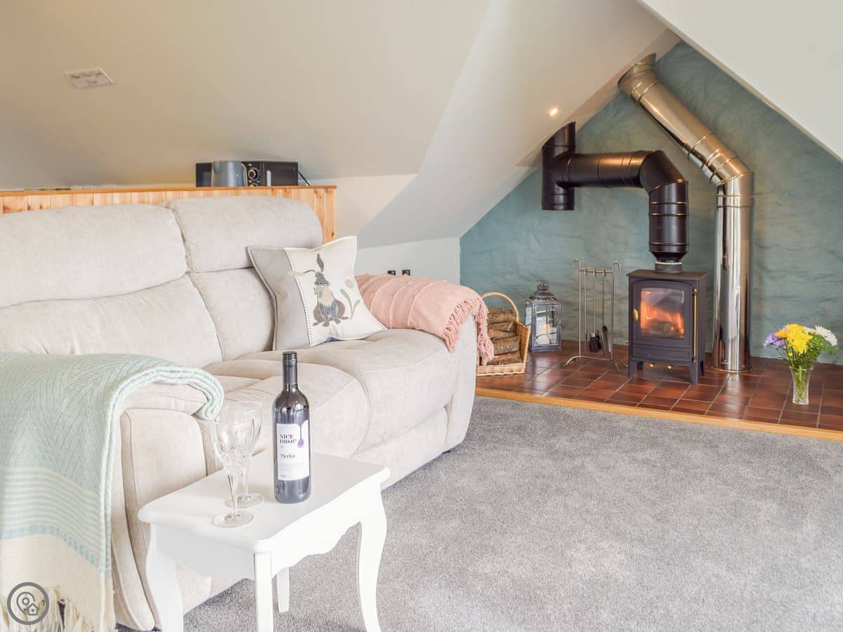 This superb first floor accommodation has been built and finished to a very high standard, was completed in 2022 and is attached to the owner’s home. There is allocated parking with level access to The Nest over a footbridge to the doorstep. As you step inside this perfect couples retreat you immediately feel at home and are drawn towards the large windows and Juliet balcony which frame stunning views. The open plan living is bright, airy and provides a comfortable lounge with log burner, dining area and very well equipped kitchen, the perfect setting in which to relax after a day of exploring or sightseeing. The bedroom with en-suite bathroom has been tastefully furnished to a high standard with a good night’s sleep in mind.