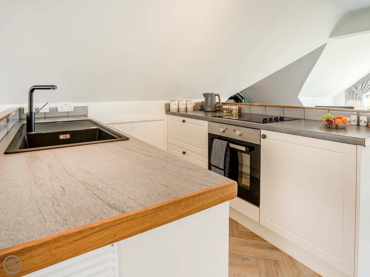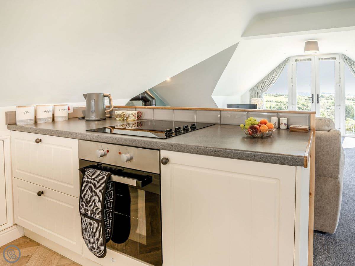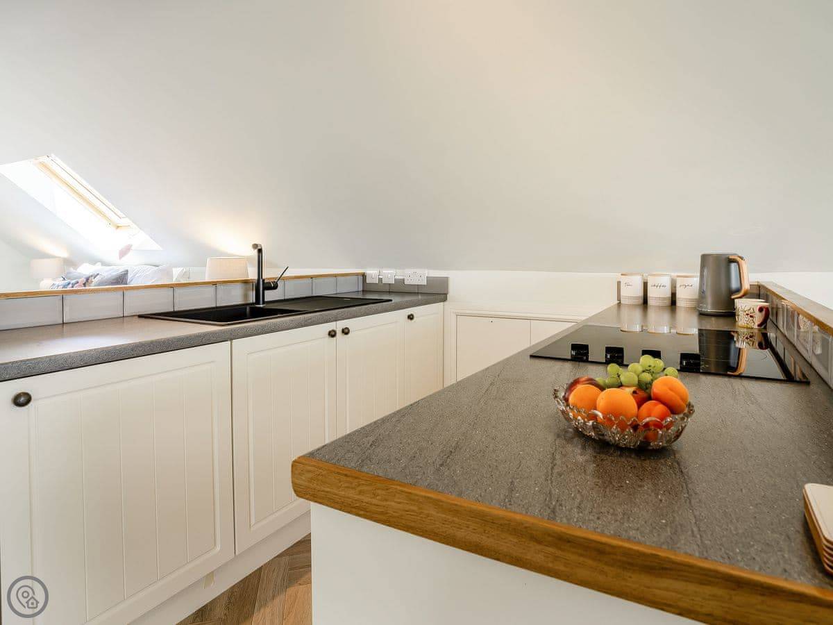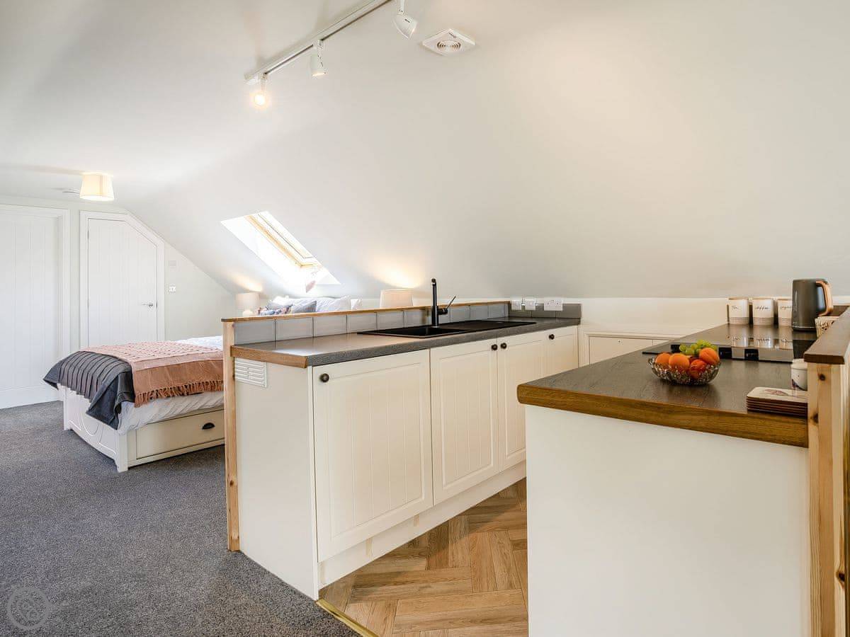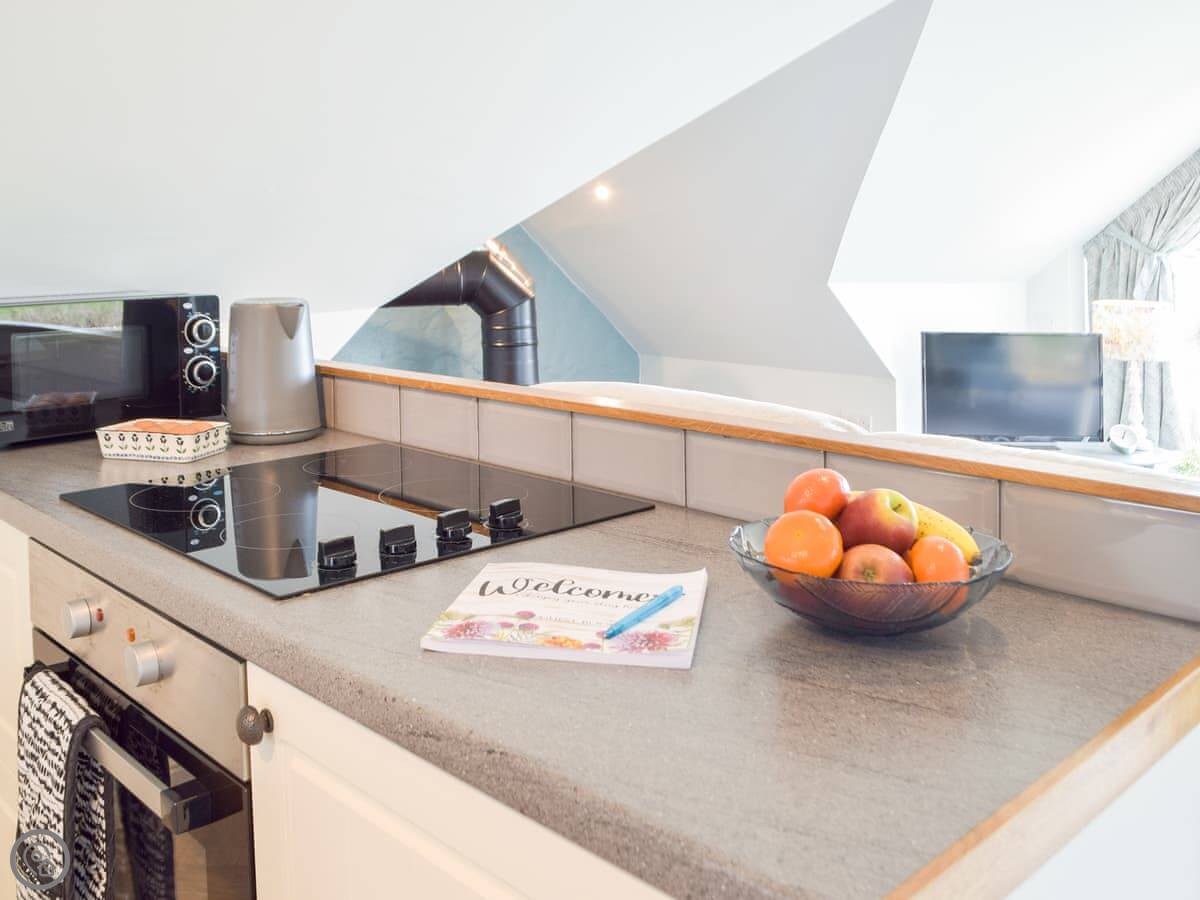 This superb first floor accommodation has been built and finished to a very high standard, was completed in 2022 and is attached to the owner’s home. There is allocated parking with level access to The Nest over a footbridge to the doorstep. As you step inside this perfect couples retreat you immediately feel at home and are drawn towards the large windows and Juliet balcony which frame stunning views. The open plan living is bright, airy and provides a comfortable lounge with log burner, dining area and very well equipped kitchen, the perfect setting in which to relax after a day of exploring or sightseeing. The bedroom with en-suite bathroom has been tastefully furnished to a high standard with a good night’s sleep in mind.