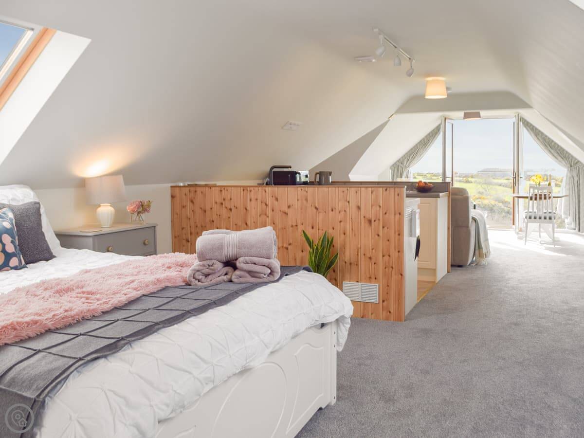 Sit back, chill out and relax in this delightful, cosy and comfortable studio apartment whilst taking in breath taking countryside and distant views of Newgale beach and St Brides Bay. Alternatively watch the sunset over Kite Mountain from your own outside seating and barbeque area.