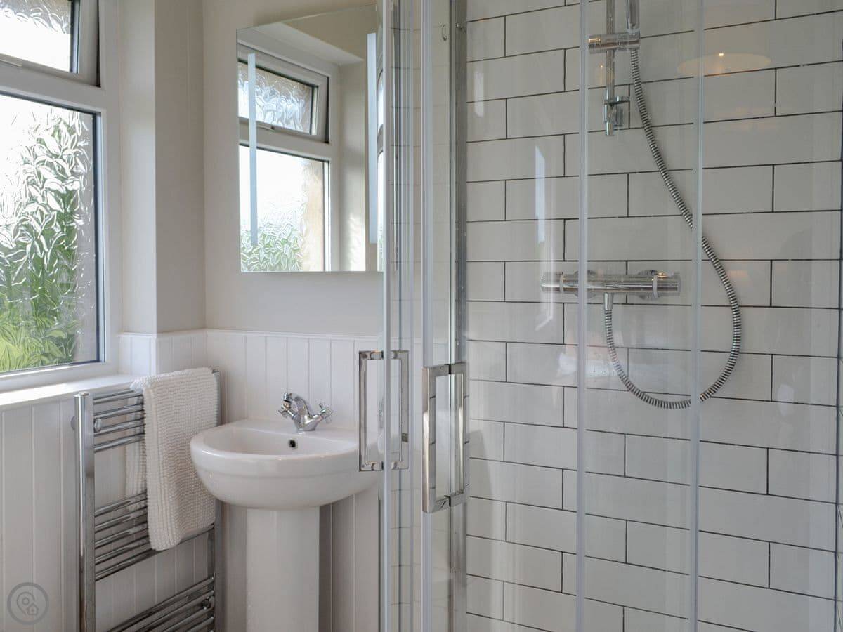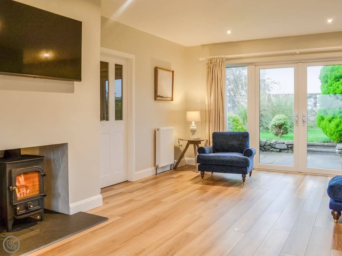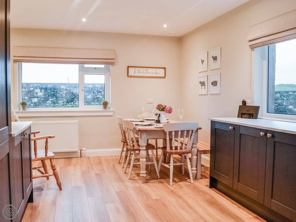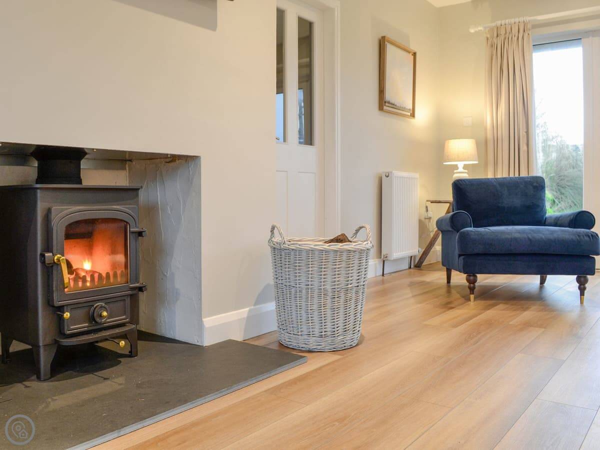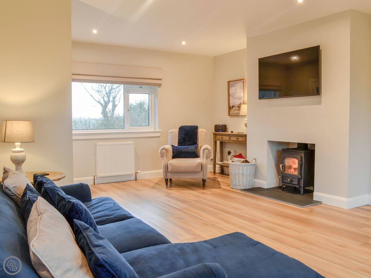 Inside, it's straightforward. Modern kitchen with a dishwasher, washing machine. The living room has a woodburning stove. It's a 4 Star place, which covers the basics well.