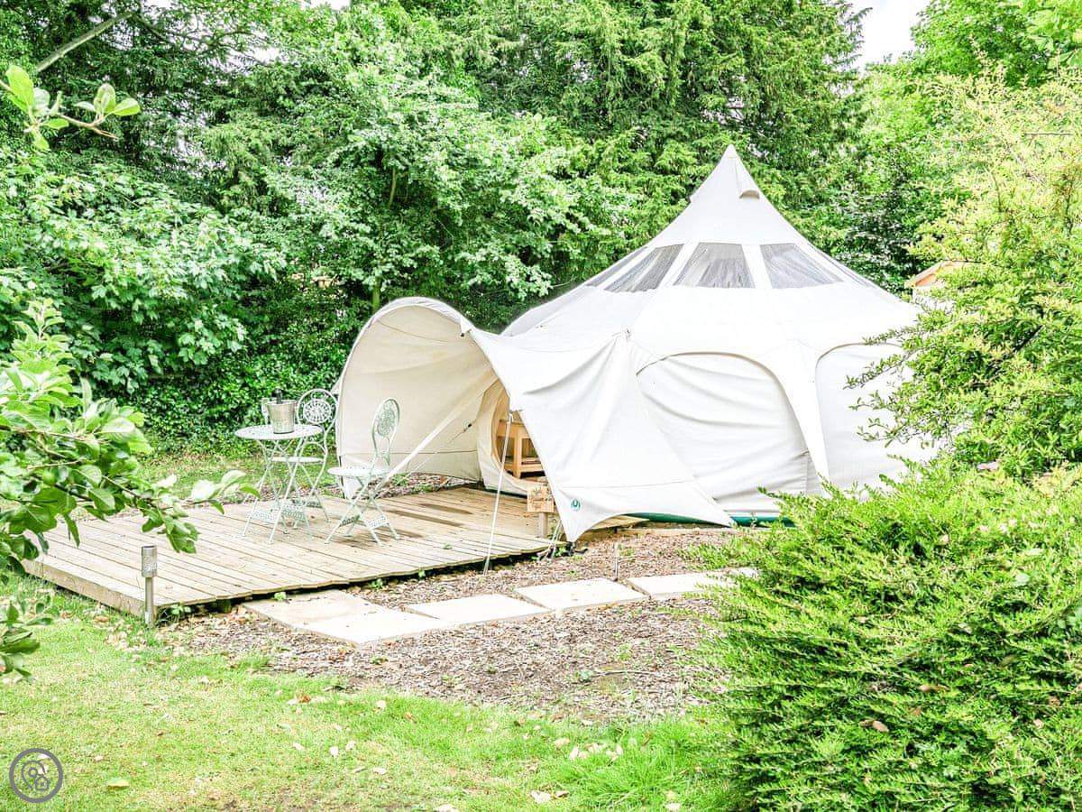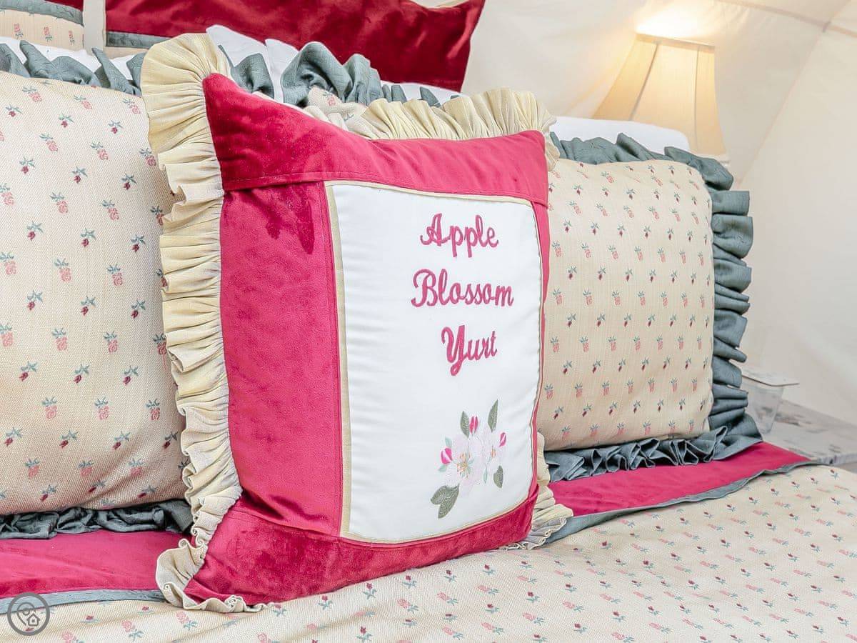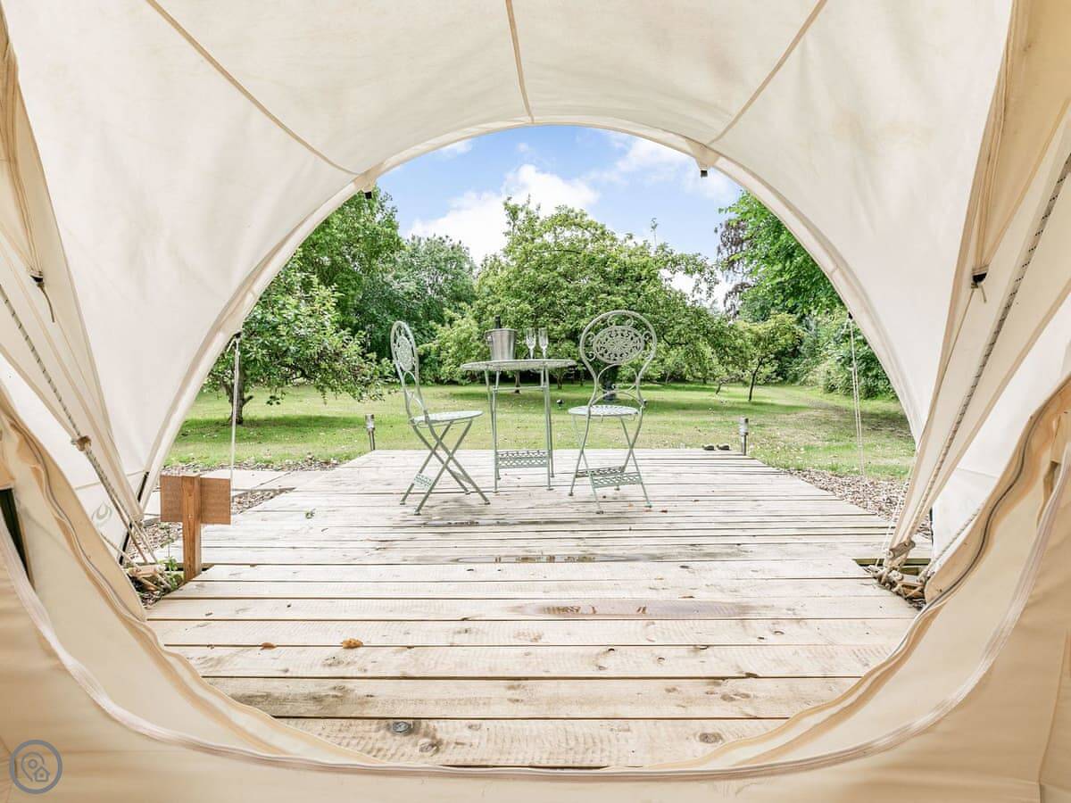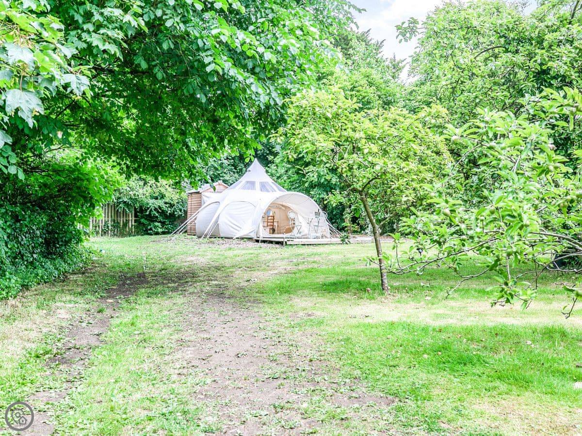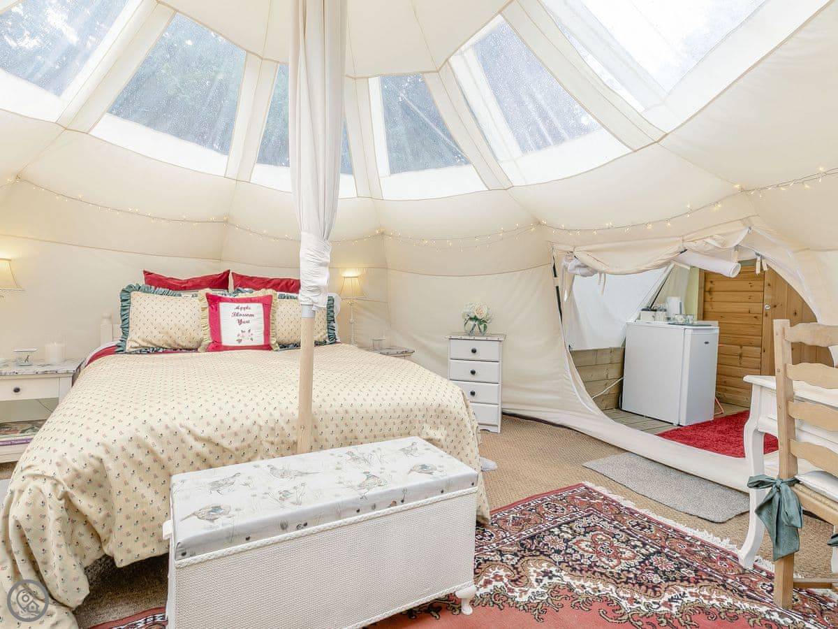 It's the Apple Blossom Yurt, in Walcot, Lincolnshire. It's a yurt, really just a big circular tent, but it's set up properly. It's in an old orchard with sheep and horses in the next field.