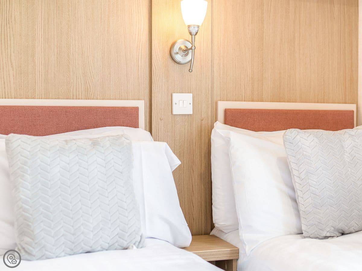 This modern lodge is ideal for couples, friends, and families. Butterfly is in a fantastic location on Bockenfield Country Park and sits in a premium plot with its own garden, just across the road from a lovely play area for the children and you can often spot wildlife around. Entering the lodge, you are greeted by a modern and spacious open plan design, benefiting from a cosy lounge area with electric fire and smart TV, kitchen, and dining area. Three bedrooms consisting of a double bedroom with ensuite toilet room, and two twin rooms. Additional there is a family bathroom. The on-site bars are a perfect place to unwind and get a drink or a bite to eat. There is also often entertainment in the bars, and they are dog friendly too.