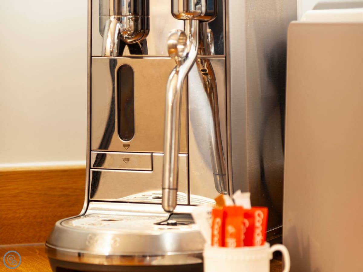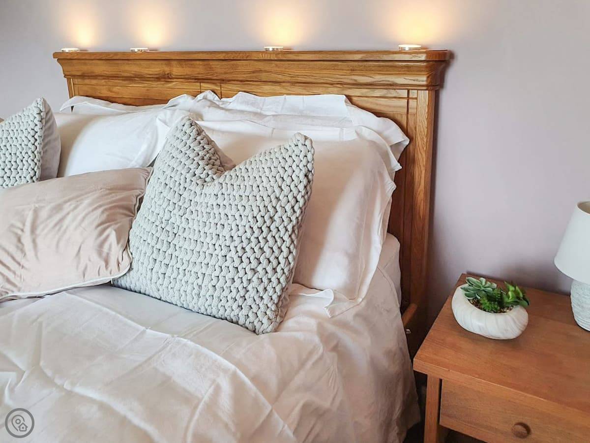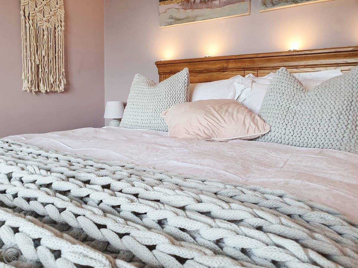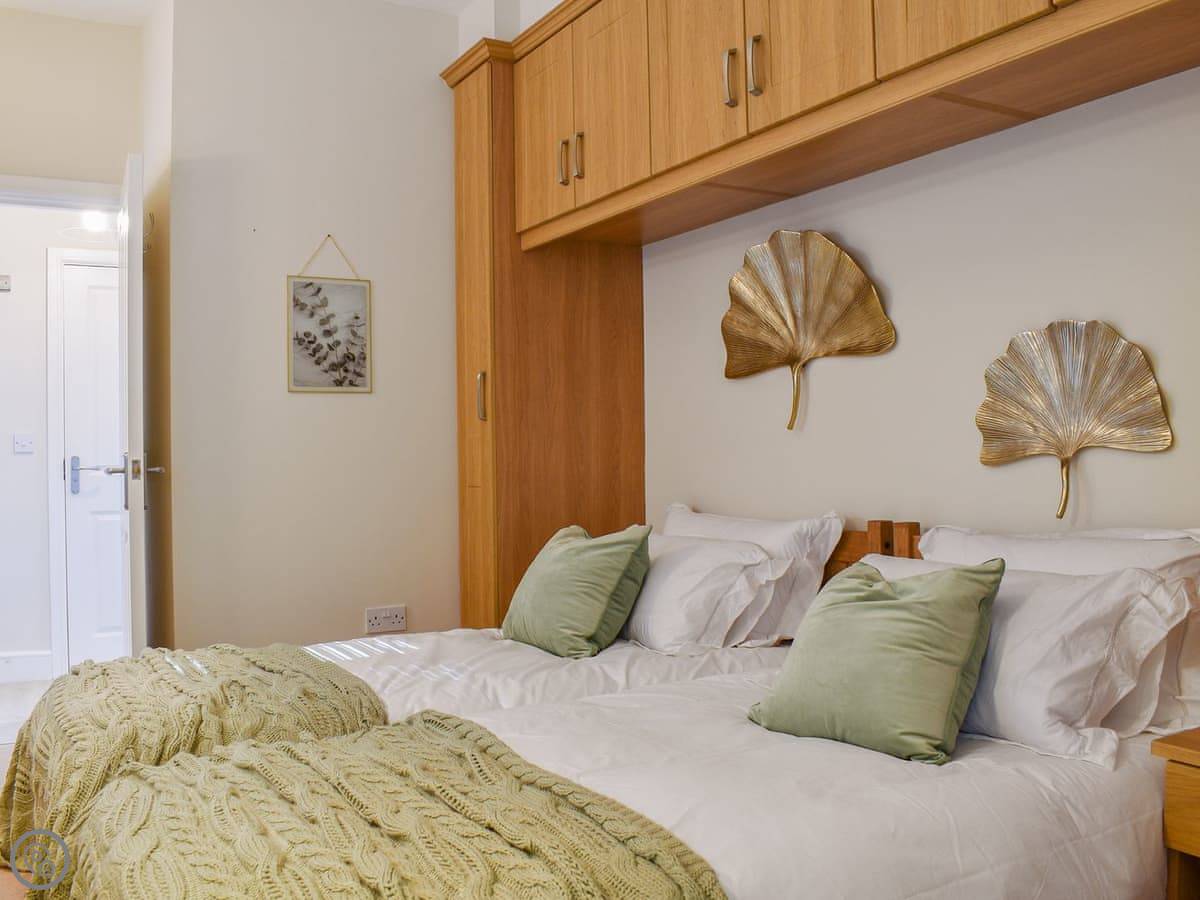 It sleeps four. Two bedrooms, both with their own bathrooms. One's a kingsize with the sea view, the other has twin beds. It's got a 4 Star rating. It's comfortable, not luxury. Everything works.
