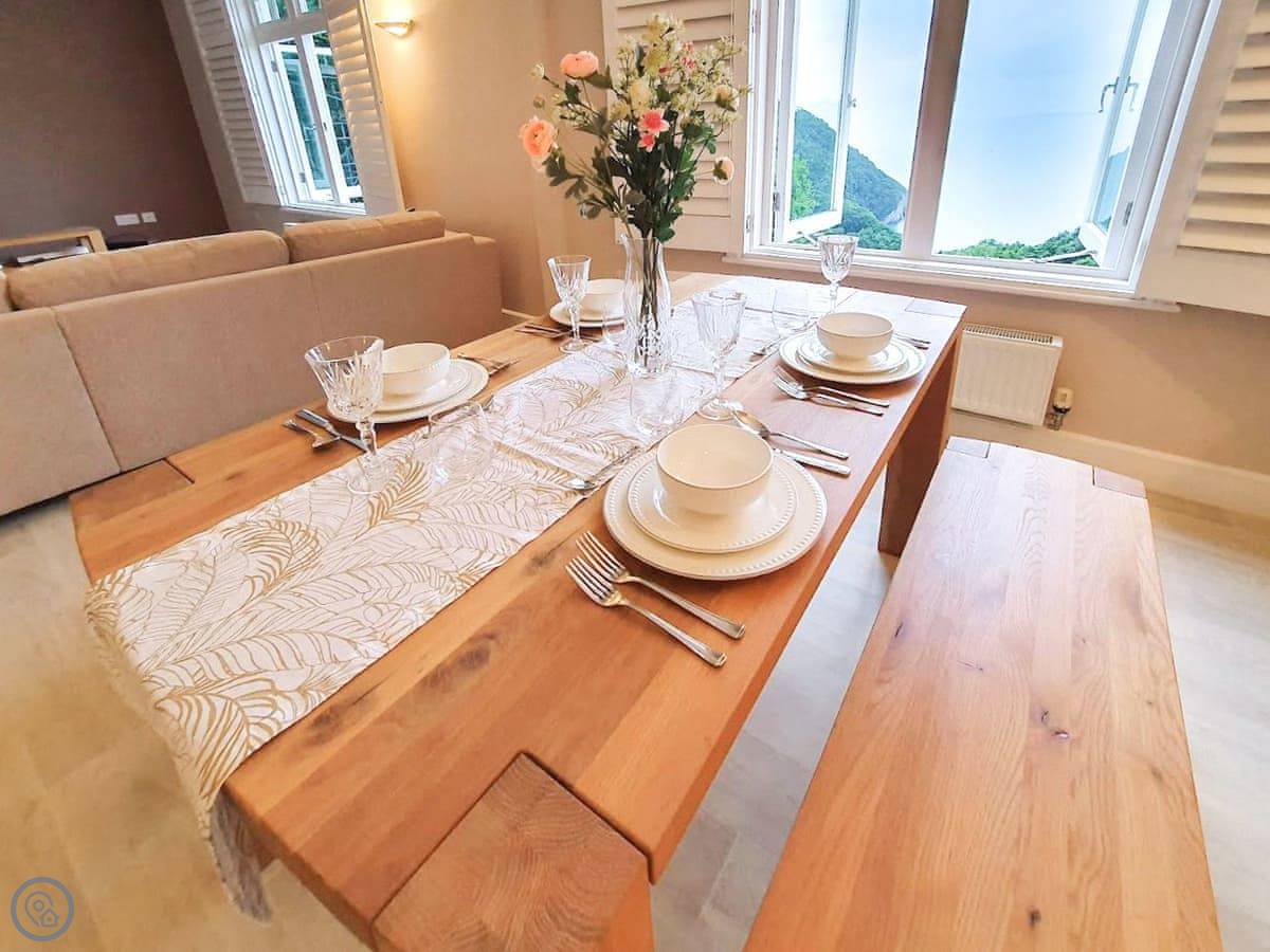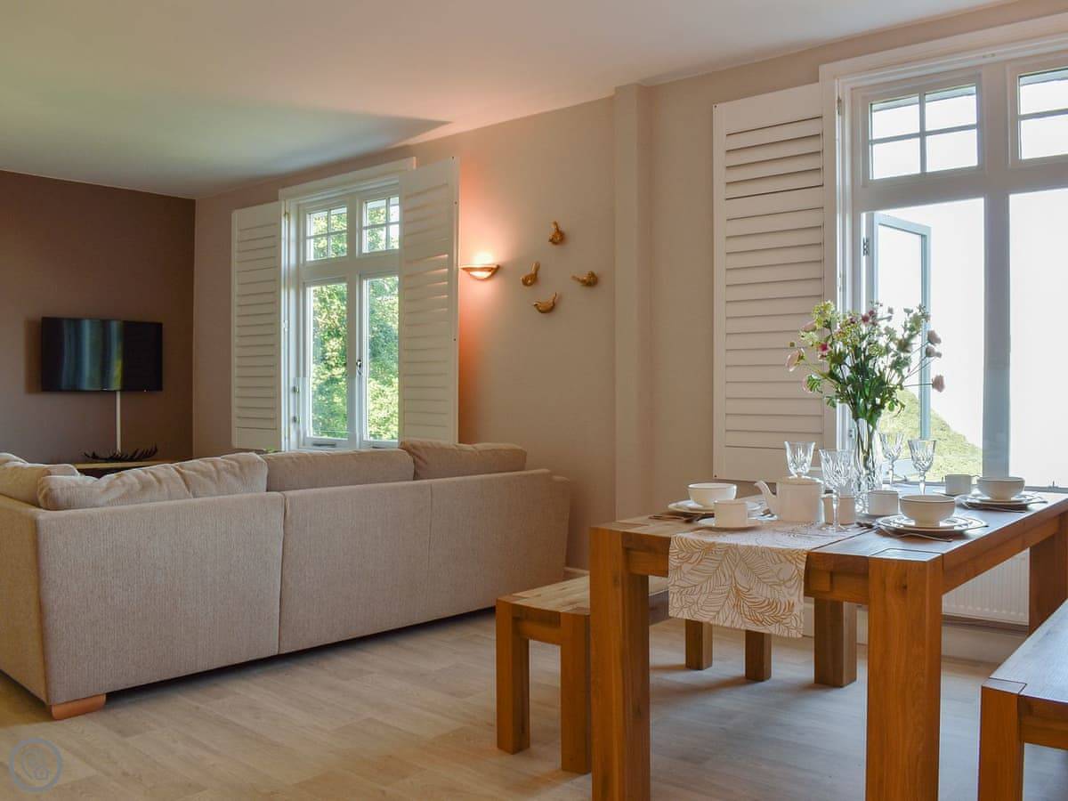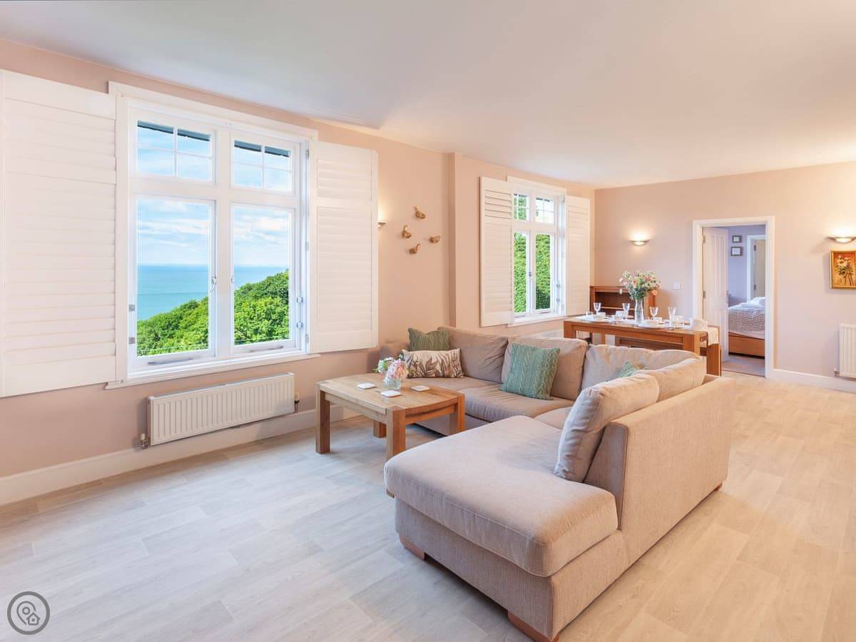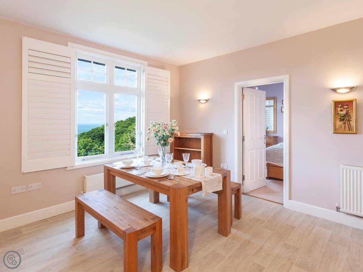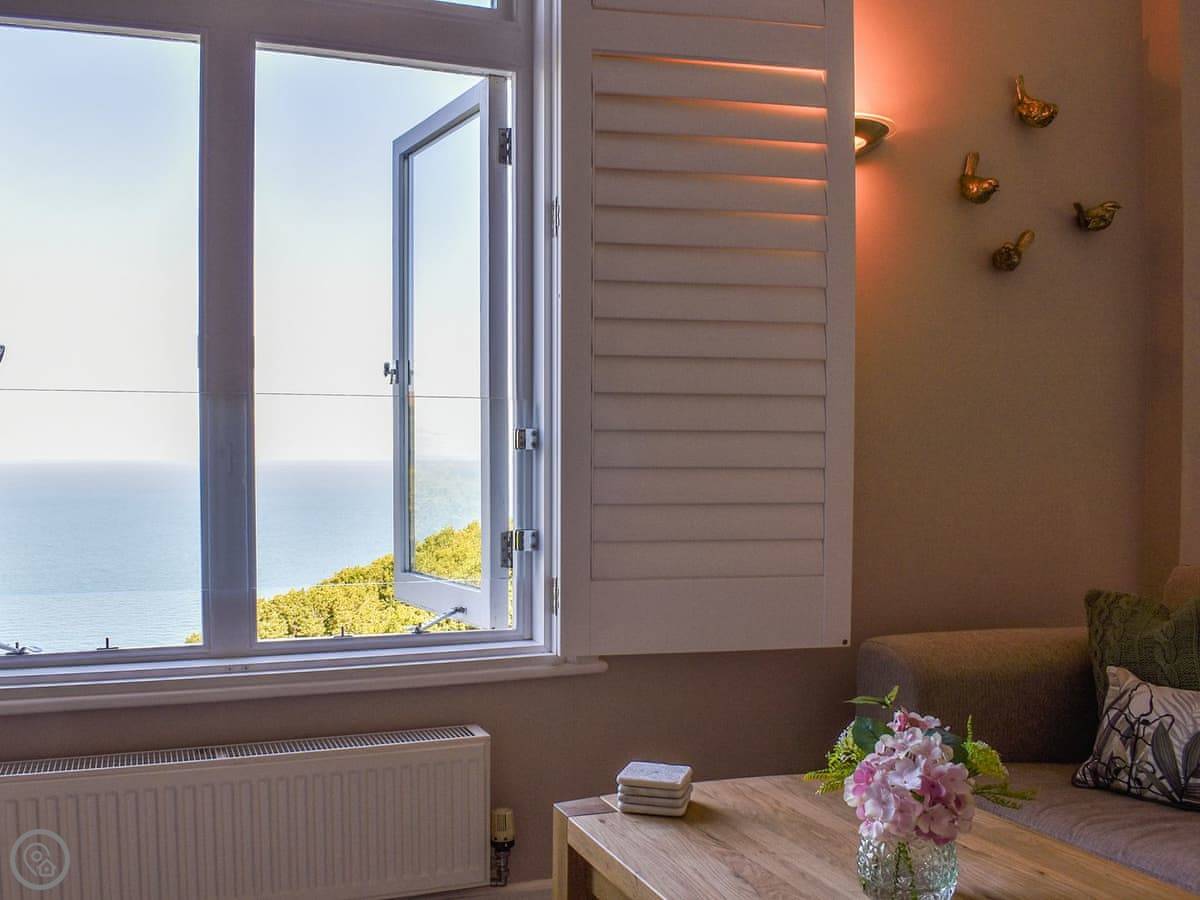 Haven Heights is in the old Woody Bay Hotel building up in Martinhoe. It's a first-floor apartment, so you get a view. The view is the main thing. You can see right out across the Bristol Channel to Wales on a clear day.