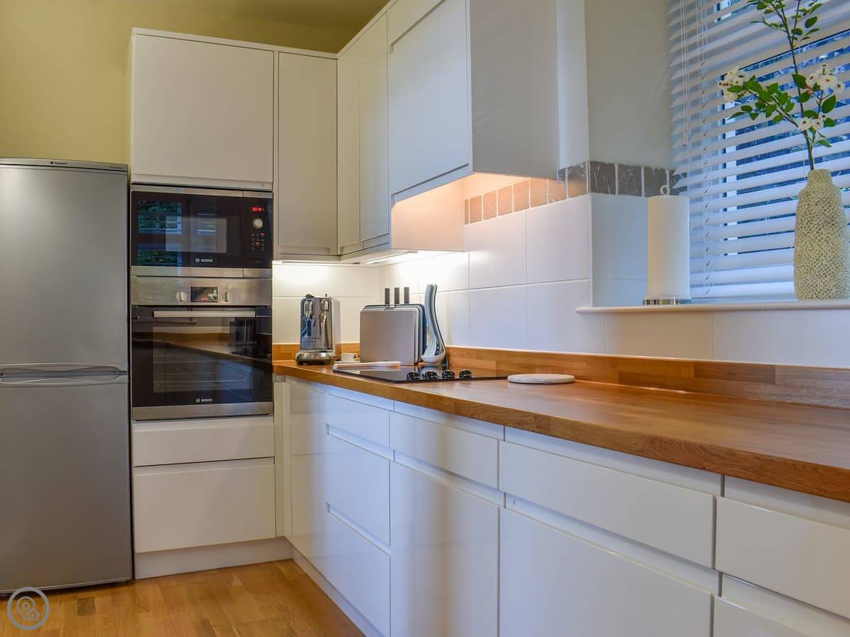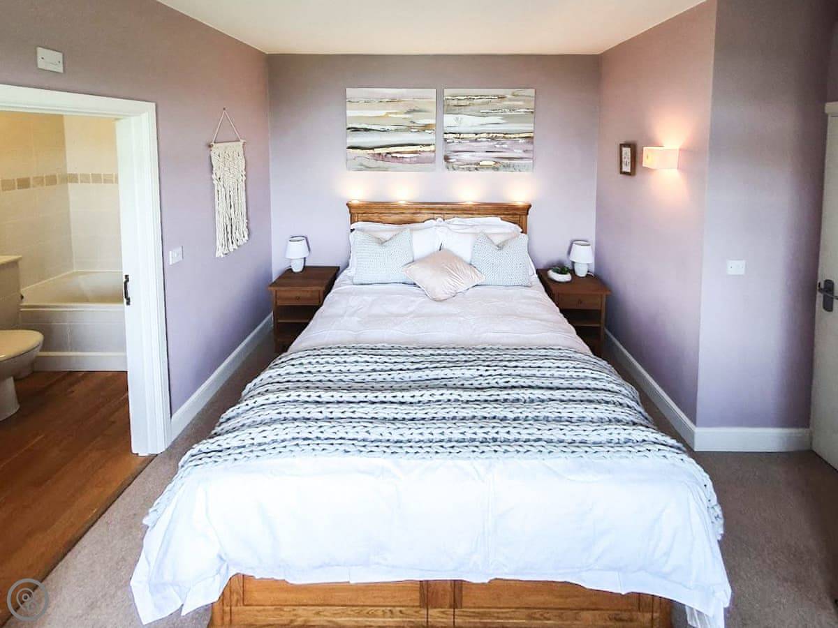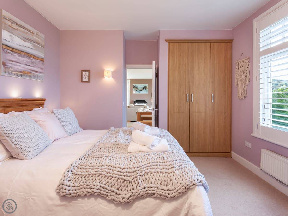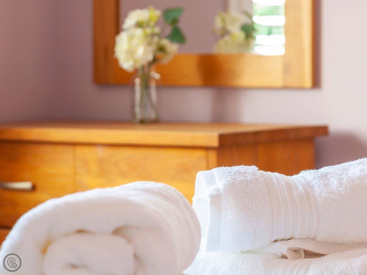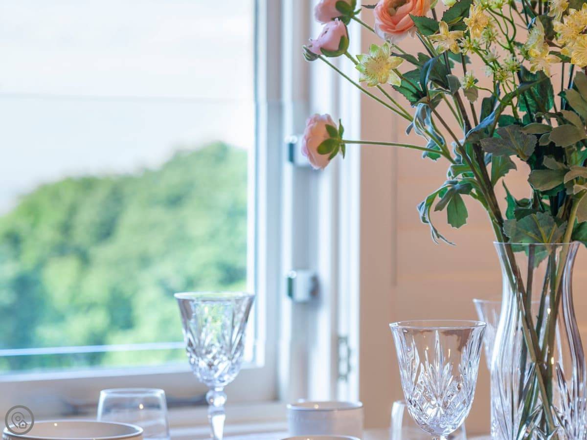 Inside, there's a living room with the view, a decent kitchen with a dishwasher, and a utility room with a washing machine. There's WiFi. Bedding and towels are included. We can take one well-behaved dog. There's an electric vehicle charger in the car park.