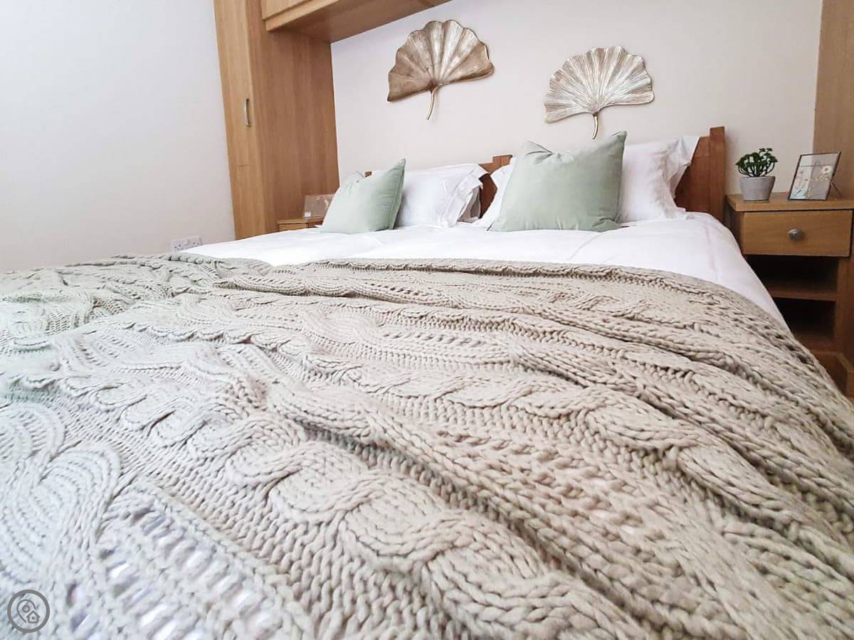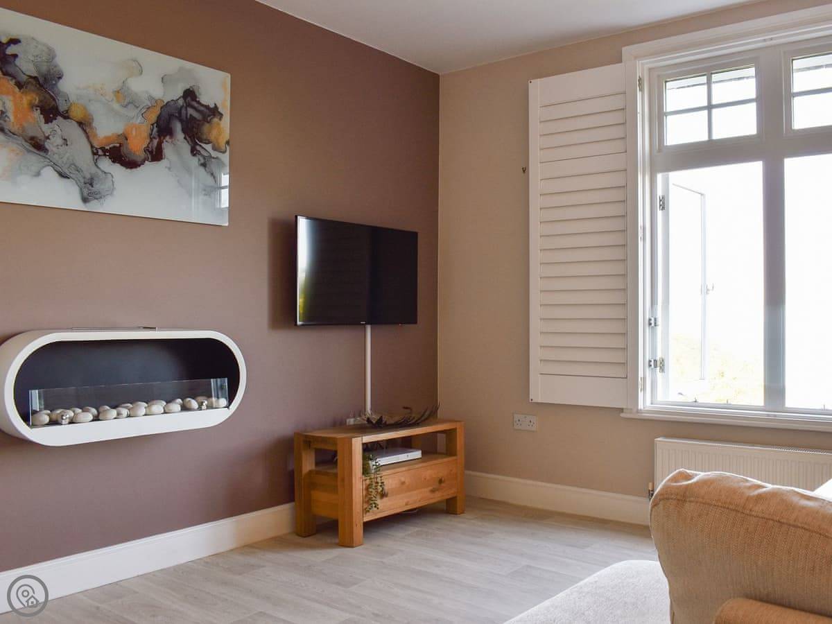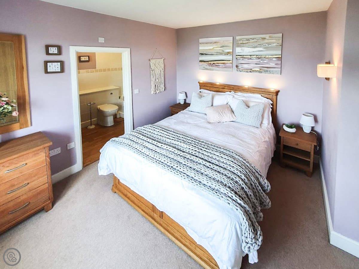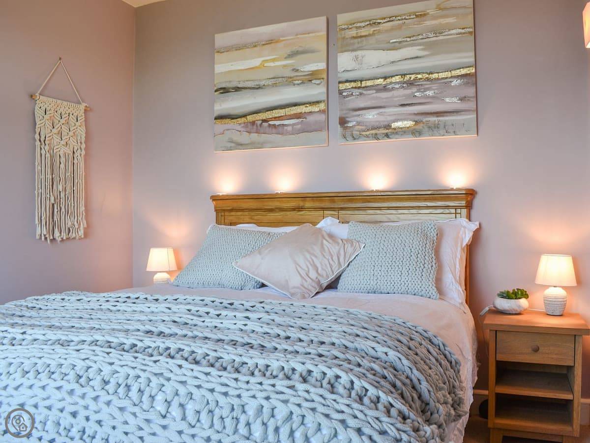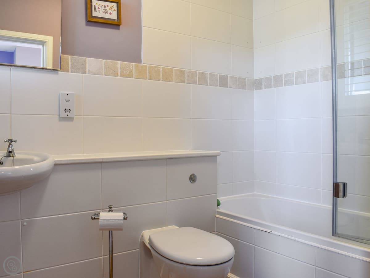 Inside, there's a living room with the view, a decent kitchen with a dishwasher, and a utility room with a washing machine. There's WiFi. Bedding and towels are included. We can take one well-behaved dog. There's an electric vehicle charger in the car park.