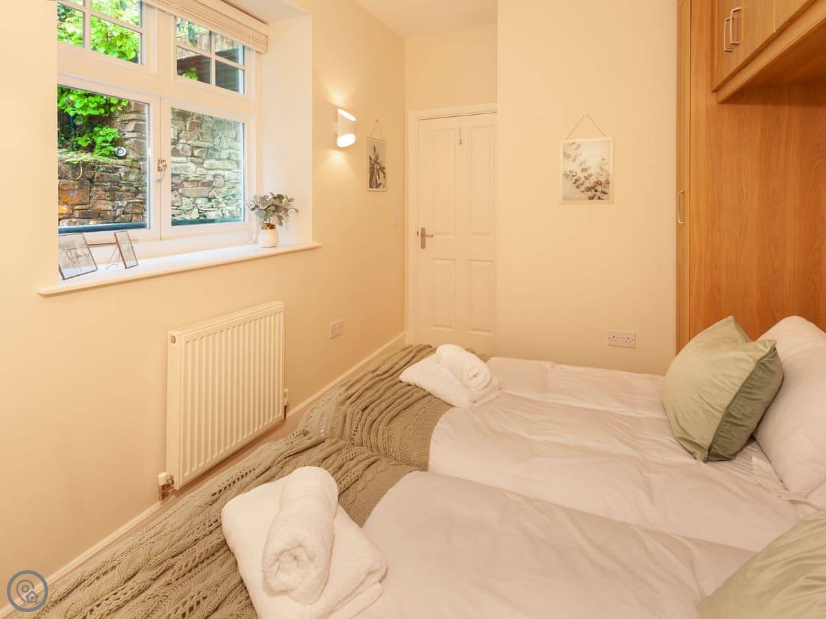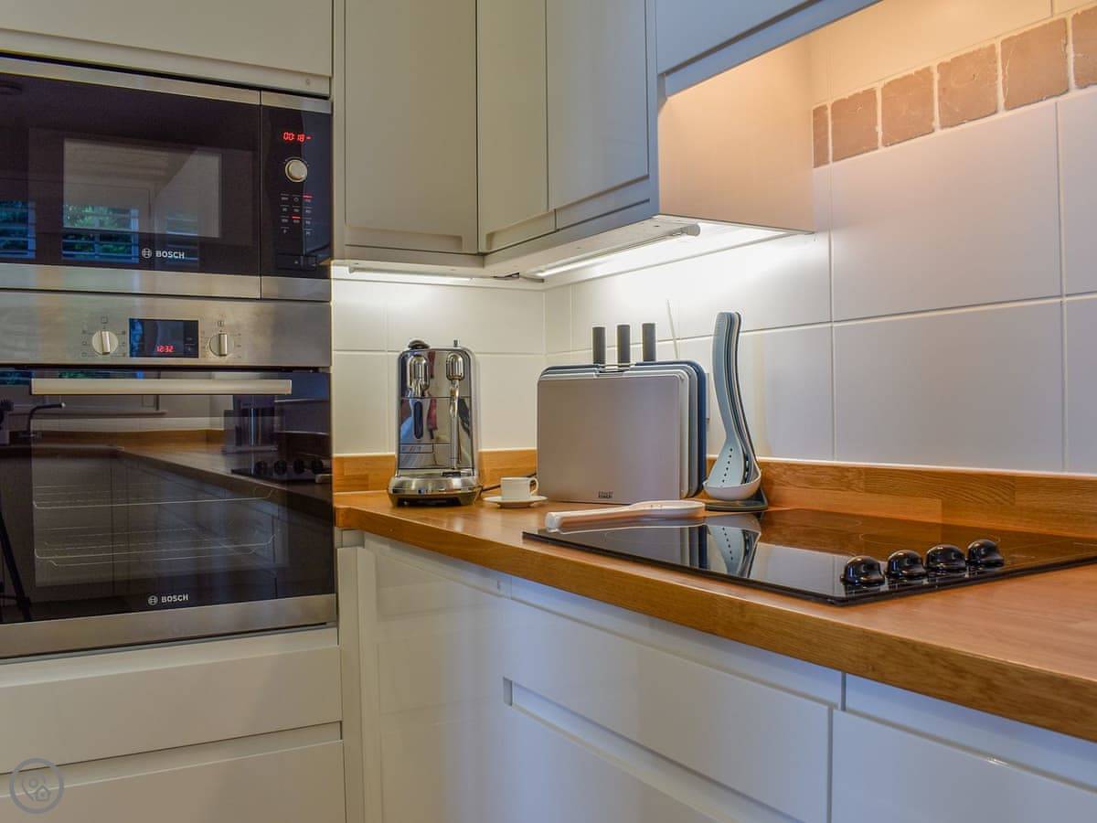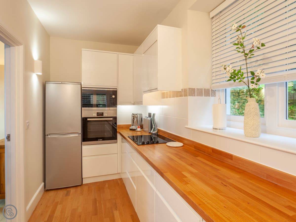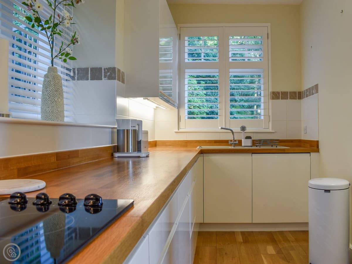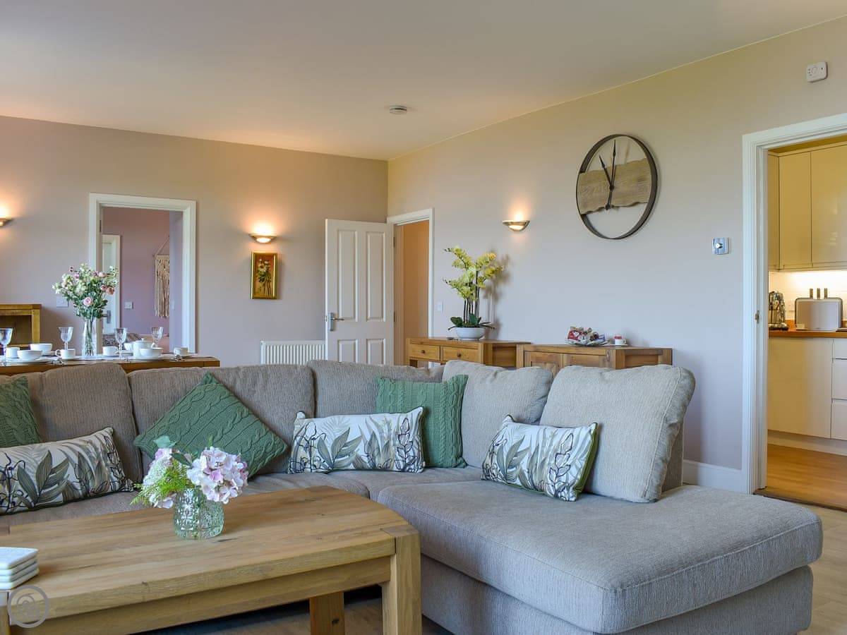 Inside, there's a living room with the view, a decent kitchen with a dishwasher, and a utility room with a washing machine. There's WiFi. Bedding and towels are included. We can take one well-behaved dog. There's an electric vehicle charger in the car park.