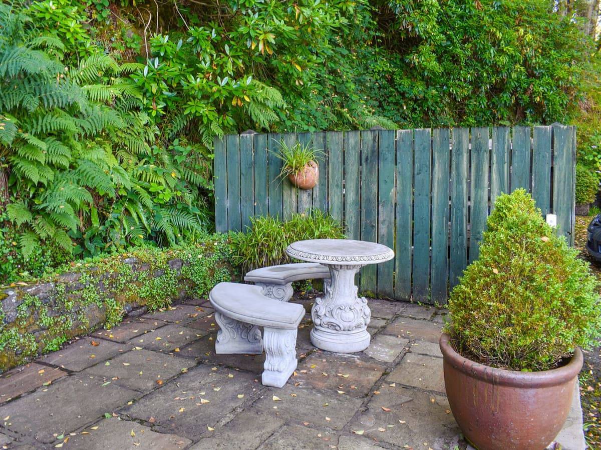 You get to it by an external staircase from the car park. It's not steep, but it's stairs. There's a small private patio area by the parking space with a couple of chairs.