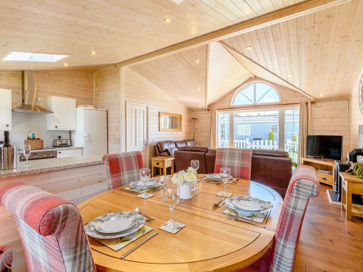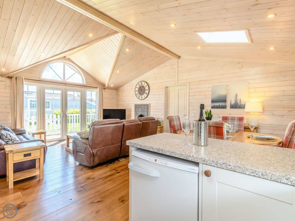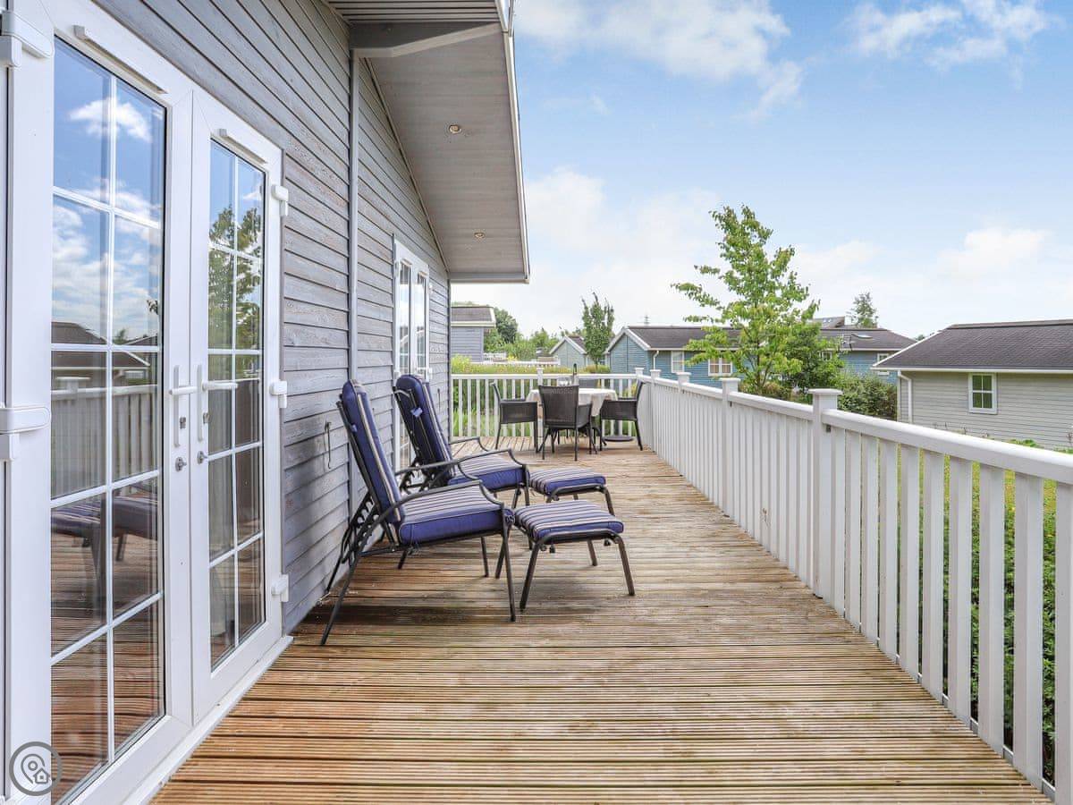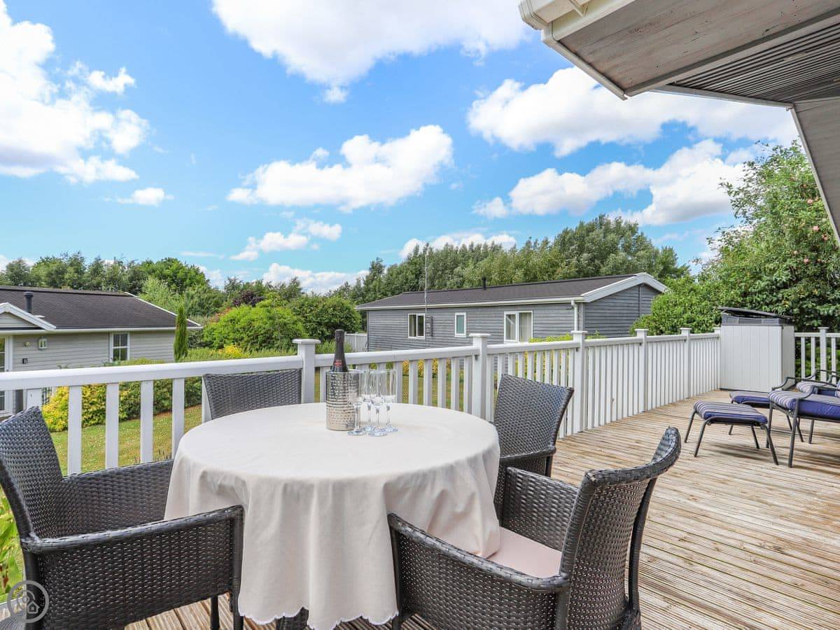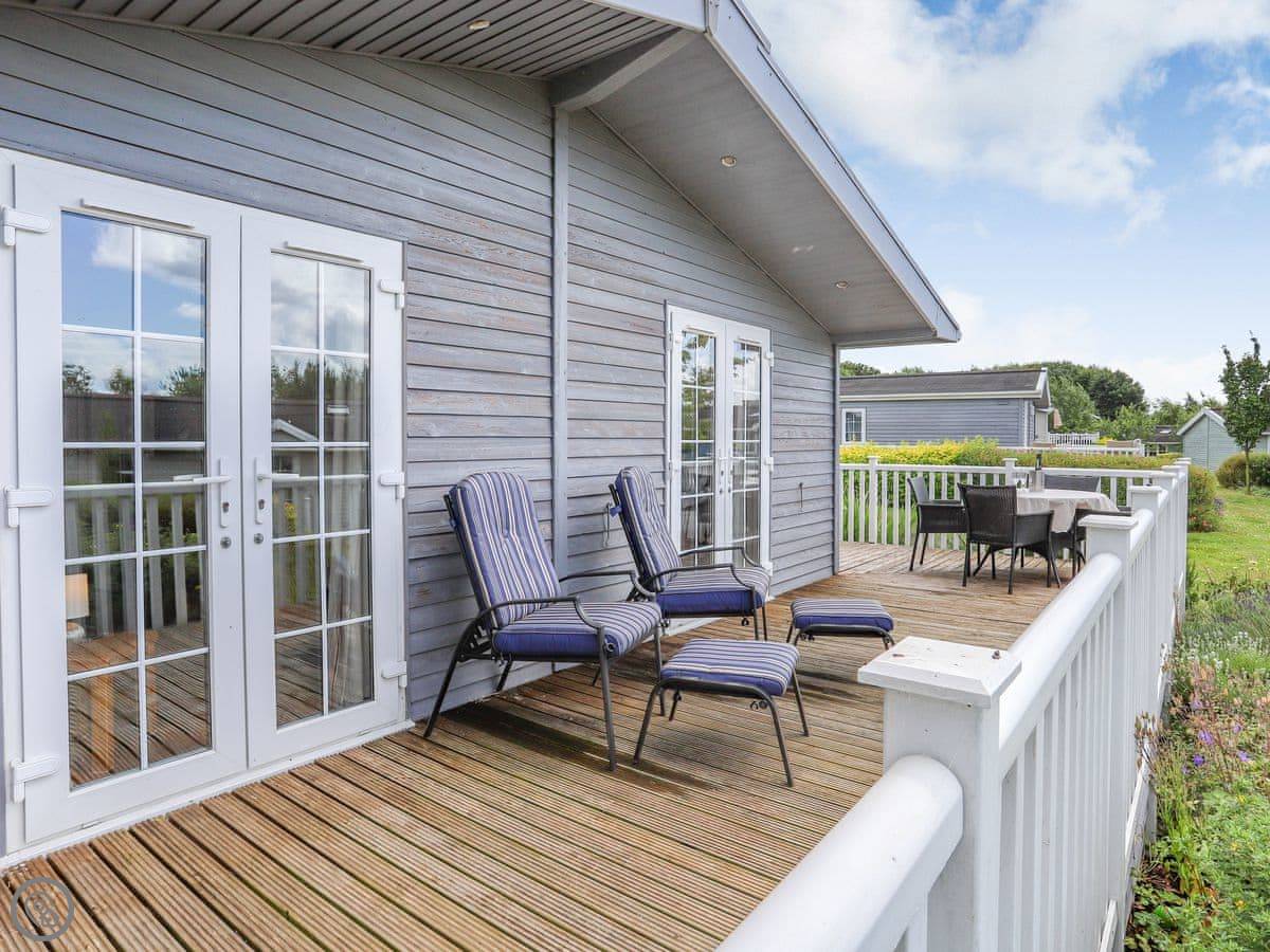 Our lodge is also home to table football and a swing ball set. Laburnum Lodge has two parking spaces with step free access into the lodge, which was designed especially for its first owner, a wheelchair user. Laburnum Lodge is fully equipped with all the essentials, including a dishwasher, Nespresso machine, Smart TV and Fibre Broadband. You will also find some more old-fashioned extras including a selection of holiday reads and board games. The central dining area seats up to six people, with an extendable dining table. After dinner, retire to relax on the 3-seater sofas with electric reclining mechanisms. veranda facing South and West to ensure both day and evening sun. Outside there are a selection of seating options, to suit sun and shade worshippers.