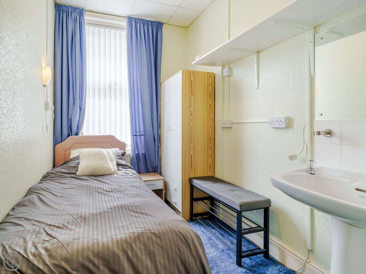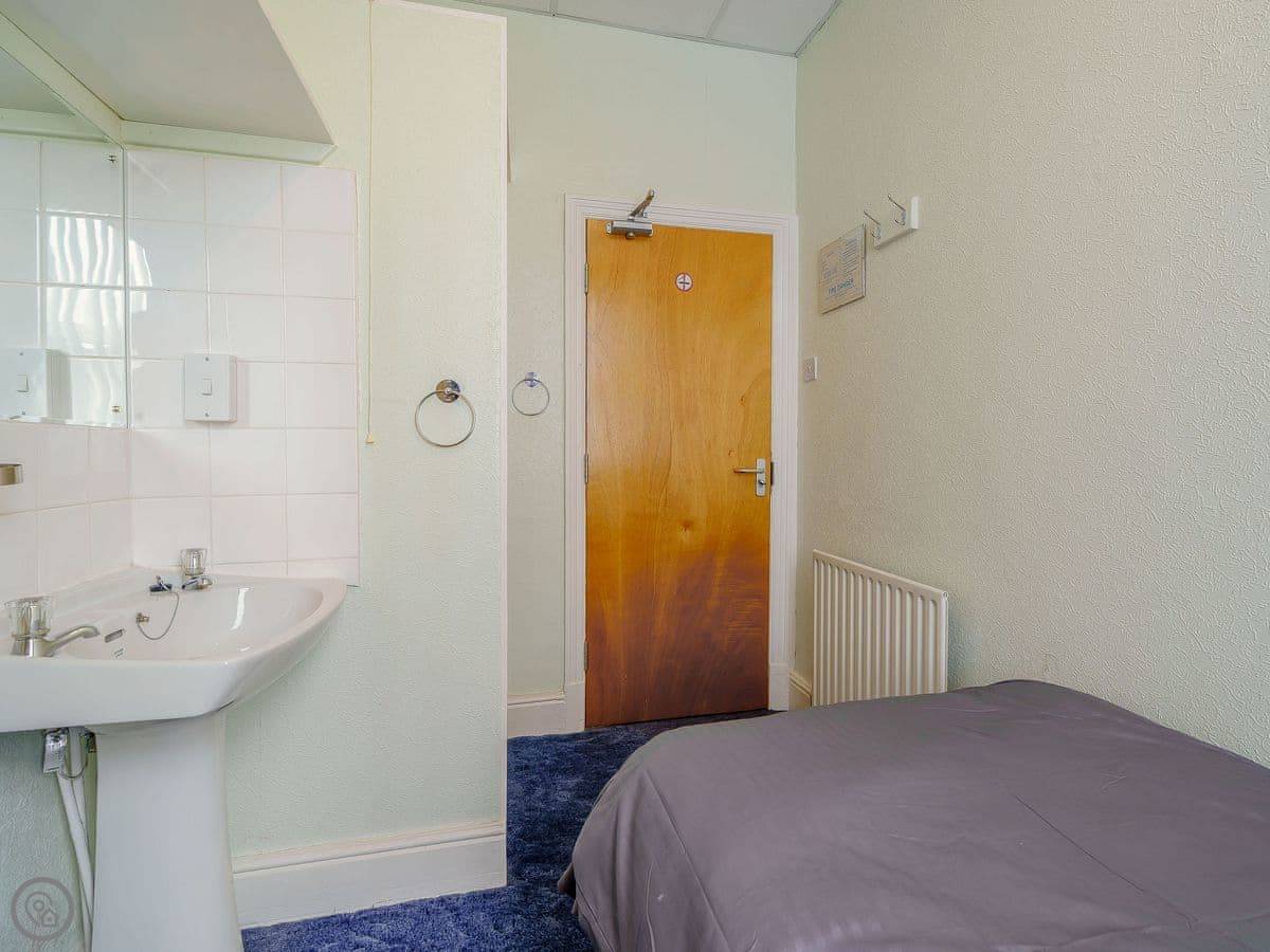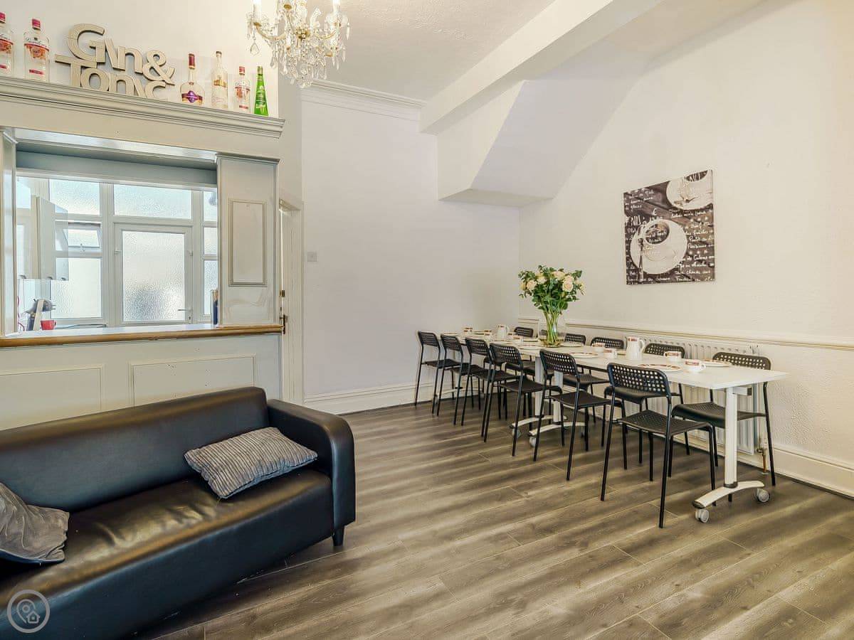 This is Highbury, on a side street in Blackpool. It's a big terraced house that sleeps eighteen. There are seven bedrooms and they all have their own bathroom, which is the main reason groups book it.